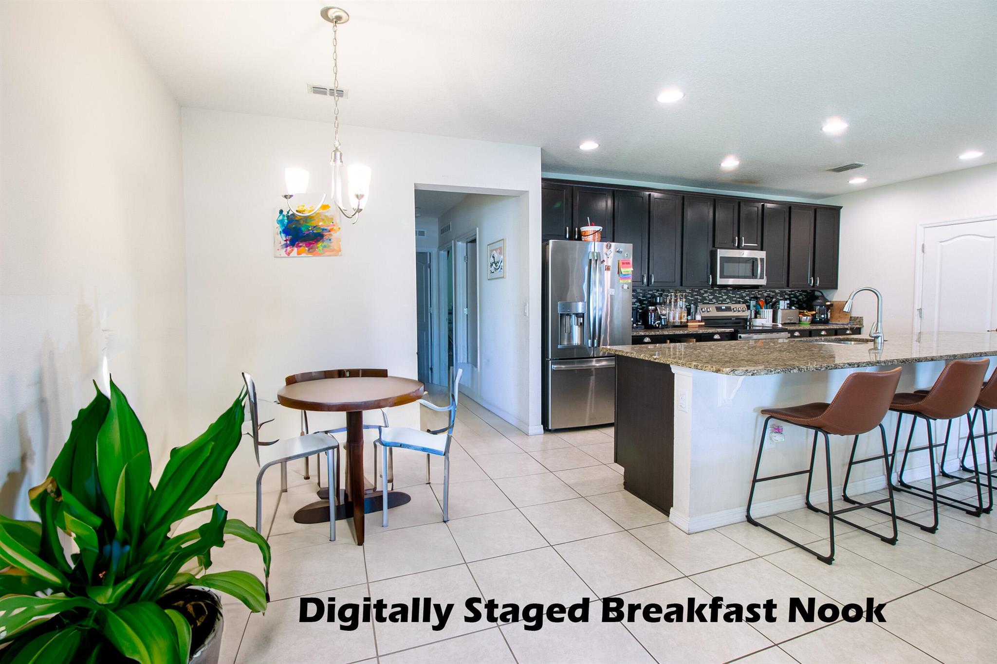 Brand new flooring in bedrooms! New refrigerator. Lots of room to spread out in this fabulous 5 bedroom 3 full bath home with a 3 car garage. Large kitchen with island sink and bar opens to the great room and dining room. There is also a dining area in the kitchen. Den is currently being used as a 5th bedroom. Large walk-in closet in master bedroom. Master bath features double sinks, soaker tub, and separate shower. Smart lighting. Designer ceiling fan in family room. Solid CBS construction. Corner lot with room for a pool. No HOA in this highly desirable Torino area of NW Port St Lucie.