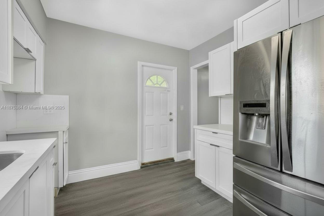 Renovated Starter Home w/ new vinyl floors, new paint, new modern white kitchen w/ stainless steel appliances. Roof 10-11 years. AC 2022. Bright Floor plan w/ lots of windows. Mostly PVC & Copper Plumbing. ALL IMPACT WINDOWS in process of installation included in the price. Large screened patio. Centrally located in Miami, just 15 mins from Coconut Grove, Brickell, Coral Gables, Merrick Park, close to parks, schools. Large backyard with extra concrete storage room. Plenty of Room for RV or boat. NO HOA great for investors, FHA/VA/CONV financing okay. Huge Backyard to make it a paradise or add a pool and pergola for enjoying the outdoors. 3rd bedroom is a large room from converted garage, perfect for in law quarters, or convert back to a 1 car garage.
