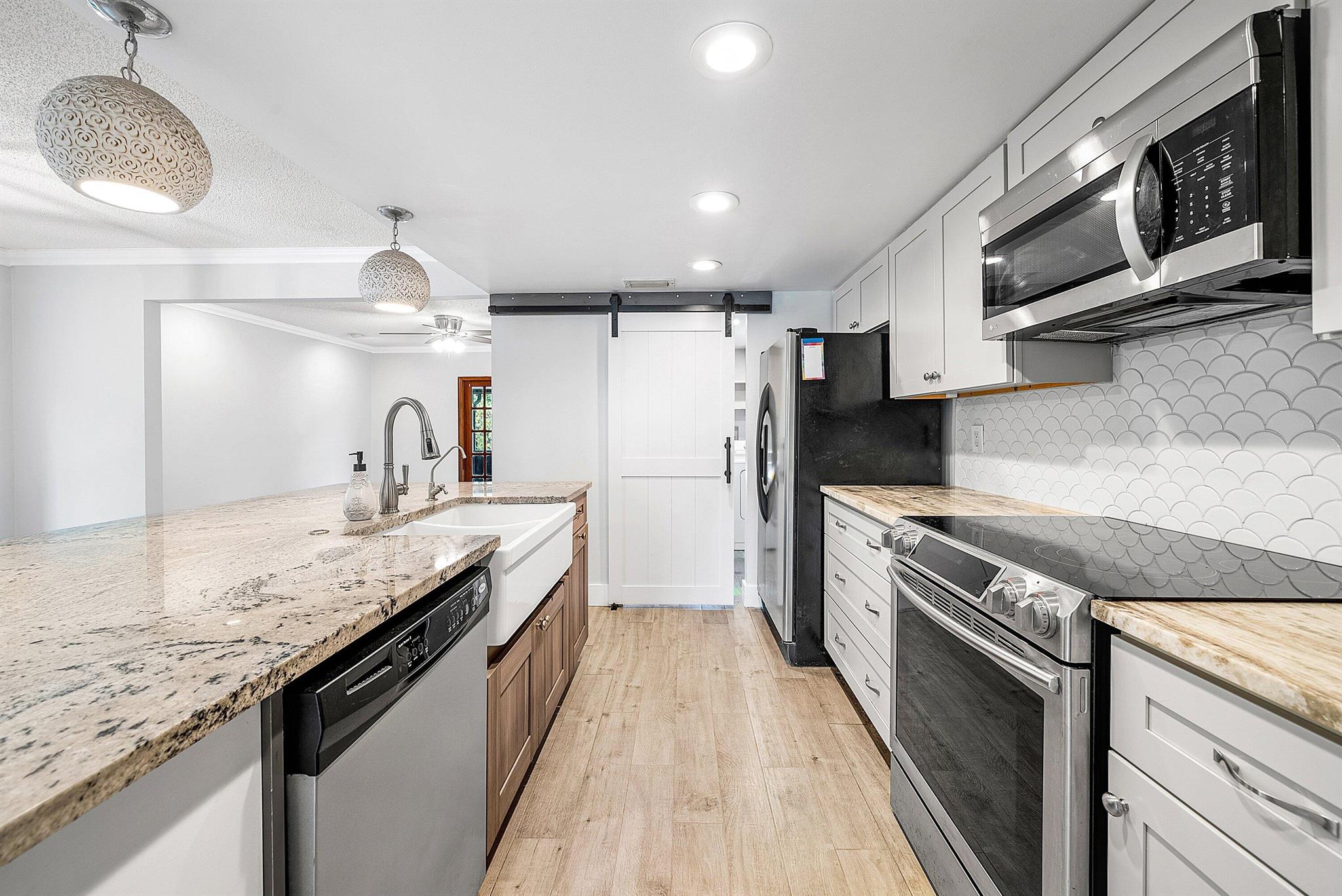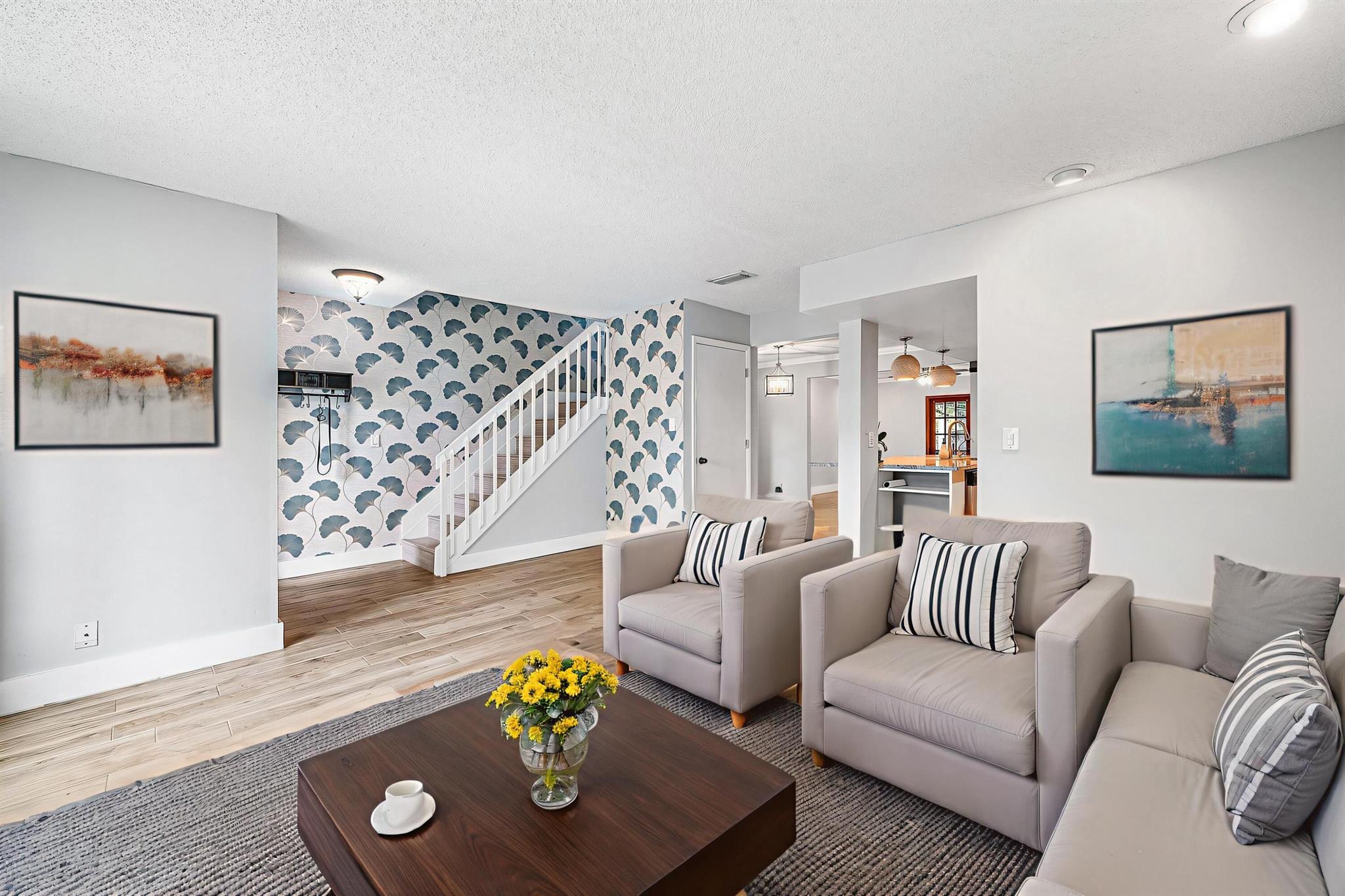 Stunningly Renovated & Move-In Ready! Step into this beautifully updated home where every detail has been thoughtfully designed for style, comfort, and peace of mind. The chef's kitchen is a showstopper, featuring a massive granite island, brand-new custom cabinetry, a stylish backsplash, and gleaming granite countertops -- perfect for cooking, entertaining, and gathering with friends & family. Enjoy 3 fully renovated bathrooms (two full + one half) and fresh new luxury flooring upstairs, complemented by the charm of original oak hardwood floors in the spacious bedrooms. The home boasts Hardy Board siding, a 2021 roof with wind mitigation compliance, a 2025 AC, Cat 5 hurricane-rated impact windows, & an impact front door -- offering both beauty & security. Some photos virtually staged.