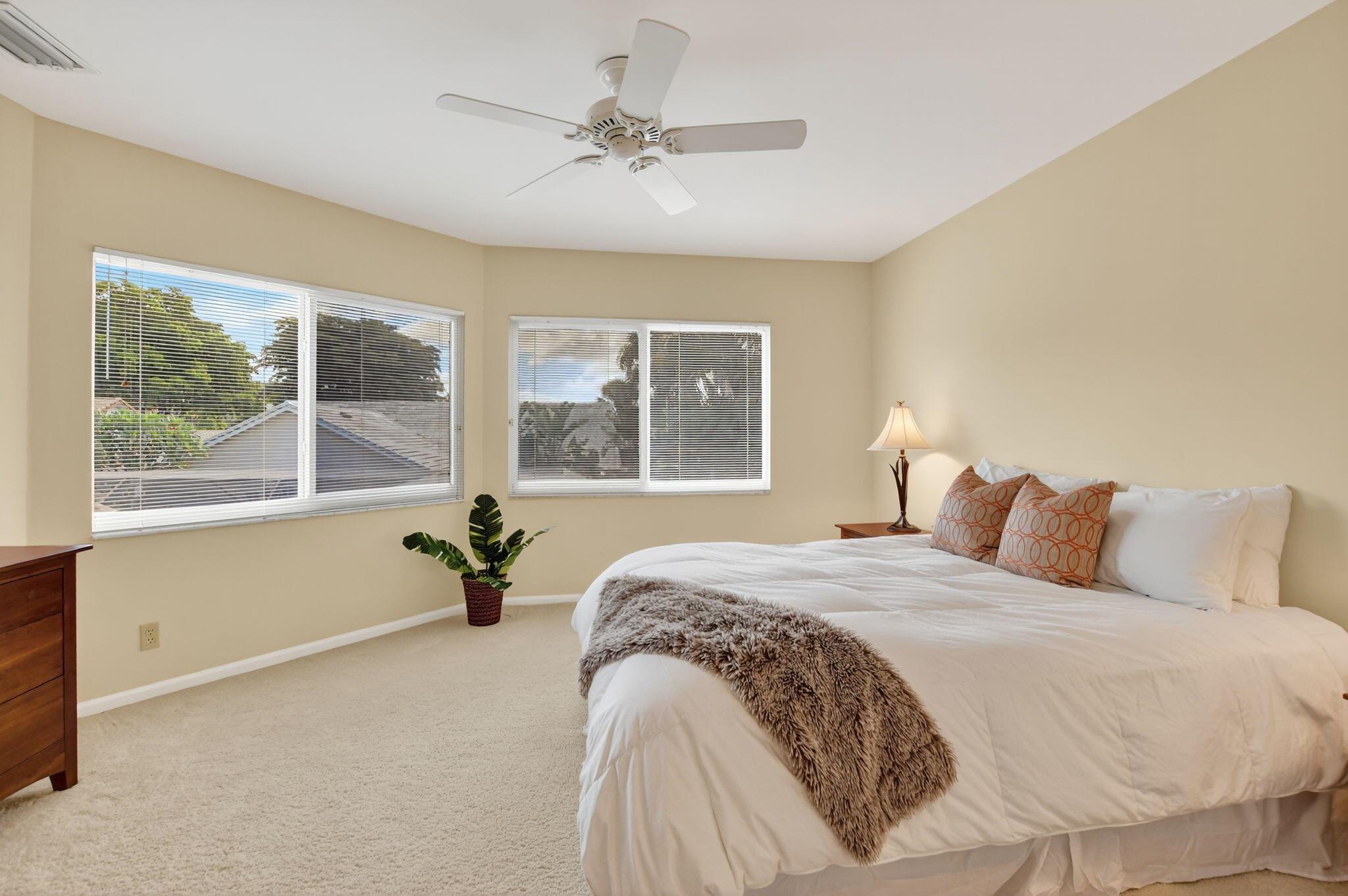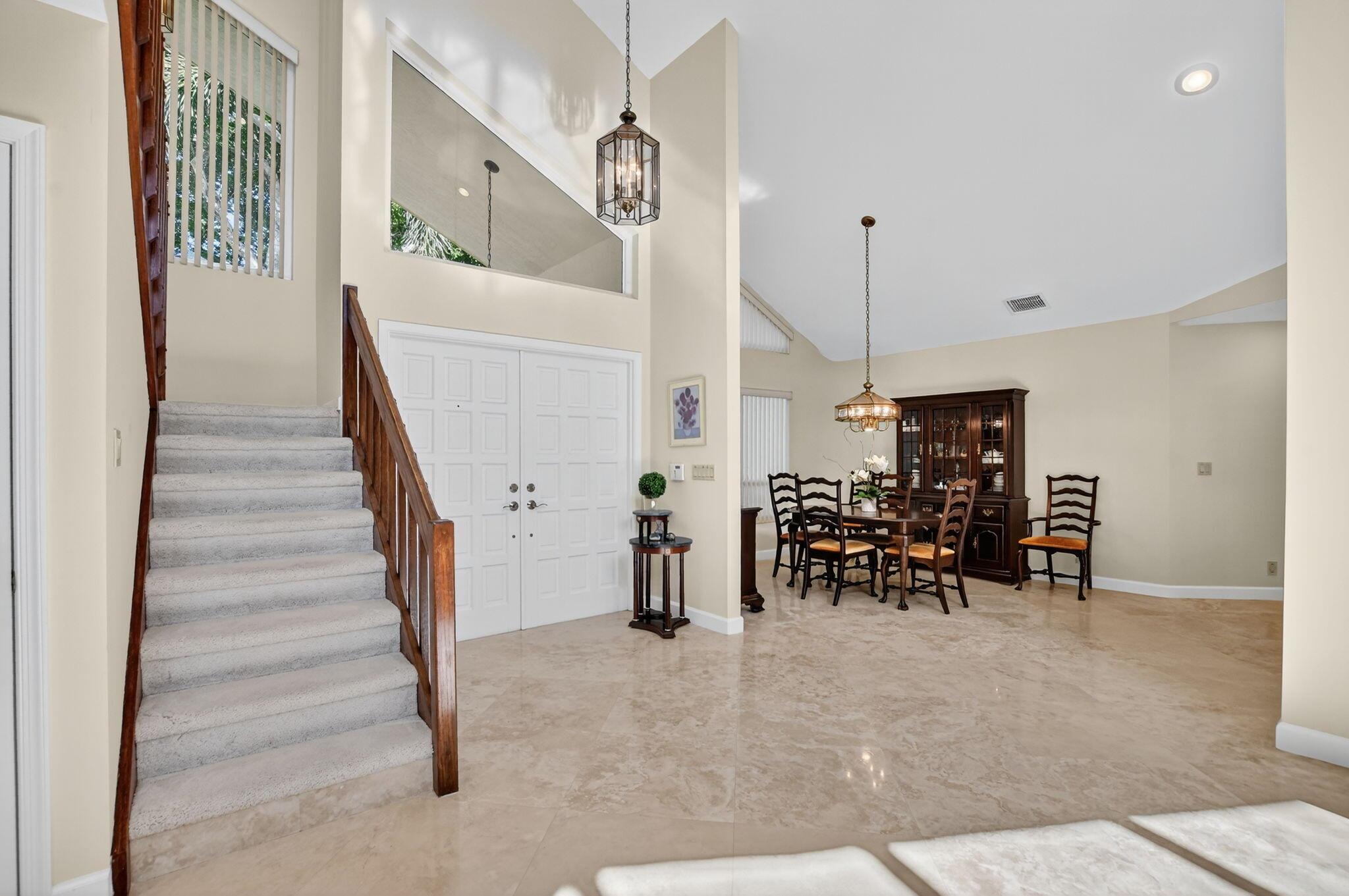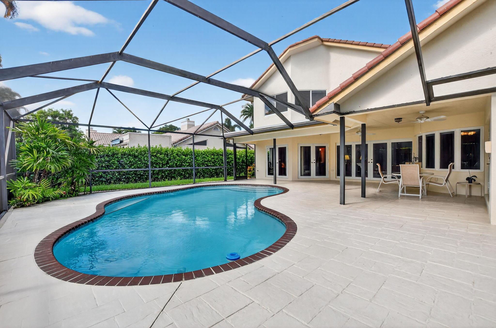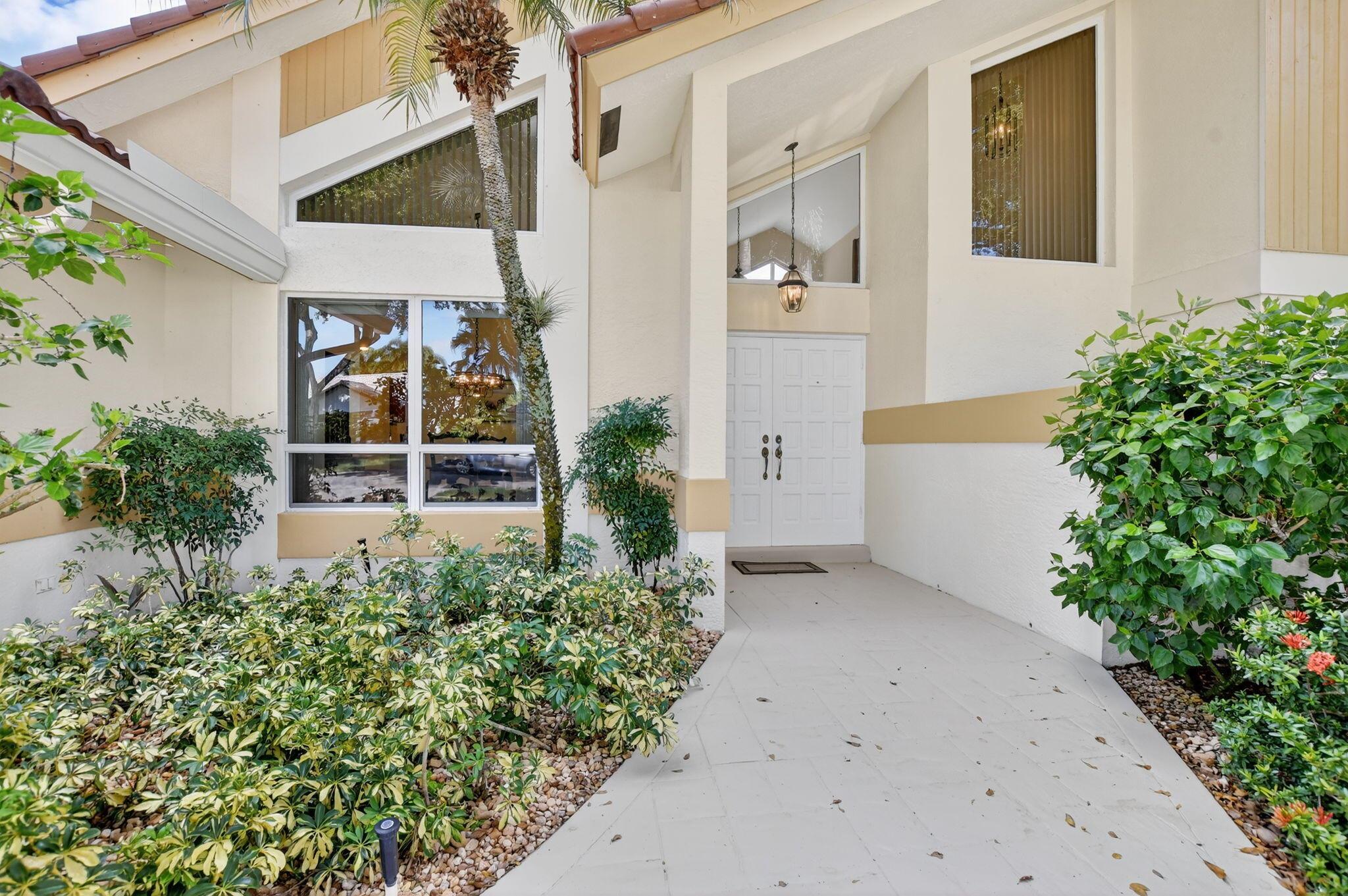 Don't miss this opportunity! Own your dream home in Colonnade, the highly sought-after & beloved non-gated community in central Boca Raton. From the moment you enter, you'll be captivated by the soaring ceilings, dramatic two-story windows & abundant natural light that fills every corner of the open-concept layout, neutral tones & expansive ceilings create a bright, airy & serene ambiance--perfect for both everyday living & stylish entertaining. This pristinely maintained move-in ready residence spans nearly 3,000sf of thoughtfully designed living space featuring a generously sized primary bdrm & bath + 1 additional bdrm & cabana bath downstairs; 2 spacious bedrooms with a jack & Jill bath upstairs, all nestled on a lush private lot with views of the sparkling pool, huge deck & green space