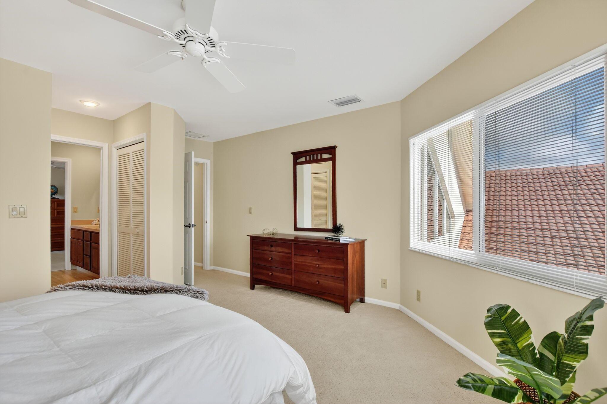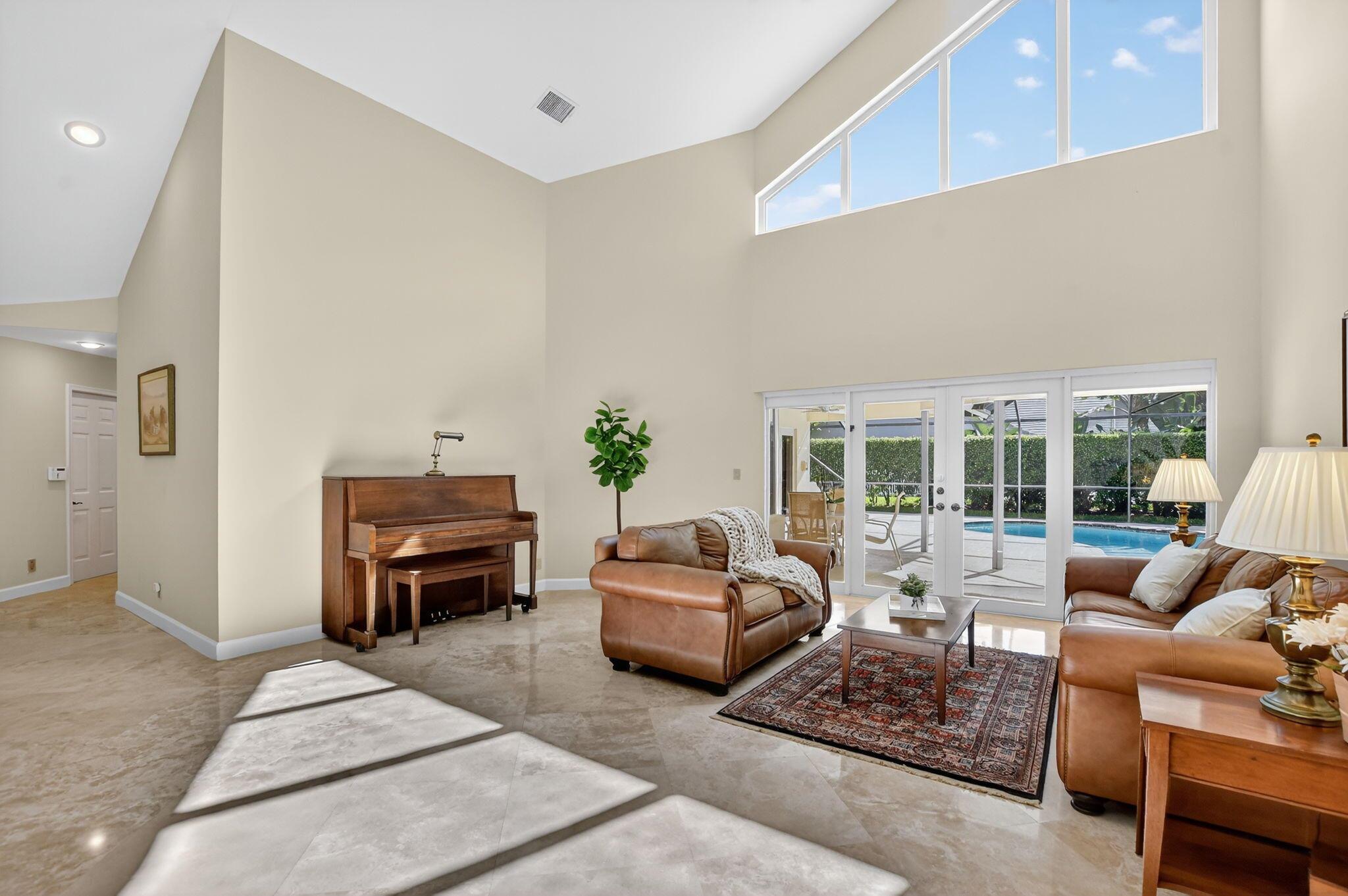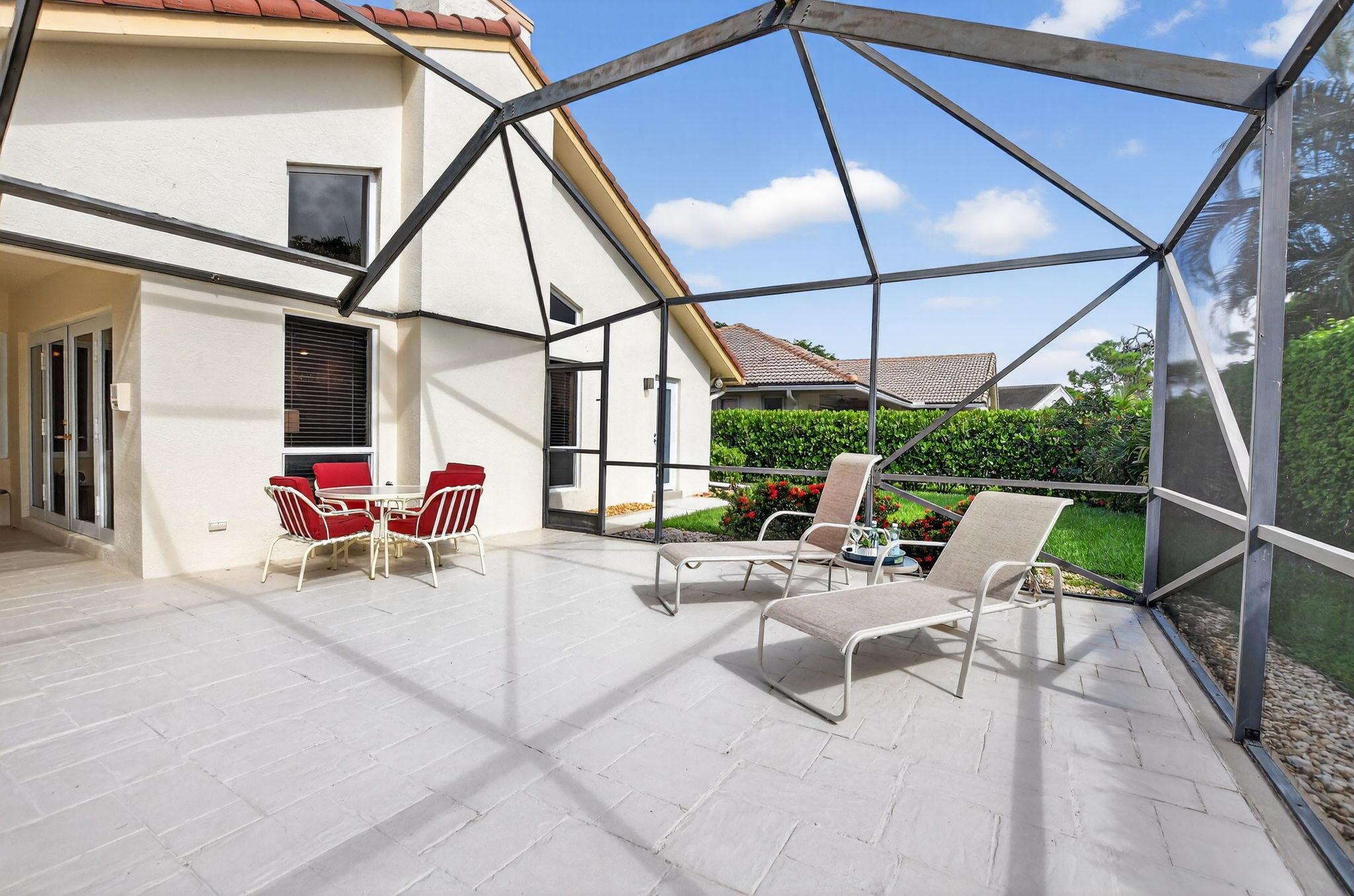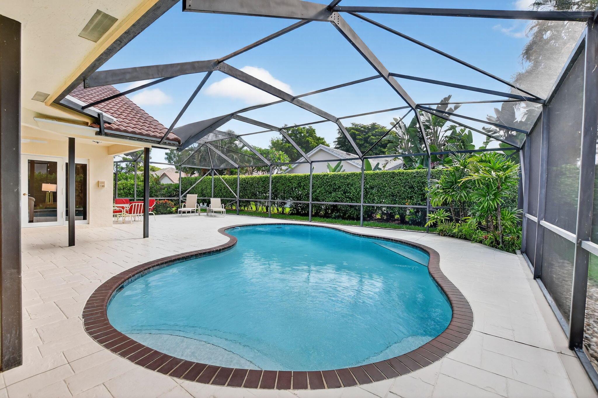 Don't miss this opportunity! Own your dream home in Colonnade, the highly sought-after & beloved non-gated community in central Boca Raton. From the moment you enter, you'll be captivated by the soaring ceilings, dramatic two-story windows & abundant natural light that fills every corner of the open-concept layout, neutral tones & expansive ceilings create a bright, airy & serene ambiance--perfect for both everyday living & stylish entertaining. This pristinely maintained move-in ready residence spans nearly 3,000sf of thoughtfully designed living space featuring a generously sized primary bdrm & bath + 1 additional bdrm & cabana bath downstairs; 2 spacious bedrooms with a jack & Jill bath upstairs, all nestled on a lush private lot with views of the sparkling pool, huge deck & green space