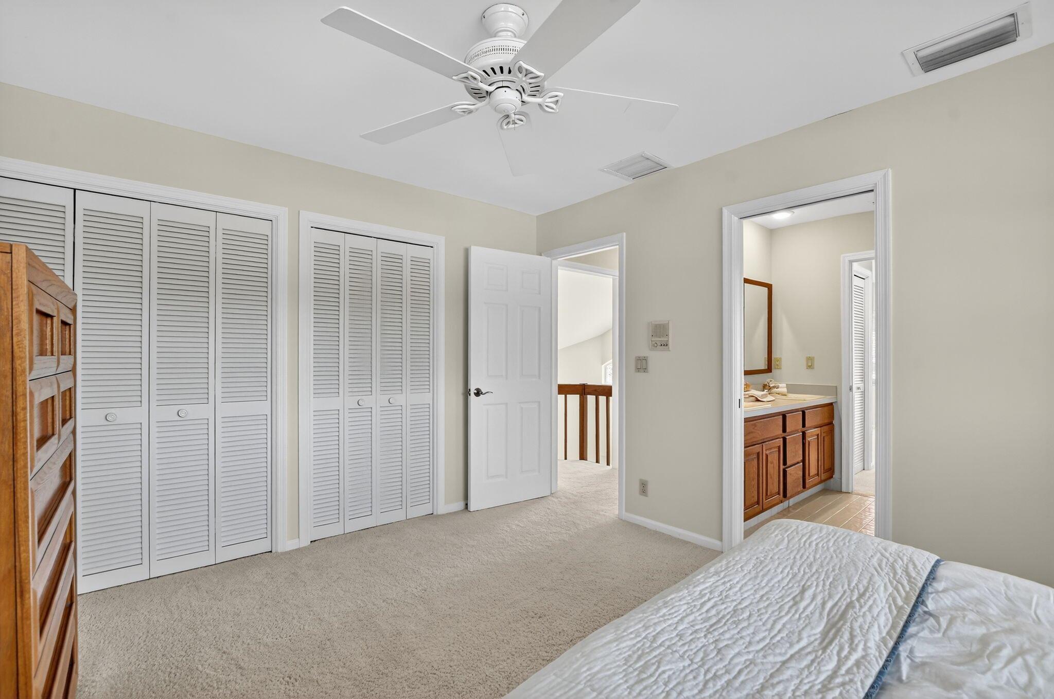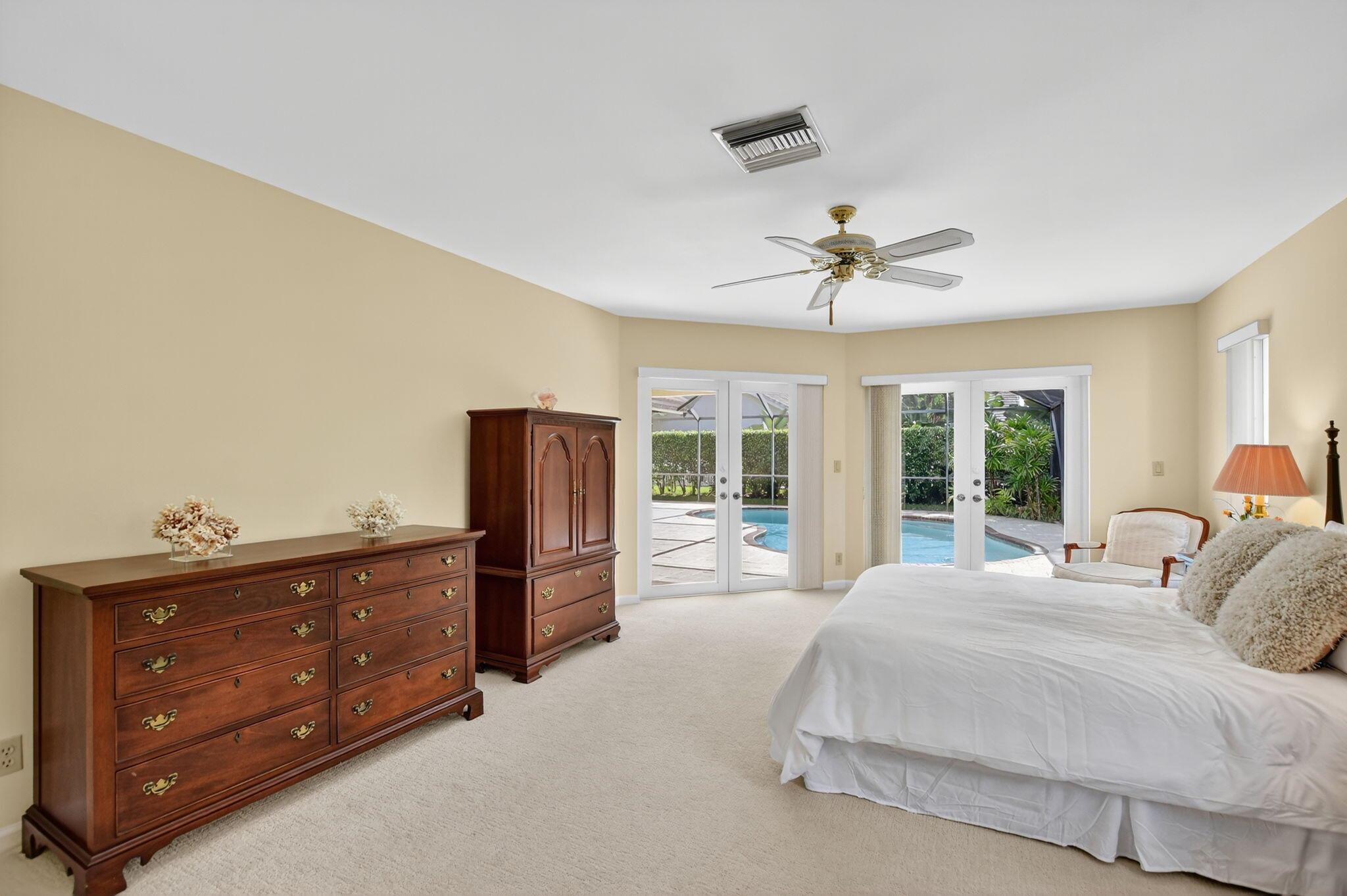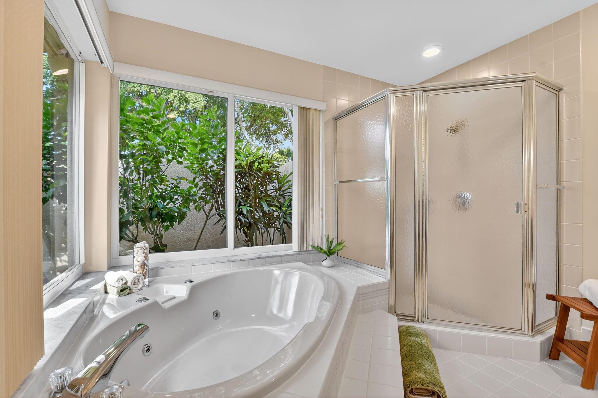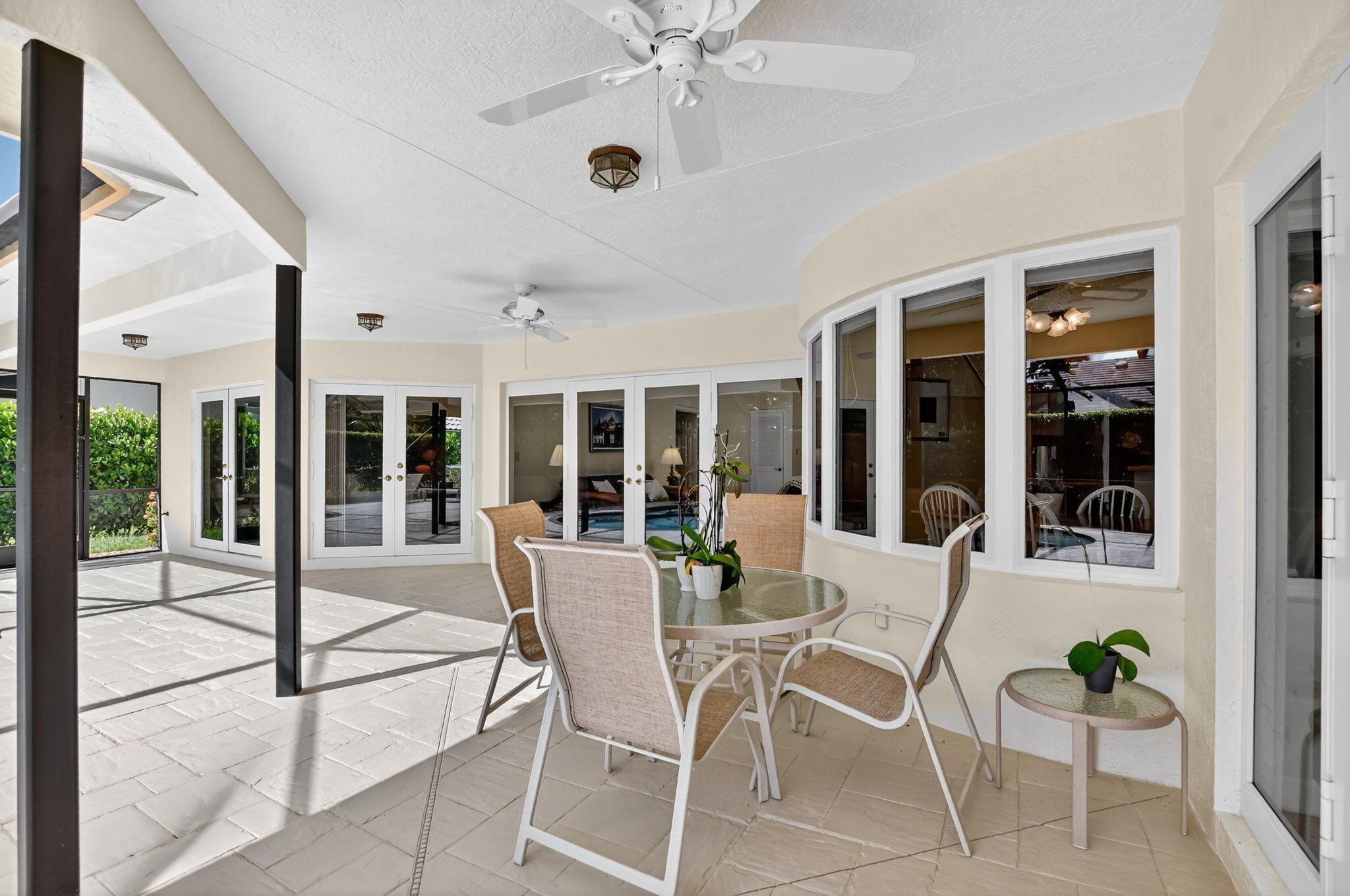 Don't miss this opportunity! Own your dream home in Colonnade, the highly sought-after & beloved non-gated community in central Boca Raton. From the moment you enter, you'll be captivated by the soaring ceilings, dramatic two-story windows & abundant natural light that fills every corner of the open-concept layout, neutral tones & expansive ceilings create a bright, airy & serene ambiance--perfect for both everyday living & stylish entertaining. This pristinely maintained move-in ready residence spans nearly 3,000sf of thoughtfully designed living space featuring a generously sized primary bdrm & bath + 1 additional bdrm & cabana bath downstairs; 2 spacious bedrooms with a jack & Jill bath upstairs, all nestled on a lush private lot with views of the sparkling pool, huge deck & green space