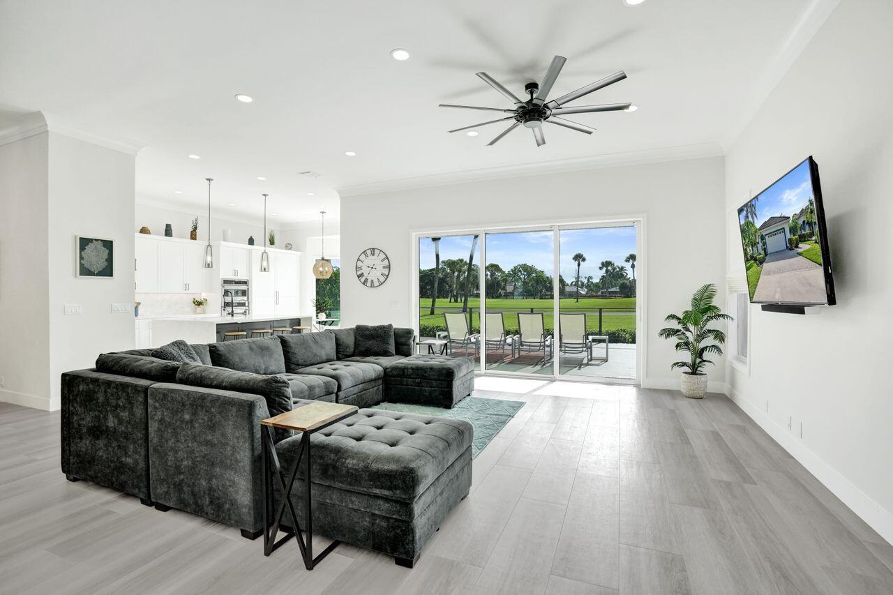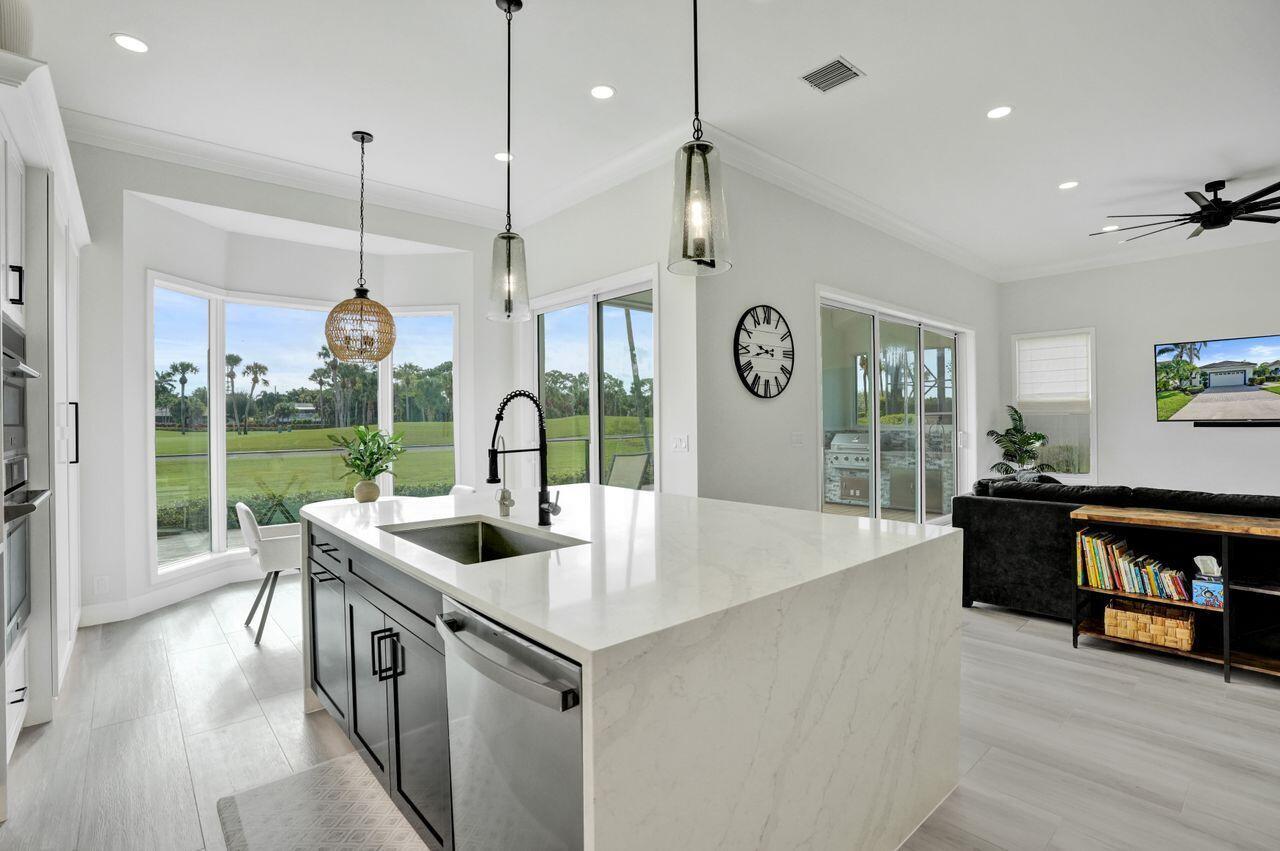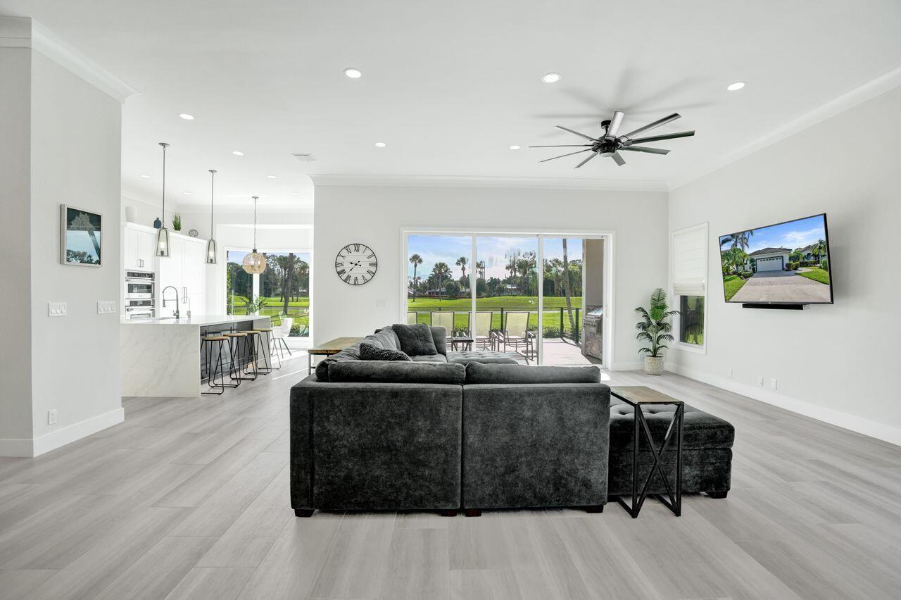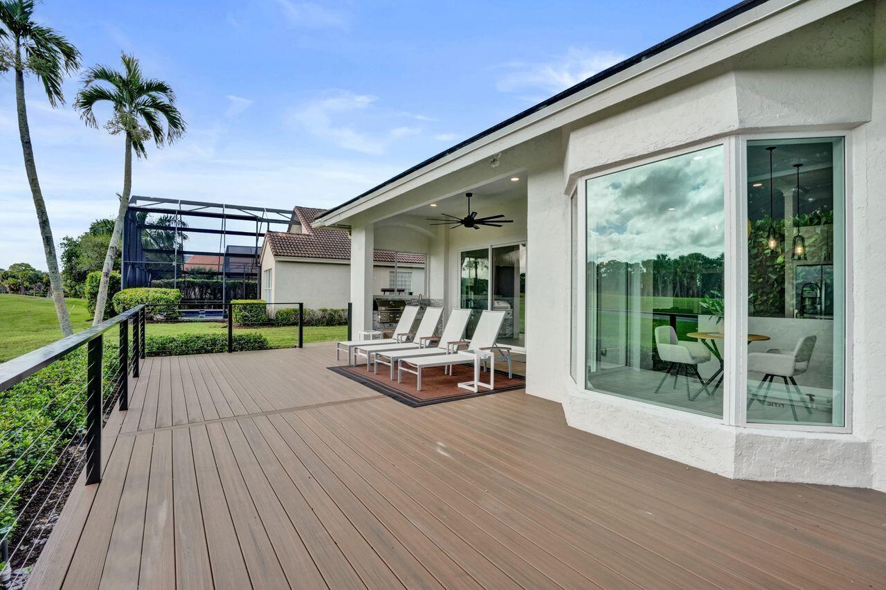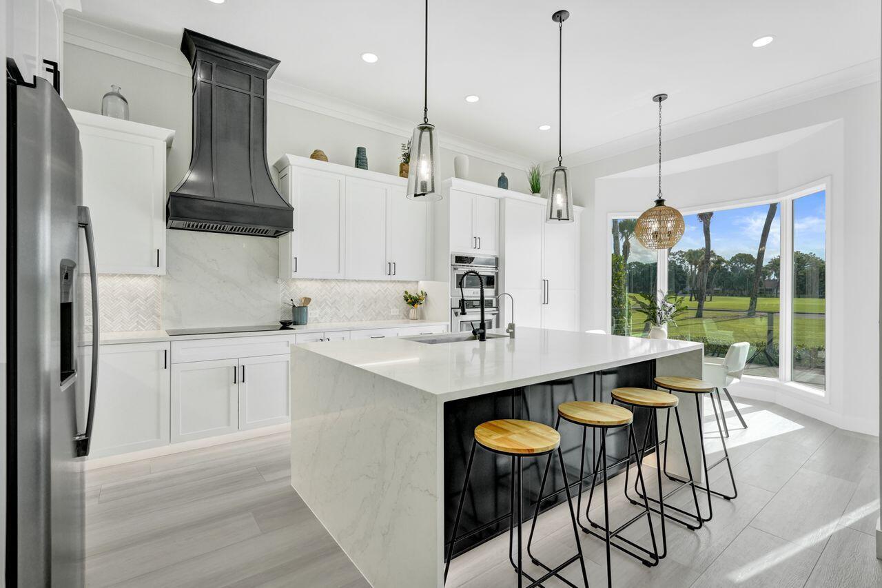 Beautiful golf course home with New roof, New A/C , New impact windows/doors and New water heater in the 24/7 man gated community of Ironhorse! This renovated one-story gem offers a showstopping kitchen--brand new with top-of-the-line appliances, a huge quartz waterfall island with extra storage, & large pantry. The open eat-in kitchen, patio with a summer kitchen, and light/bright open family room with impact sliders leading to a sleek fenced-in composite deck with amazing golf course views of the 8th & 9th holes makes this the perfect place for entertaining. Spacious owner's suite features walk-in closet, gorgeous bathroom with dual sinks, soaking tub, & a sleek shower. Wood look tile floors throughout, 2-car + golf cart garage. NO membership required. Near world class shopping/dining.