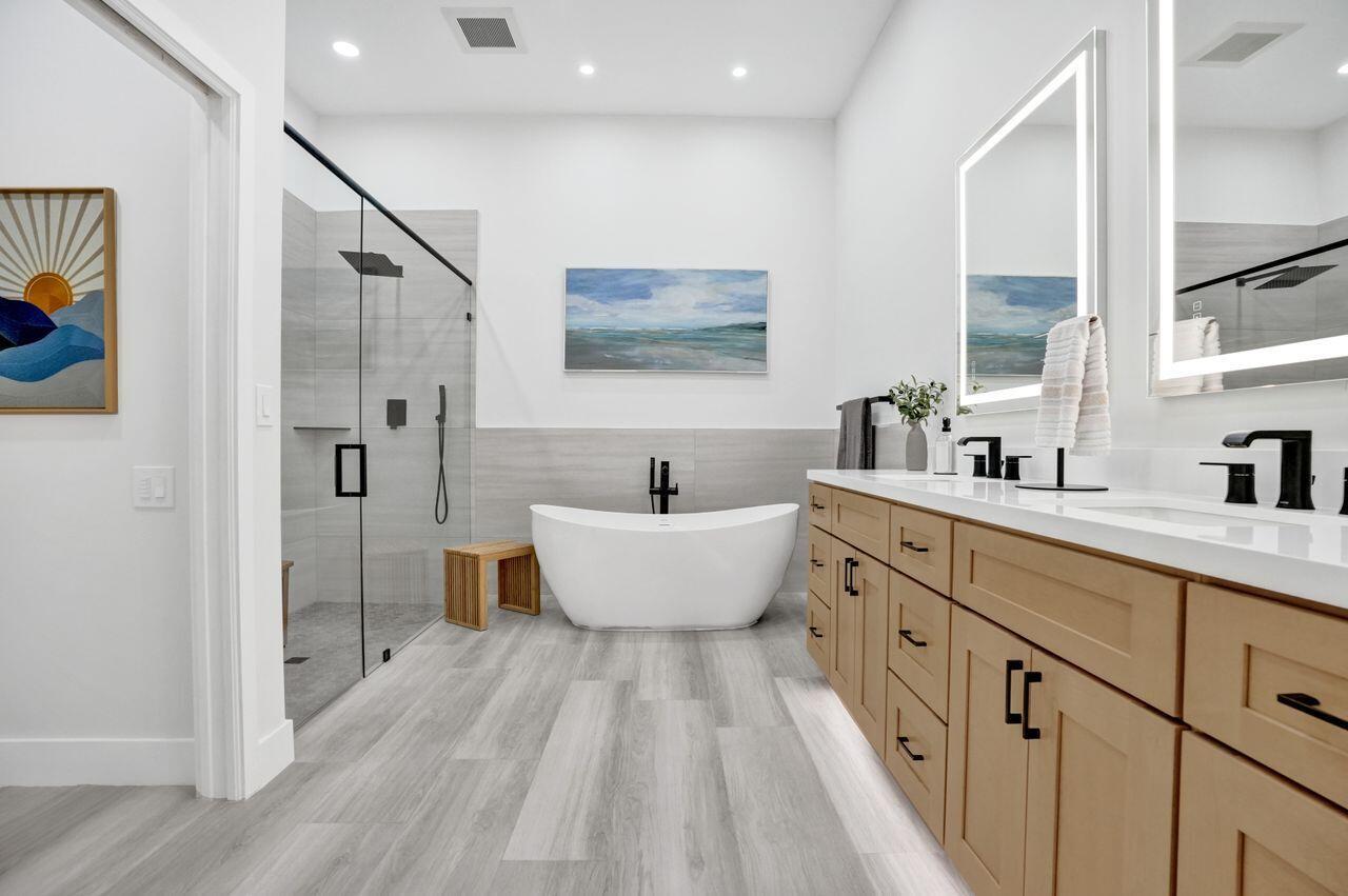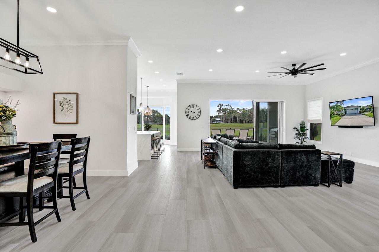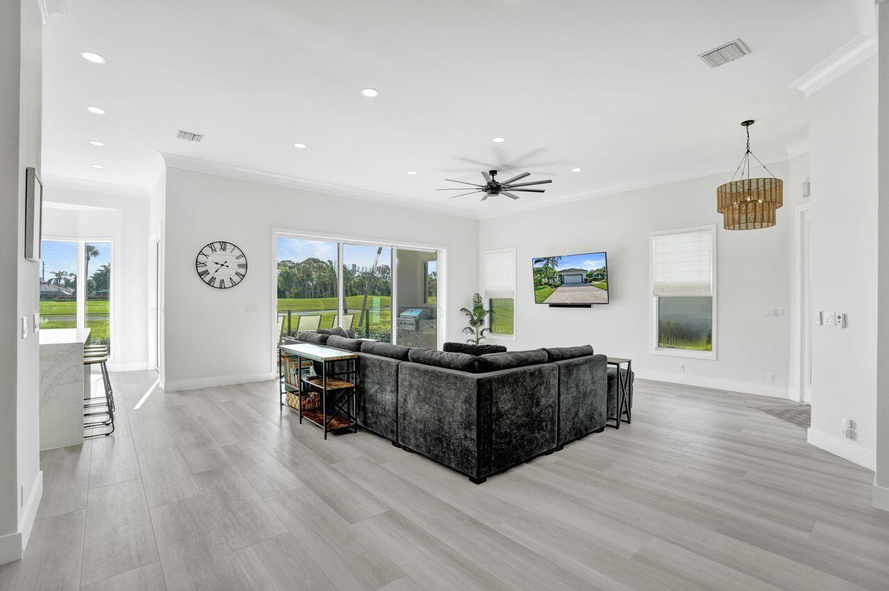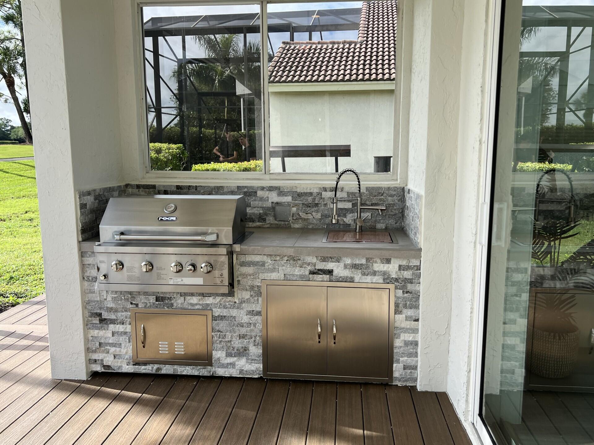 Beautiful golf course home with New roof, New A/C , New impact windows/doors and New water heater in the 24/7 man gated community of Ironhorse! This renovated one-story gem offers a showstopping kitchen--brand new with top-of-the-line appliances, a huge quartz waterfall island with extra storage, & large pantry. The open eat-in kitchen, patio with a summer kitchen, and light/bright open family room with impact sliders leading to a sleek fenced-in composite deck with amazing golf course views of the 8th & 9th holes makes this the perfect place for entertaining. Spacious owner's suite features walk-in closet, gorgeous bathroom with dual sinks, soaking tub, & a sleek shower. Wood look tile floors throughout, 2-car + golf cart garage. NO membership required. Near world class shopping/dining.