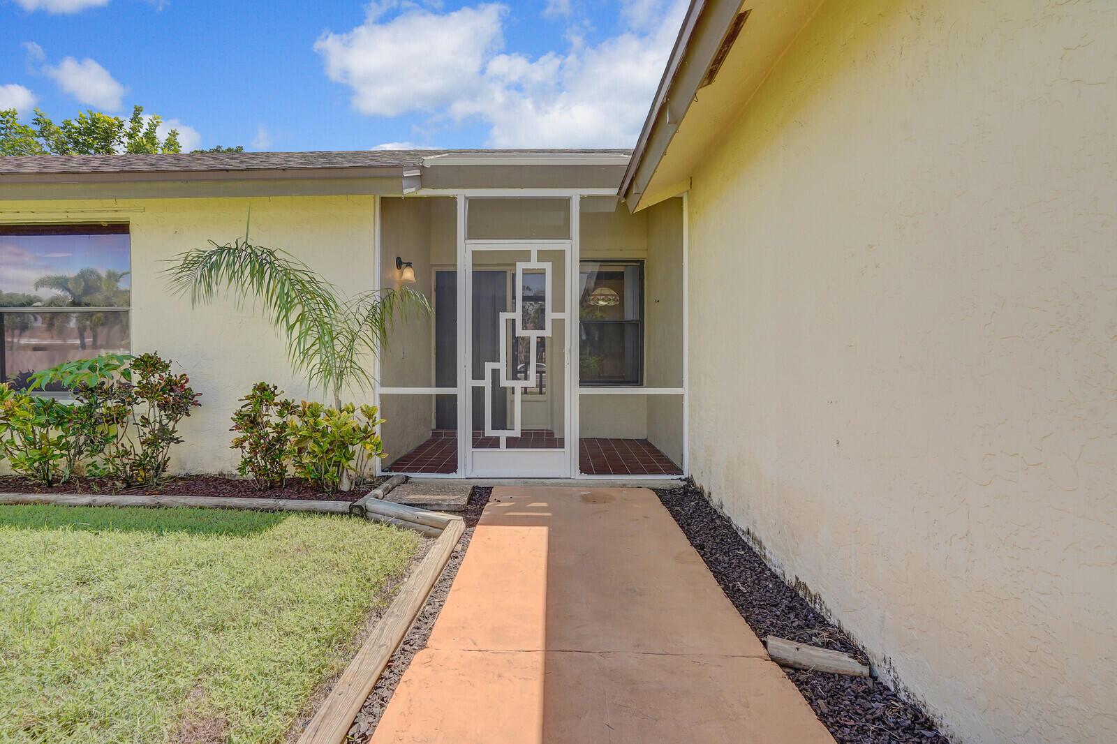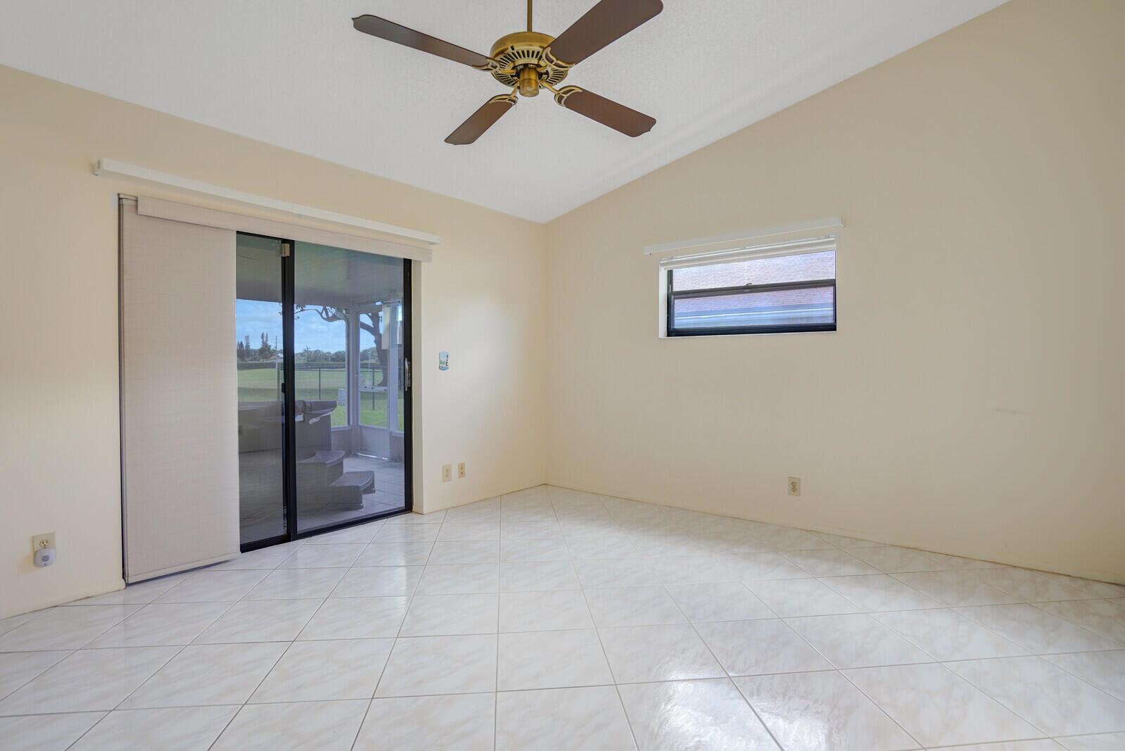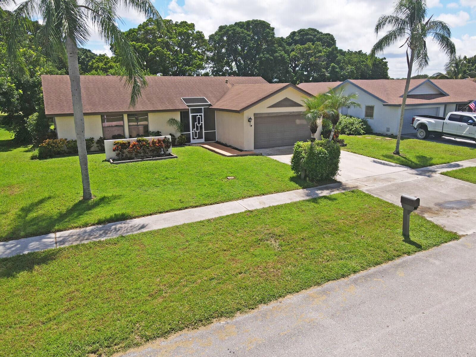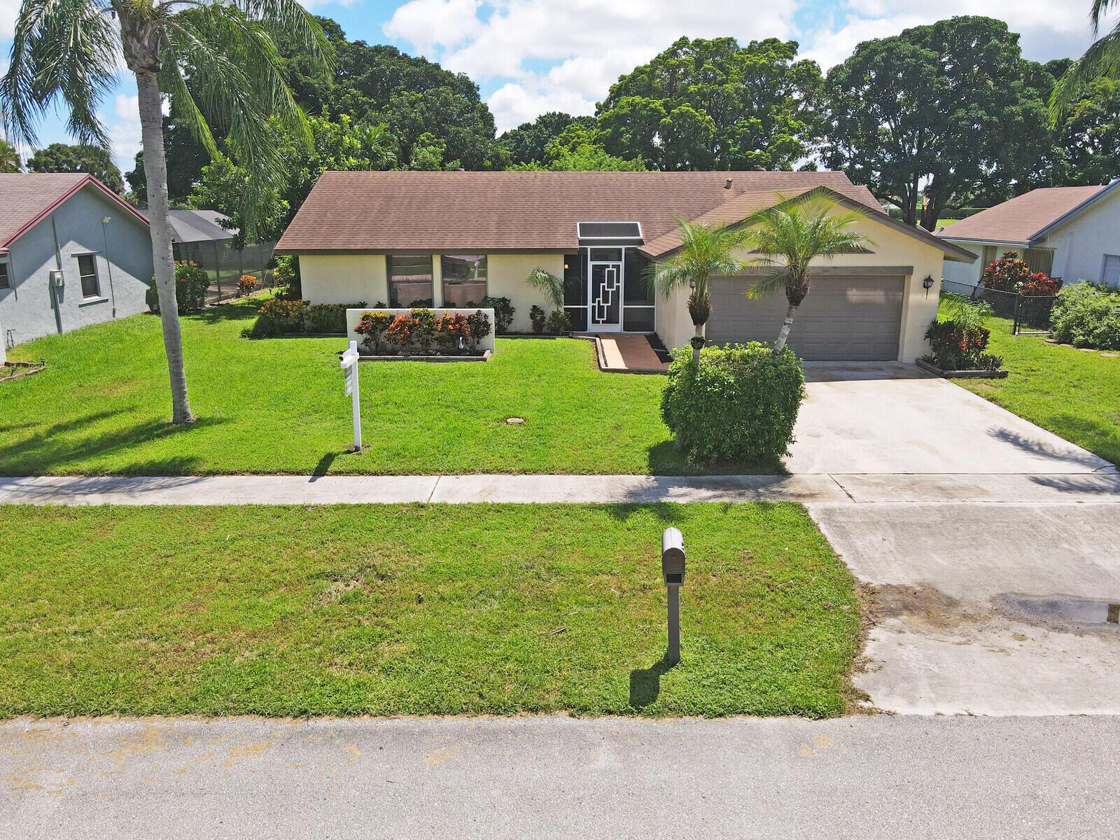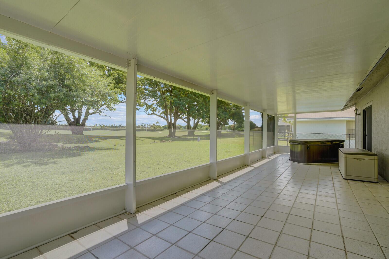 Incredible VALUE! Superb views are seen from this 'RARE'' 3-bedroom, 2-bath, 2-car garage, PLUS BONUS ROOM DEN/OFFICE, (can easily become a 4th BEDROOM by adding a closet) one-story single-family home directly on the Palm Beach County Southwinds Golf course. Large and private backyard with a covered and screened patio almost the full width of the home! The roof was installed 7/17/2020, A/C installed 9/14/2024 and upgraded kitchen cabinets with solid surface countertops. Living areas are fully tiled! INCREDIBLY LOW HOA just $75 MONTHLY. Newly upgraded community lighted amenities include pool, Gathering place, playground area, tennis, pickleball and basketball courts. Highly rated schools. No membership or dues required to play on the Palm Beach County Golf Course. Just pay and play