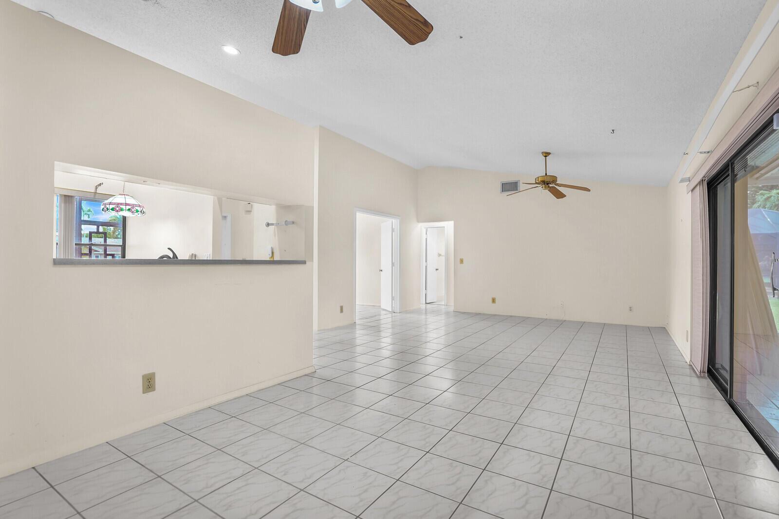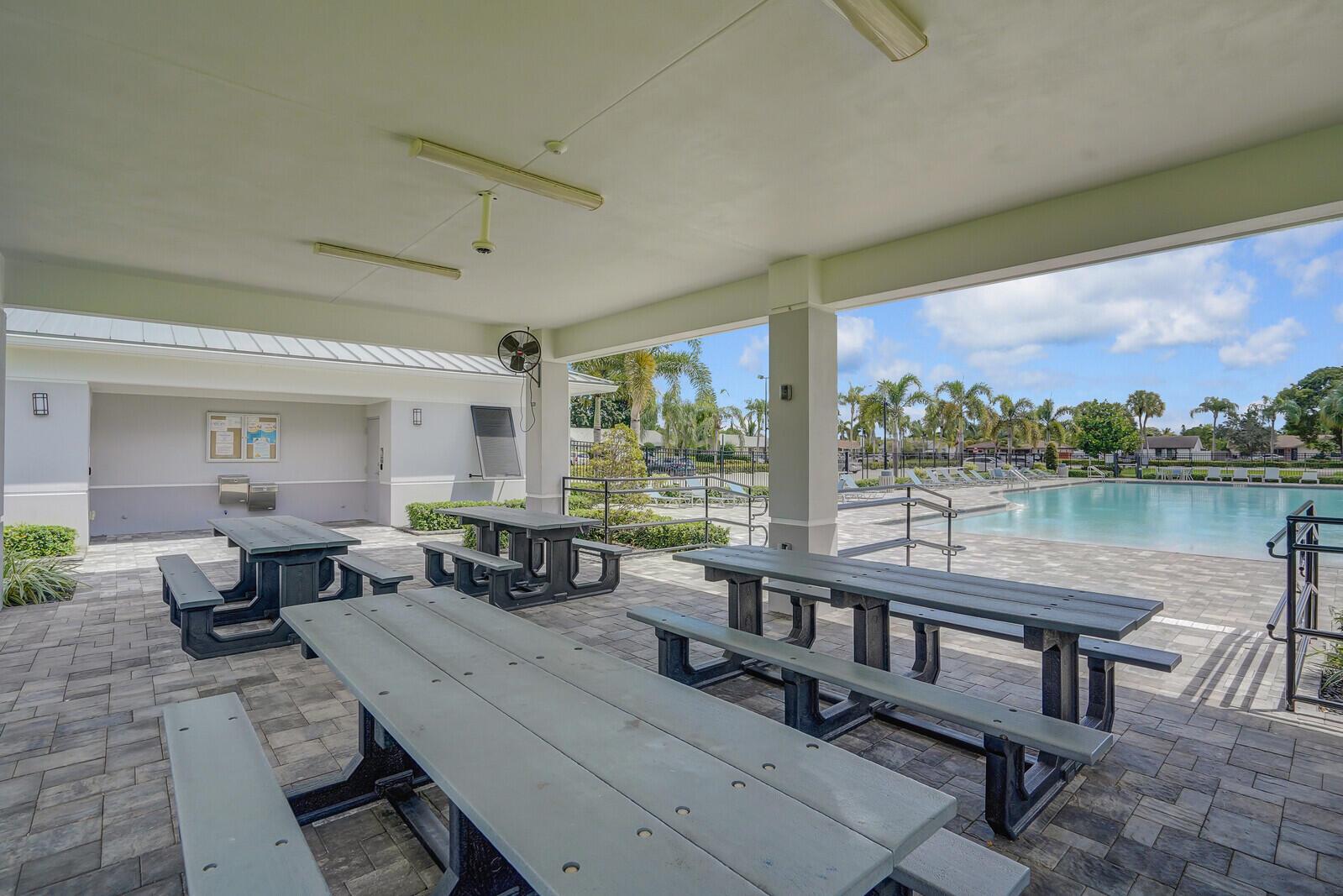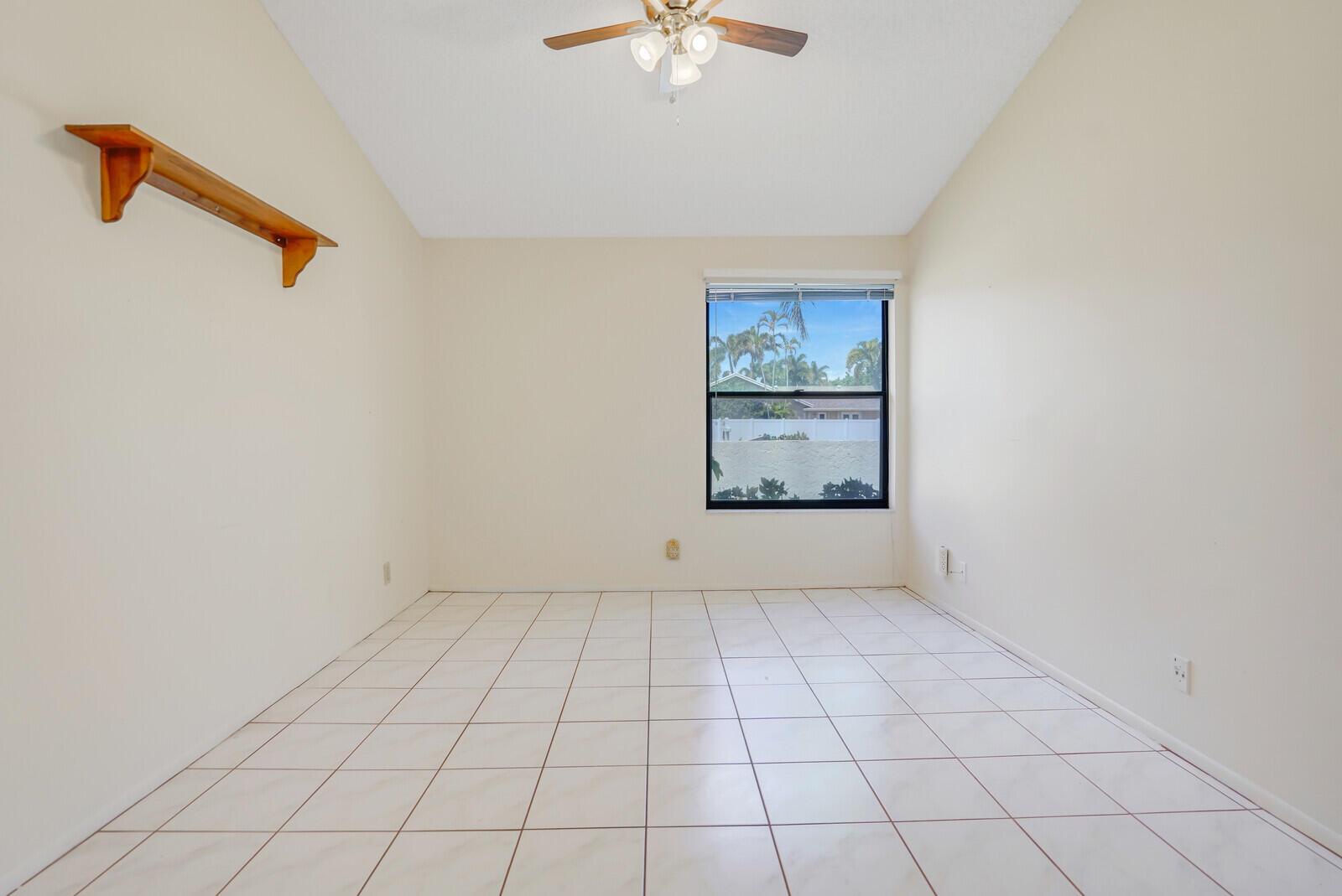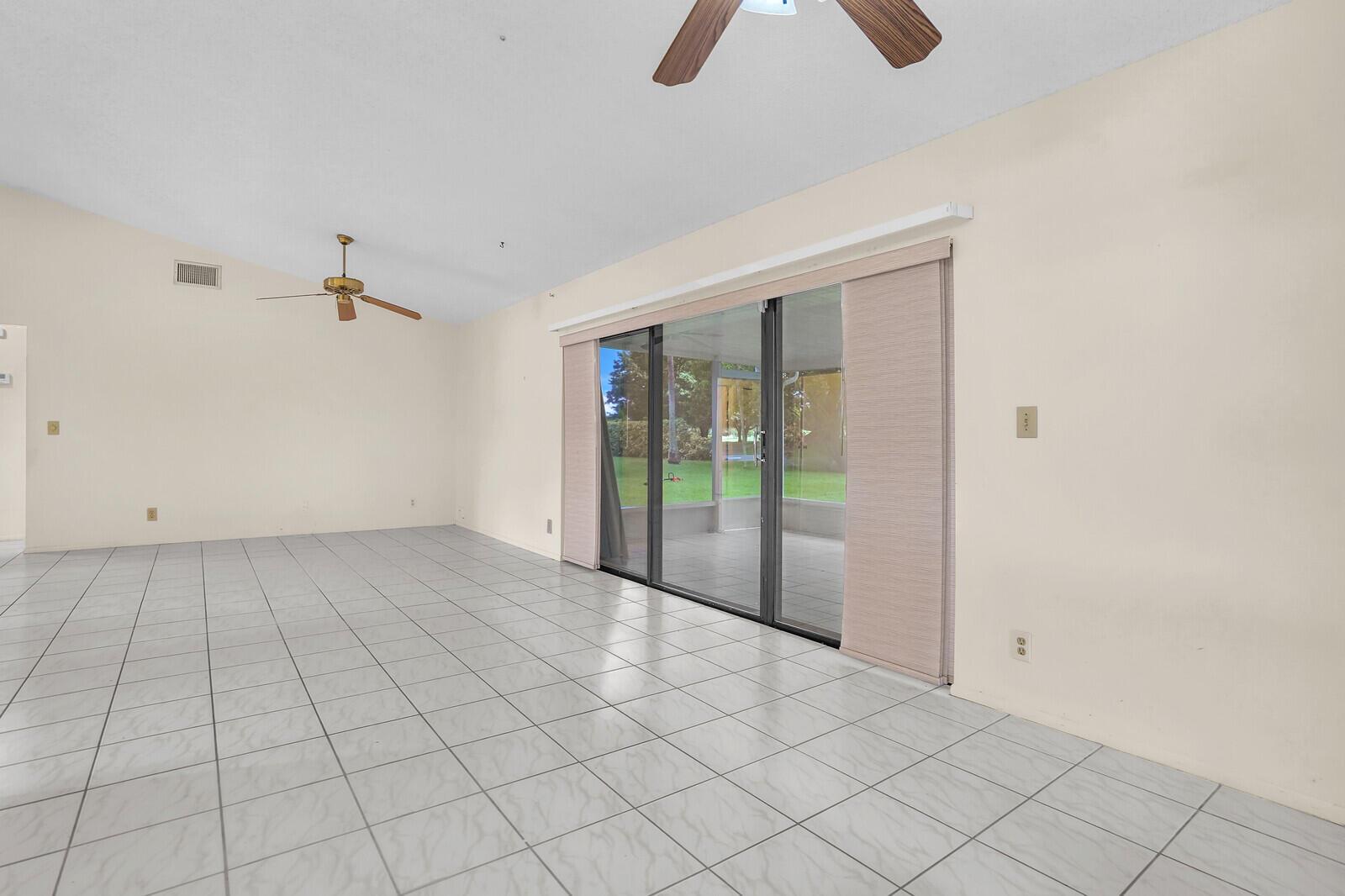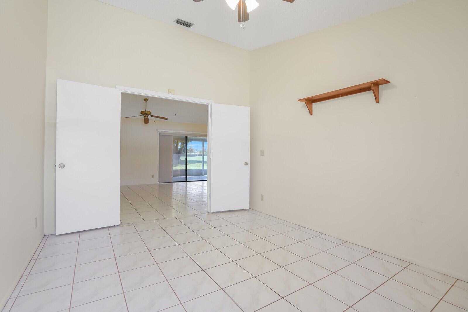 Incredible VALUE! Superb views are seen from this 'RARE'' 3-bedroom, 2-bath, 2-car garage, PLUS BONUS ROOM DEN/OFFICE, (can easily become a 4th BEDROOM by adding a closet) one-story single-family home directly on the Palm Beach County Southwinds Golf course. Large and private backyard with a covered and screened patio almost the full width of the home! The roof was installed 7/17/2020, A/C installed 9/14/2024 and upgraded kitchen cabinets with solid surface countertops. Living areas are fully tiled! INCREDIBLY LOW HOA just $75 MONTHLY. Newly upgraded community lighted amenities include pool, Gathering place, playground area, tennis, pickleball and basketball courts. Highly rated schools. No membership or dues required to play on the Palm Beach County Golf Course. Just pay and play