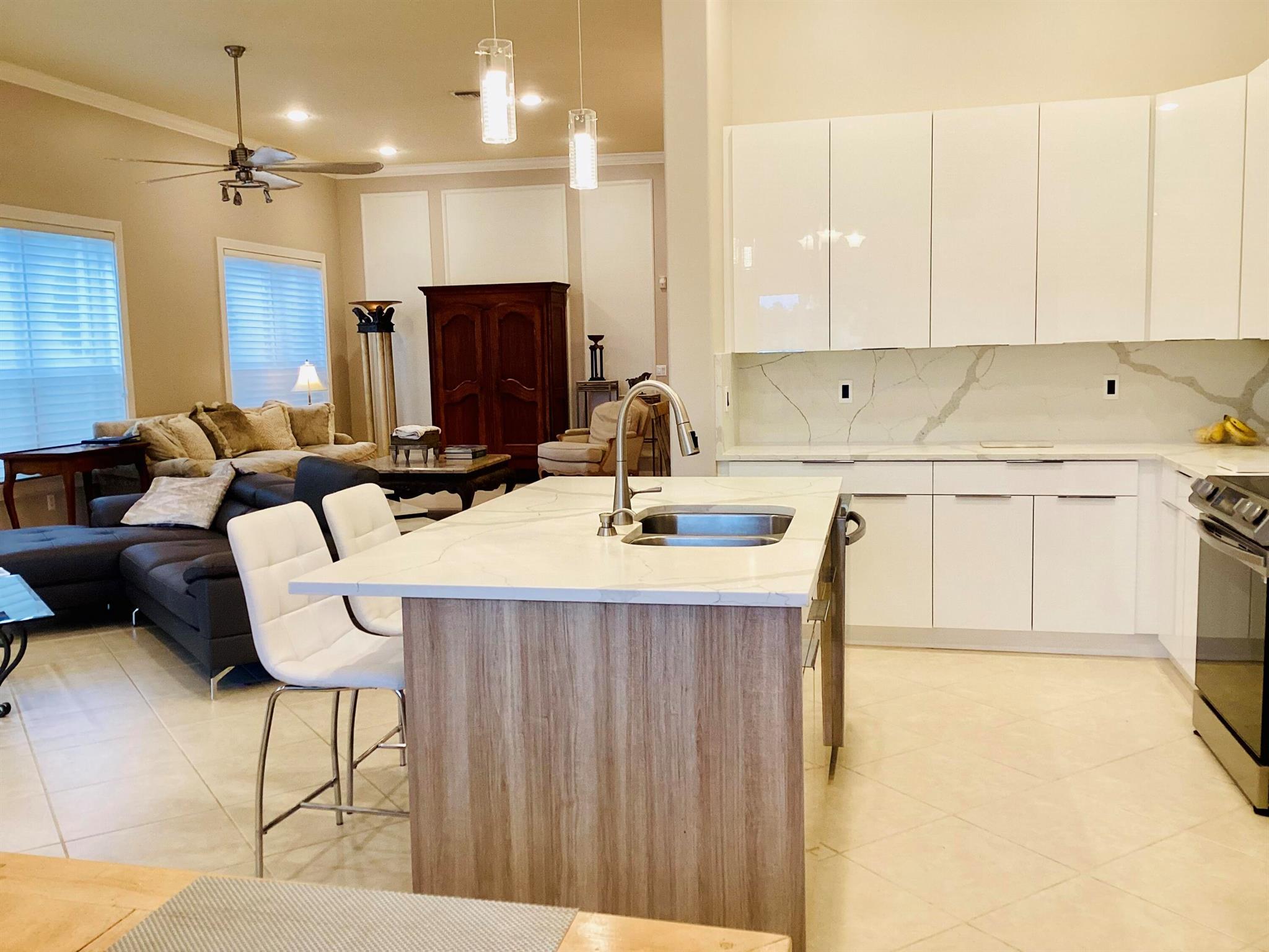 This welcoming retreat features an open concept layout highlighted by magnificent water views from the Kitchen, Family Room, Living Room and Master Bedroom. Enjoy entertaining and relaxing in the screened, saltwater and heated pool with limestone pavers.The White Renovated Kitchen, with Quartz counters, backsplash and Island plus Stainless Steel appliances are beautiful and functional.Separate den is a possible 4th bedroom but is currently outfitted with dual desks and cabinets.. Crown moldings, outfitted closets, all tile floors, Hurricane Shutters, 8500 W generator and transfer box are included.Avalon Clubhouse has been redecorated and has an oversized Pool, Spa, Fitness Center and PIckleball &Tennis Courts.Close to restaurants and shopping.
