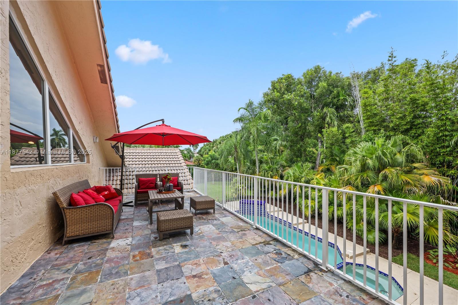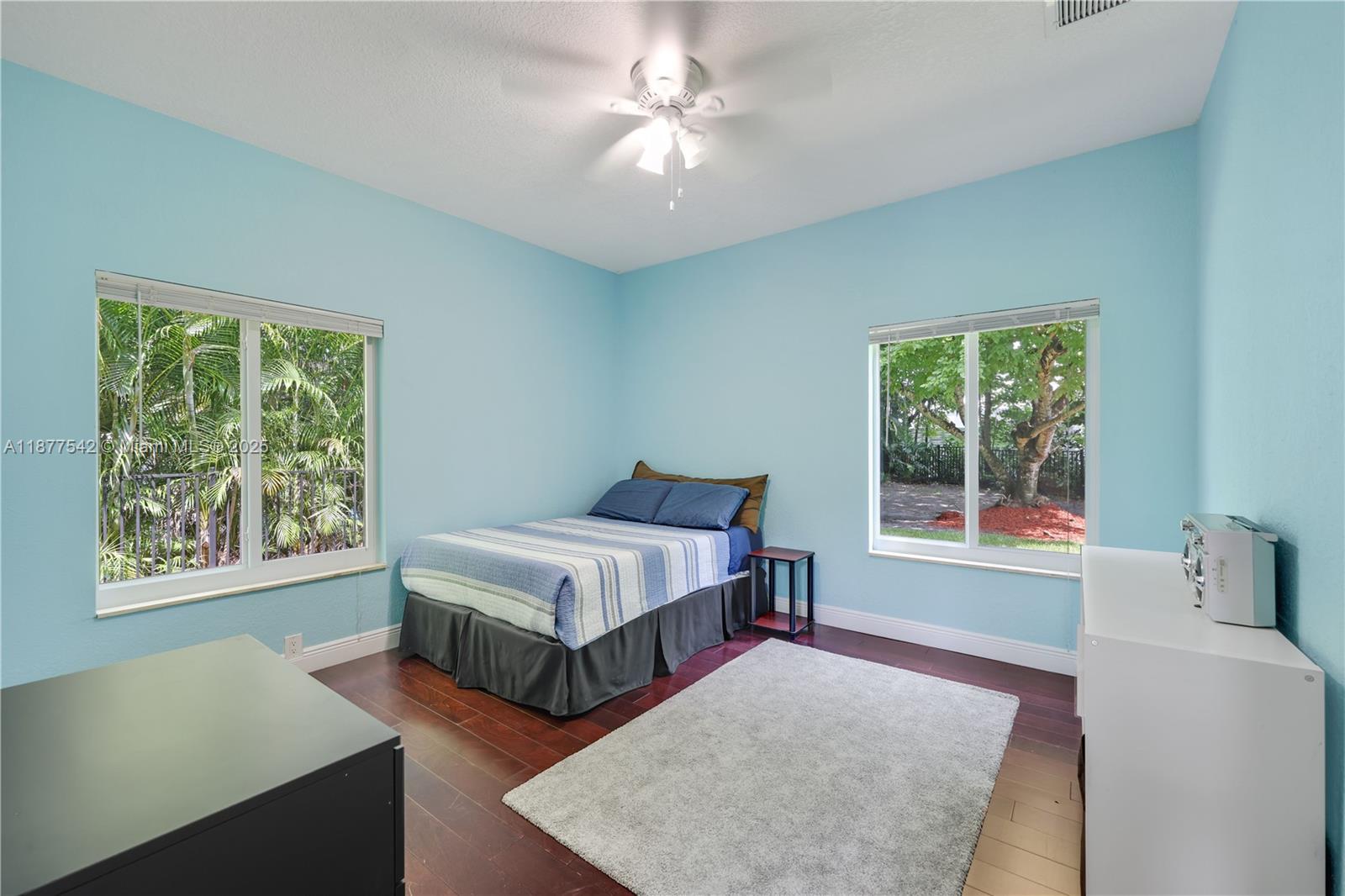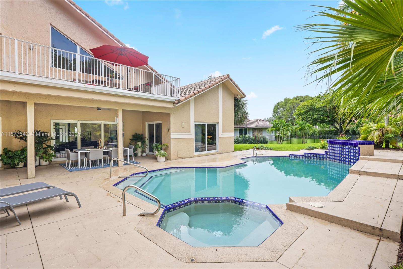 Beautiful home in the exclusive gated community of Maplewood Isle, offering ultimate luxury living. Featuring 7 bedrooms, 4 full baths 3 half baths, and over 6,000 sq ft of indoor space. Soaring ceilings, expansive windows, and an open layout filled with natural light. Six bedrooms are on the main floor, with an entertainment loft upstairs. The master suite includes his and hers walk-in closets. Enjoy open living areas with sliding doors that flow to the outdoors. Recent upgrades include new hurricane impact windows/doors and a resurfaced pool. The fenced, landscaped yard offers mature vegetation for privacy. Ideal for large families or in-law quarters, with a 2-car garage, ample driveway parking, and cul-de-sac location. Property taxes reflect extra $7,465 for impact windows financing.