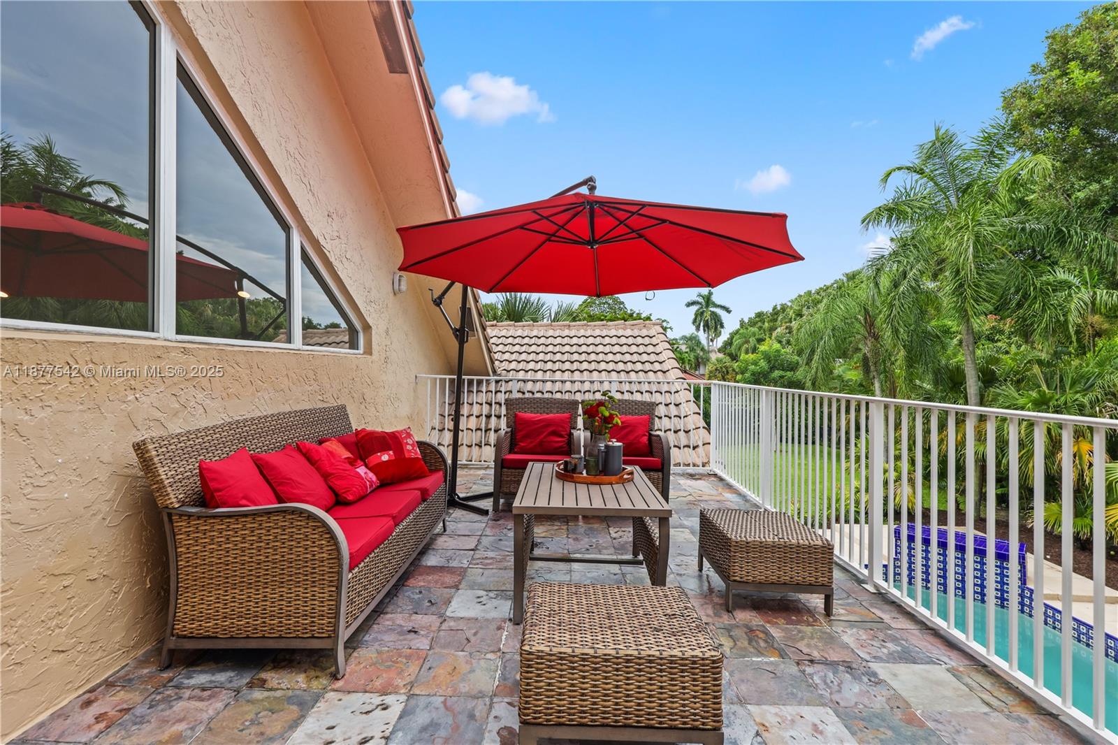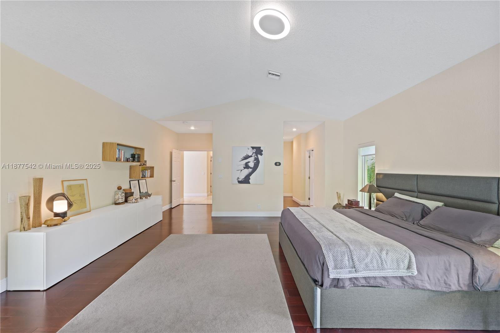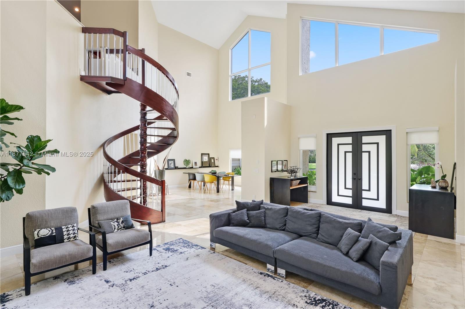 Beautiful home in the exclusive gated community of Maplewood Isle, offering ultimate luxury living. Featuring 7 bedrooms, 4 full baths 3 half baths, and over 6,000 sq ft of indoor space. Soaring ceilings, expansive windows, and an open layout filled with natural light. Six bedrooms are on the main floor, with an entertainment loft upstairs. The master suite includes his and hers walk-in closets. Enjoy open living areas with sliding doors that flow to the outdoors. Recent upgrades include new hurricane impact windows/doors and a resurfaced pool. The fenced, landscaped yard offers mature vegetation for privacy. Ideal for large families or in-law quarters, with a 2-car garage, ample driveway parking, and cul-de-sac location. Property taxes reflect extra $7,465 for impact windows financing.