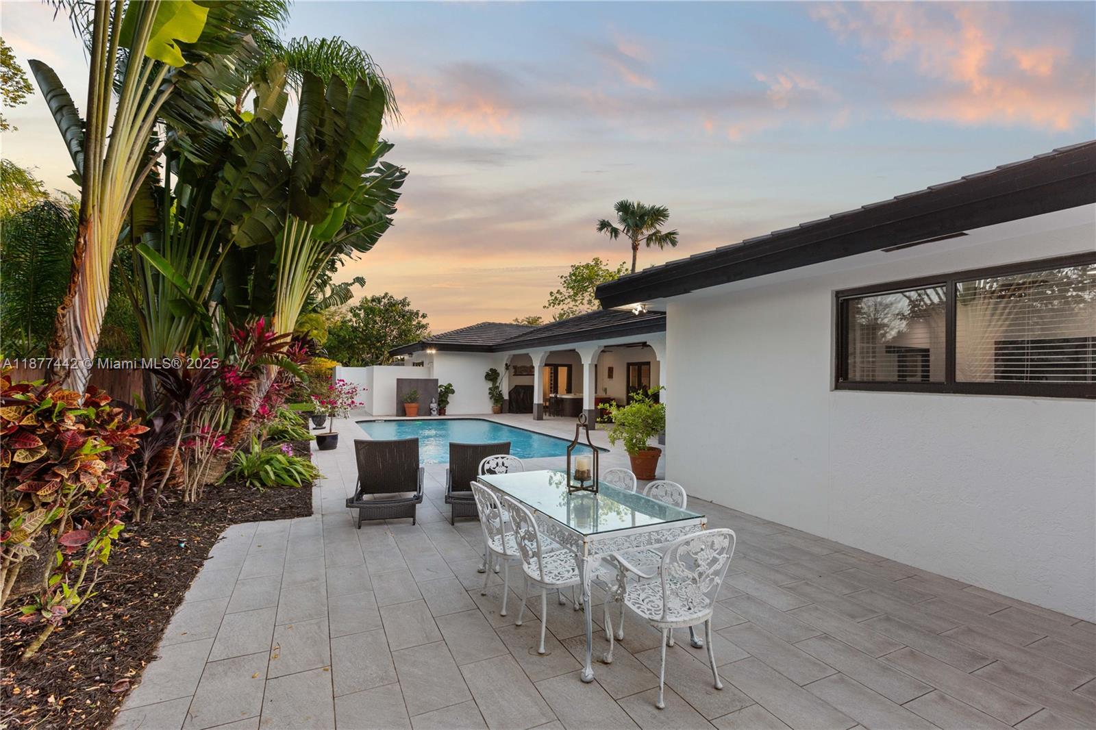 Modern 4 bedroom, 4 bath Pinecrest home, remodeled in 2020 on a “true” half-acre lot on a cul-de-sac with circular driveway & plenty parking. Lots of space to add a tennis/pickle ball court. High ceilings & impact windows & doors. Large kitchen with quartzite countertops, oversized island and seating, with all new stainless-steel appliances. One-of-a-kind professionally designed wine room with commercial refrigeration that seats up to 8 people. Spacious master suite and master bath with two generous bedrooms with accompanying bathrooms & walk-in closet. Large playroom (or 5 bedroom) and 4th bedroom/office which opens to the pool & garden. Inviting pool with jacuzzi, exterior bar, Bose sound system. 2 car garage with excellent storage. This property is not in a flood zone.
