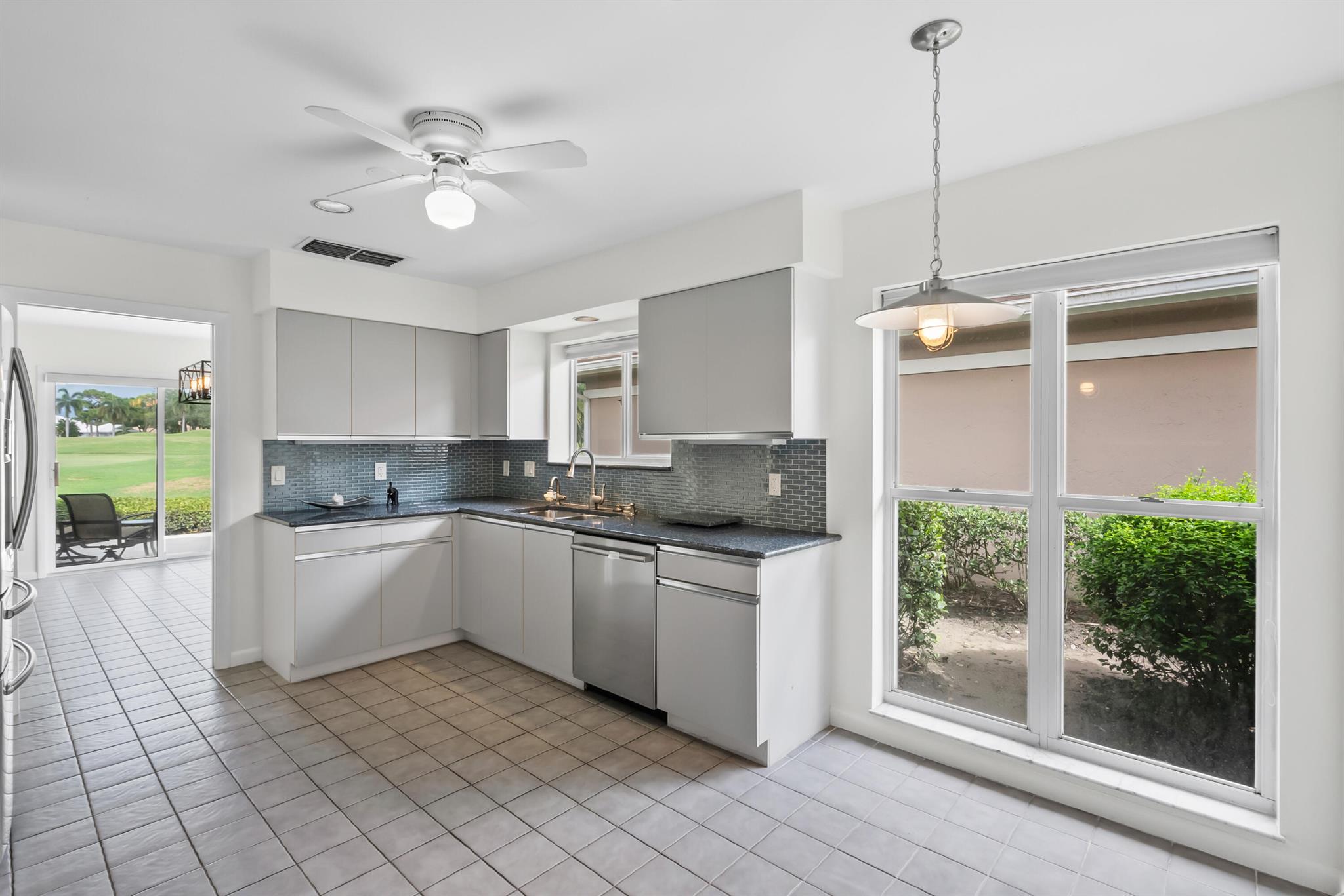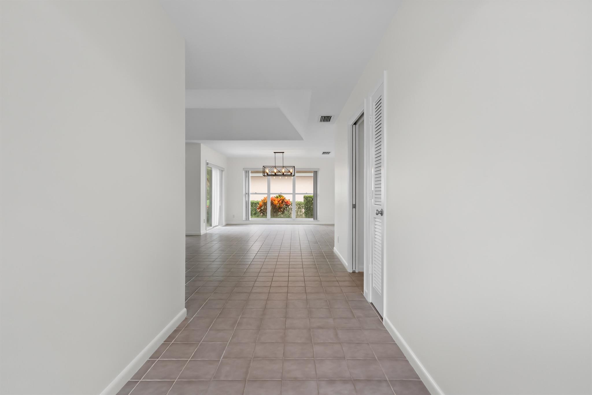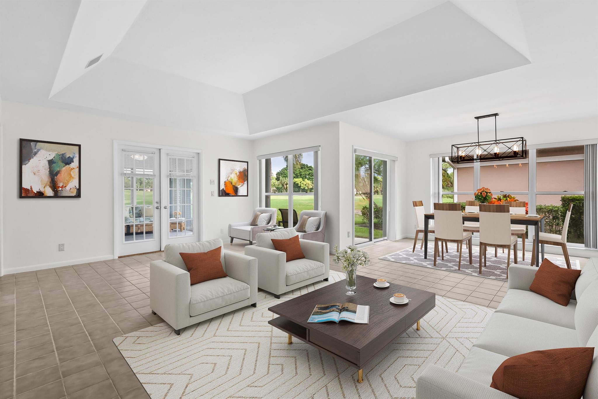 Spacious, light-filled Expanded Whitehall model with a spectacular panorama of Monarch Country Club's championship 15th fairway. A charming brick-paver courtyard sets the tone, leading into a great room with tray ceiling, and double French doors that open to the enclosed Florida room--ideal for morning coffee or sunset cocktails with sweeping golf views. The primary suite features its own French doors to the Florida room, an oversized walk-in closet, and a spa bath with Roman shower, soaking tub, and dual-sink vanity. A private guest wing offers two generous bedrooms and a large full bath. One bedroom is a flexible office/guest room outfitted with a Murphy bed, built-in shelving, and a desk.