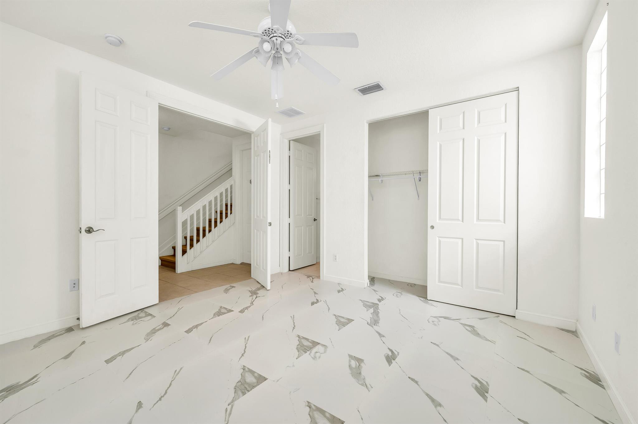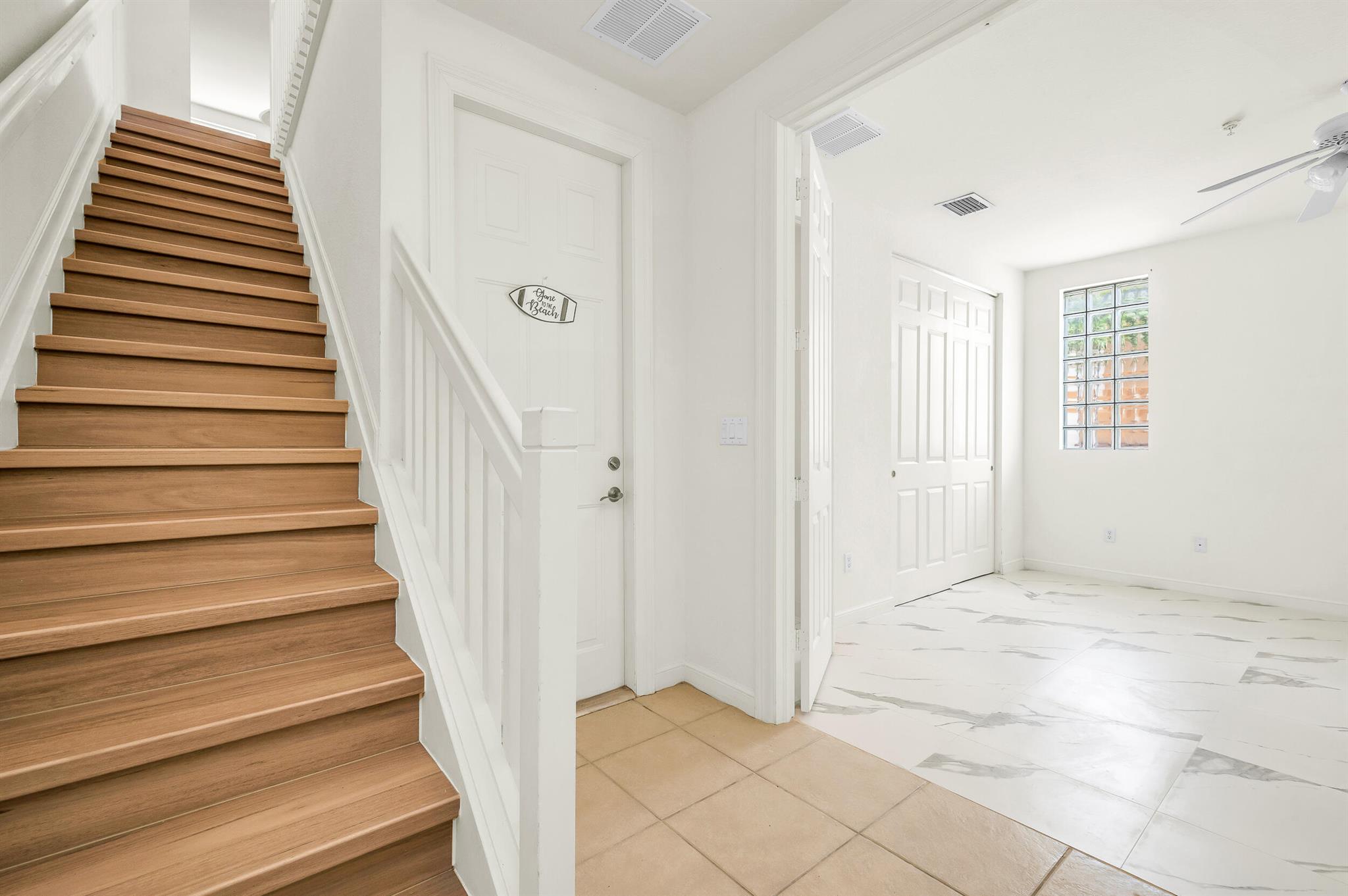 4BR/3.5 Bath, corner unit; 9 foot ceilings; Over $25,000 of upgrades; Deep cleaned and encapsulated A/C ductwork for healthier air quality, 2-Car Garage, 3 story townhouse. Condo fees include water, trash cable AND High speed internet, 7/24 security, exterior maintenance DARK FIBRE IN UNIT; Pets OK with approval. Amenities include lake front swimming-pool; 24 hour state of the art gym/fitness center, aerobics/dance room for fitness and yoga. Cityside has approximate 1.7 miles of running track, 24-hour man gated security and rover. Located only minutes from I-95, Downtown WPB, across street from the new Palm Beach Outlet Mall; Room lights may vary; Actual appliances are white' 2025 new porcelain flooring, LED lights fixtures, new steps, new coils & air handler;