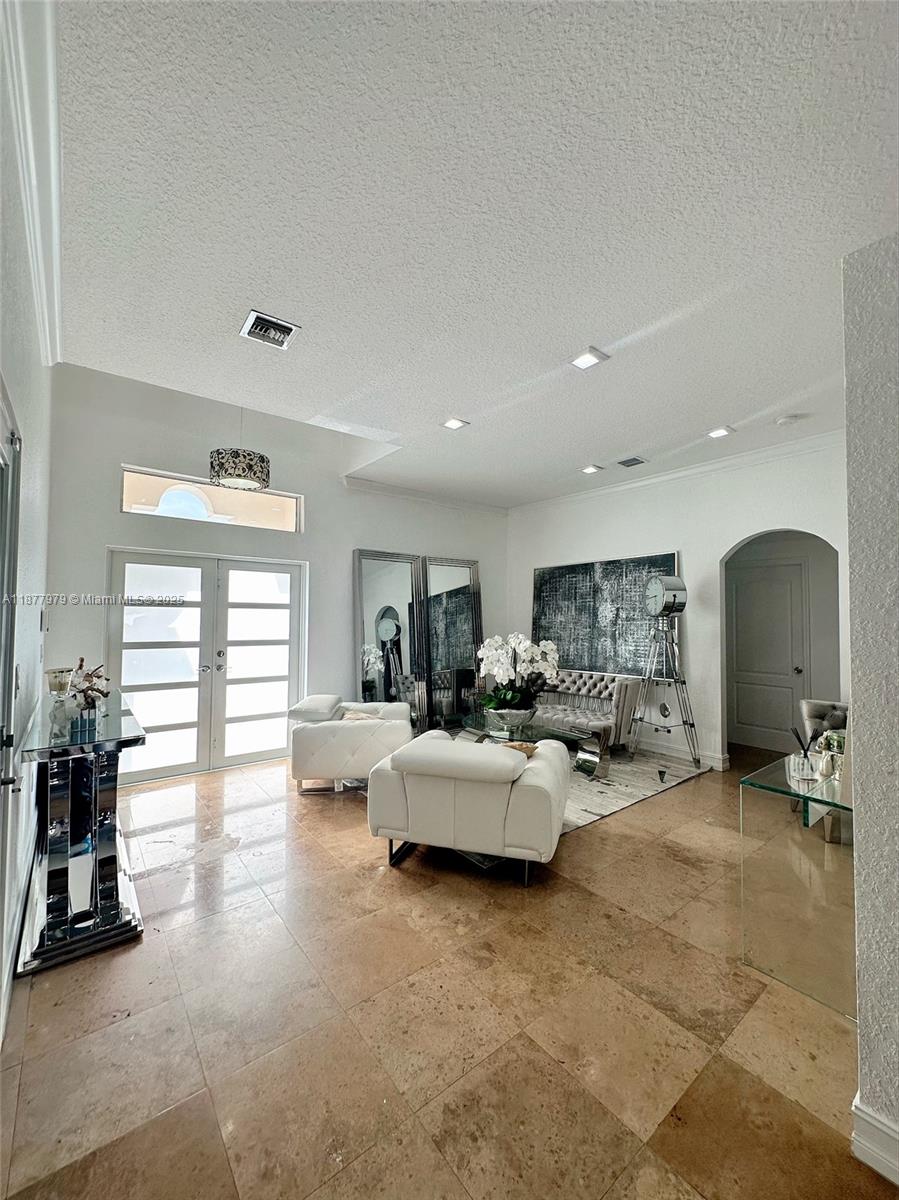 Exclusive residence in a neighborhood with homes priced over 900K. Priced to Sell, Featuring 4 bedrooms, 3 bathrooms with a total of 2364 SQFT, a pool with direct bathroom access, spacious closets, and travertine marble floors throughout interior and exterior. The luxurious master bathroom boasts an oversized shower with a central rainfall head, two additional side showers with jets, a relaxing jacuzzi, and frameless glass doors for peace of mind. Outdoors, enjoy an aluminum pergola fully equipped with gas oven, BBQ, sink, and a large granite countertop. Modern concrete driveway and climate-controlled garage with tile flooring, plus exterior access offering the option to create a playroom or additional bedroom. Elegance, comfort, and versatility in one home.