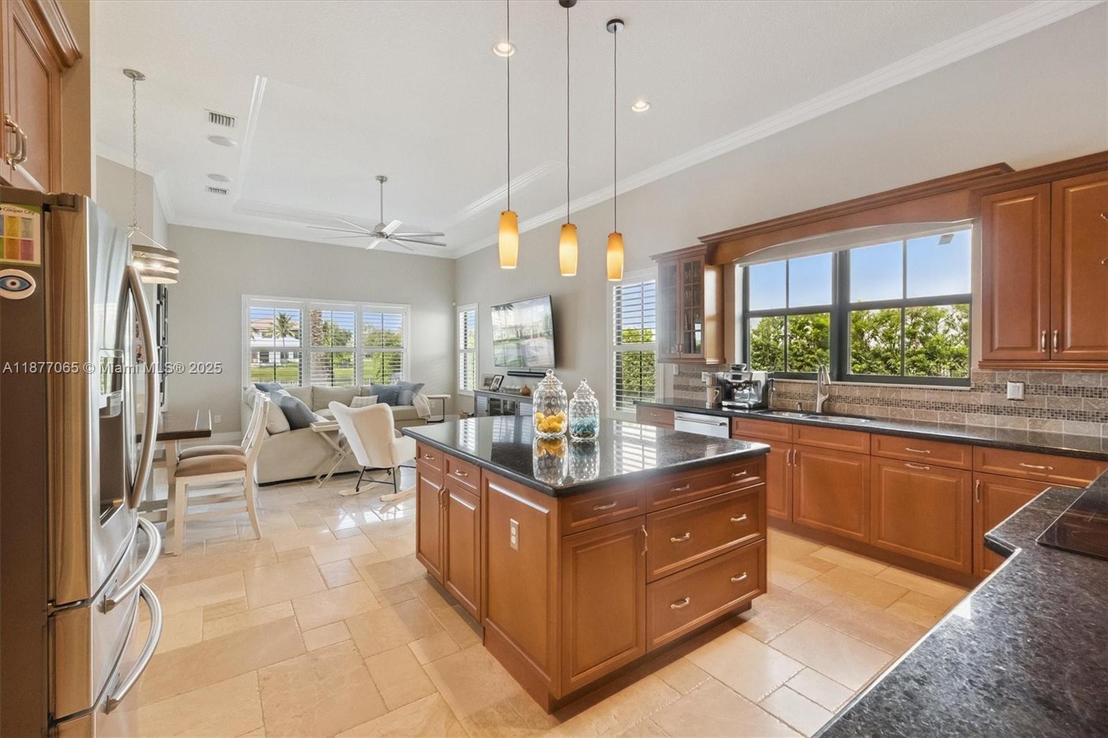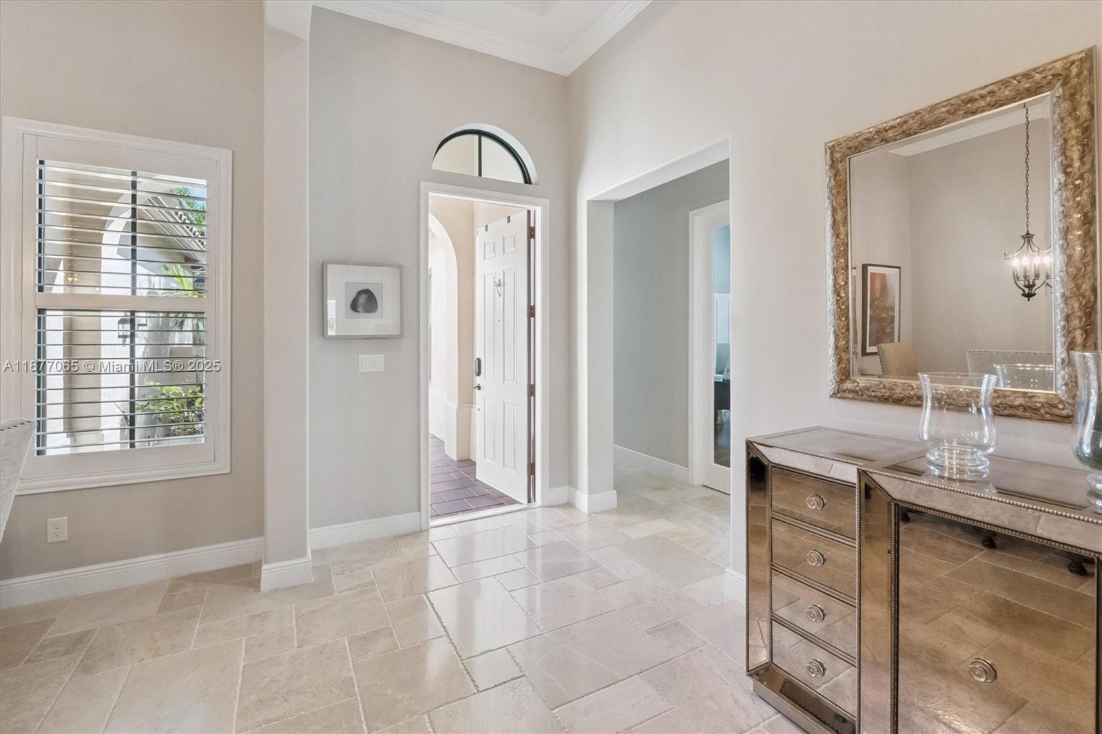 Secluded on a private cul-de-sac with tranquil waterfront views, this Monterra Estate pairs timeless sophistication with modern comfort. Marble floors & soaring ceilings flow beneath elegant crown molding and plantation shutters, while walls of PGT/CGI impact glass (2019) invite seamless indoor-outdoor living. A refinished pool & expansive travertine terrace are surrounded by lush privacy landscaping & full fencing, creating a private resort at home. Practical elegance abounds with an extended driveway, epoxy-finished garage w/attic ladder & EV connection, dual A/C's, & generator wiring for half the residence. Resort-style amenities include clubhouse, fitness center, basketball & tennis courts, dog park, and walking trails. A+ rated schools and convenient access to house of worship.