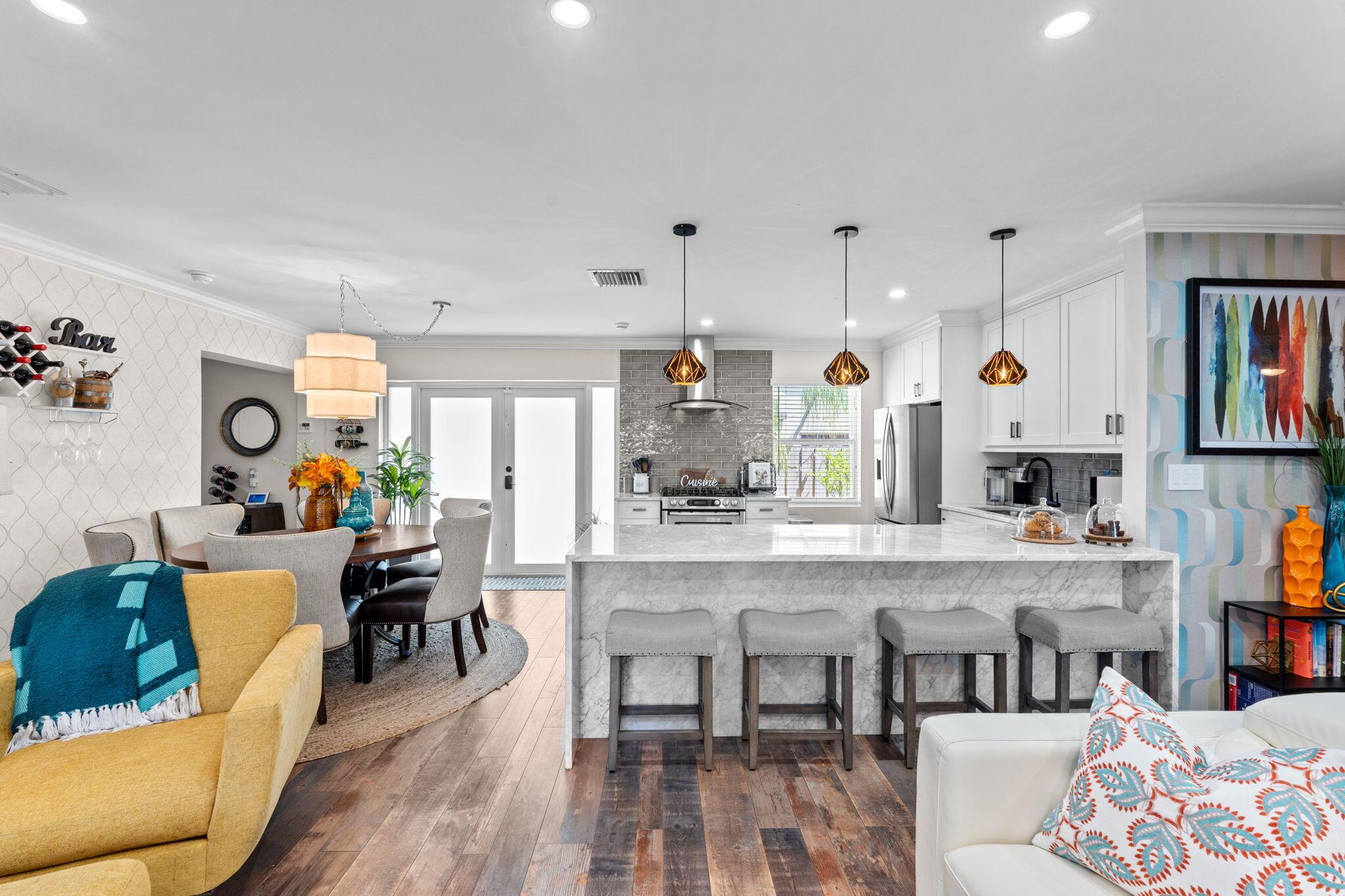 Charming and beautifully remodeled home in Historic Northwood. Built in 1959, this residence blends character with modern updates including a custom main bedroom closet, updated kitchen with marble countertops, accordion shutters, gas stove & on-demand water heater, whole-home water purification system, and new irrigation system using well water. Designer-style wallpaper accent walls add a touch of elegance. Bright living spaces flow to a private backyard retreat with gazebo, perfect for relaxing or entertaining. The driveway features an automatic gate for convenience. Minutes from Downtown West Palm, the waterfront, and the new Nora District, with Palm Beach Island and PBI Airport less than 15 minutes away.