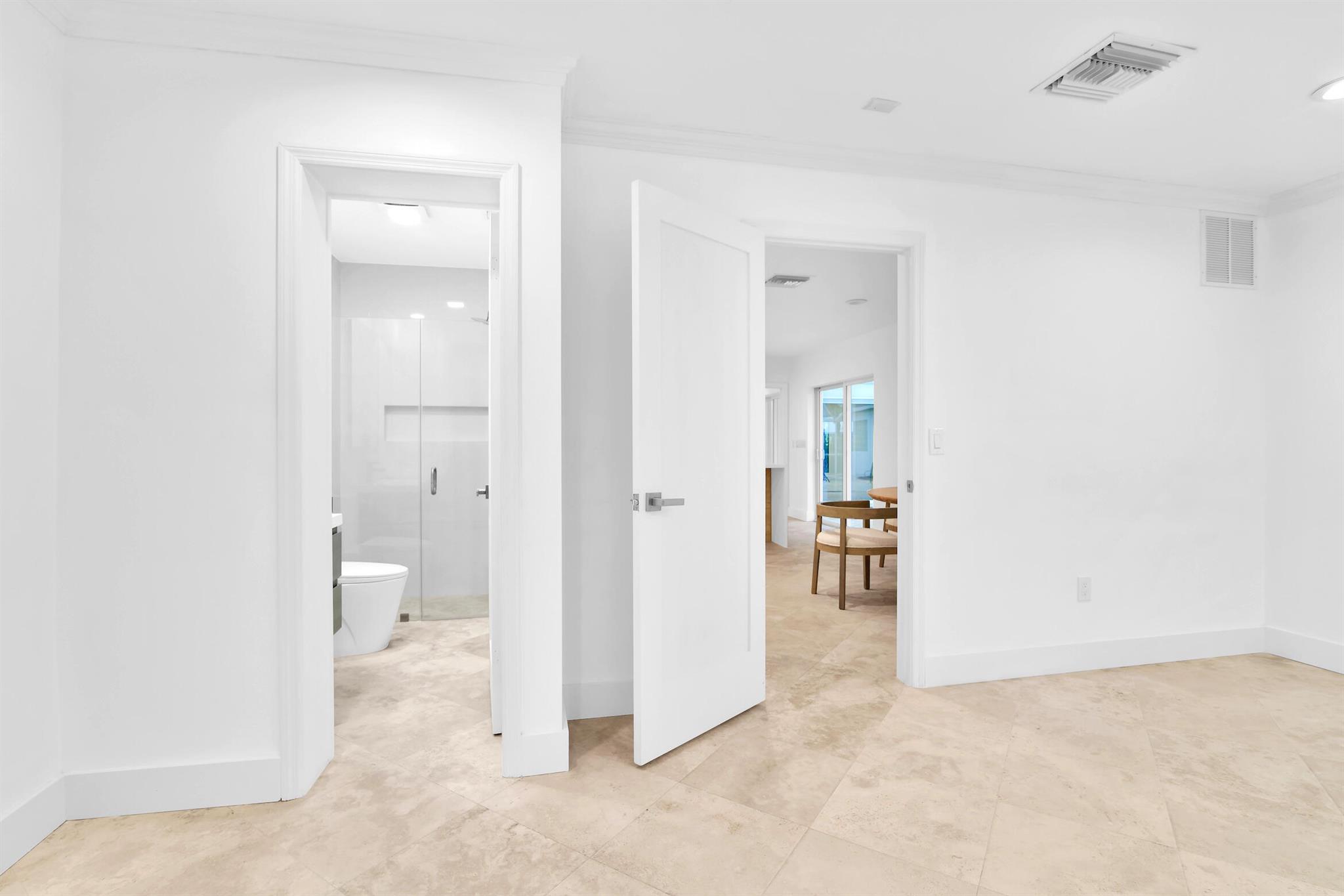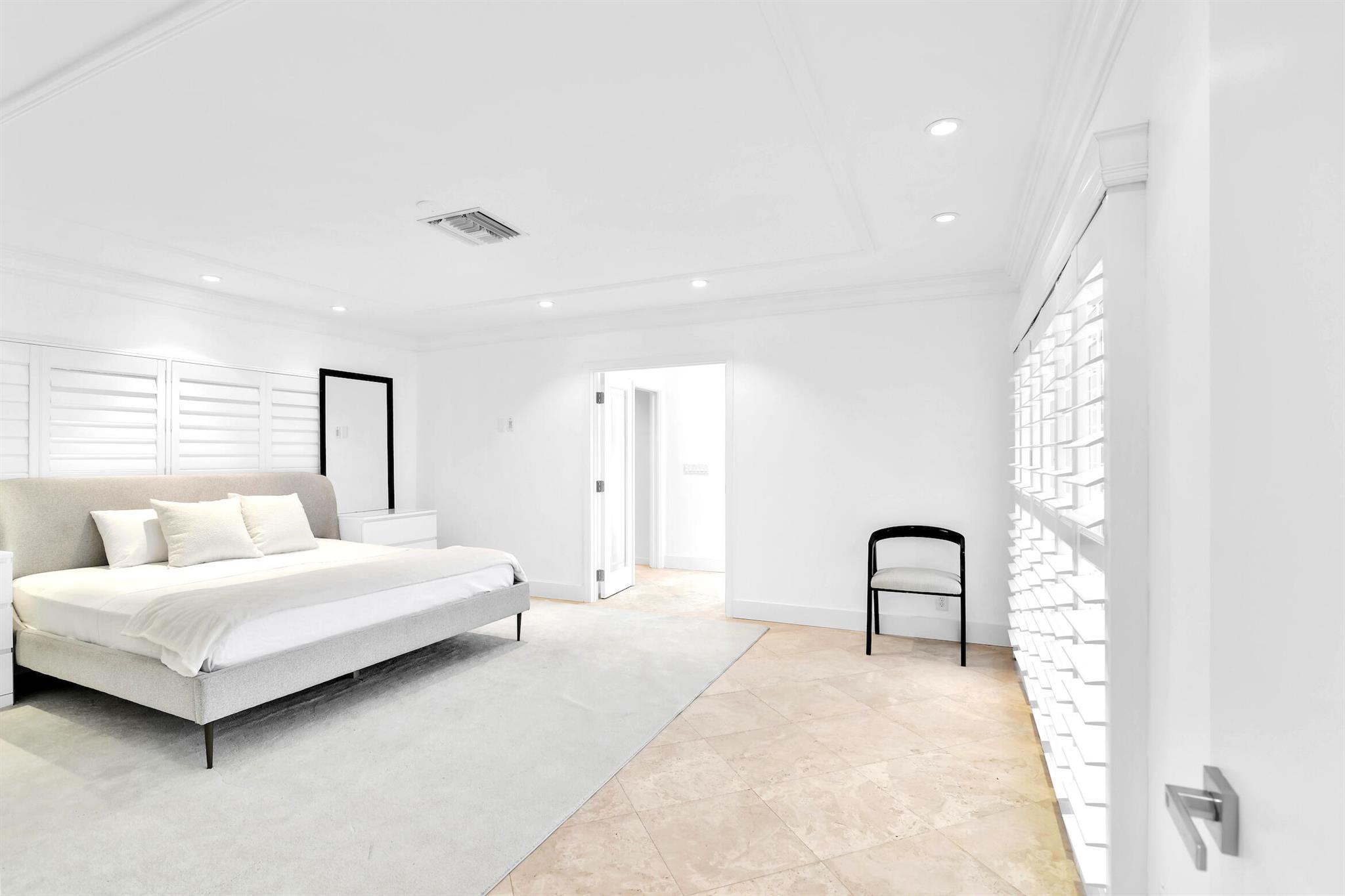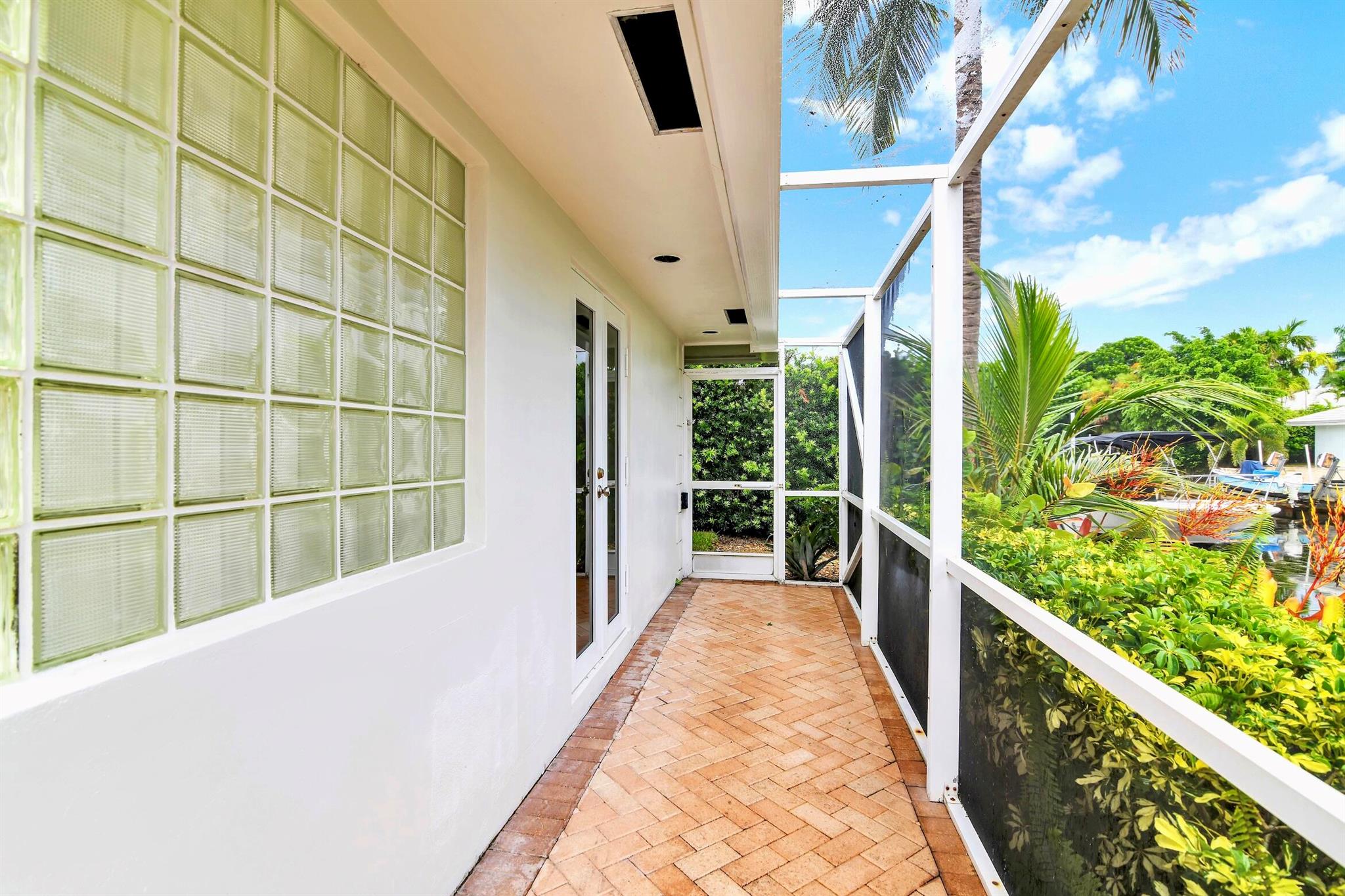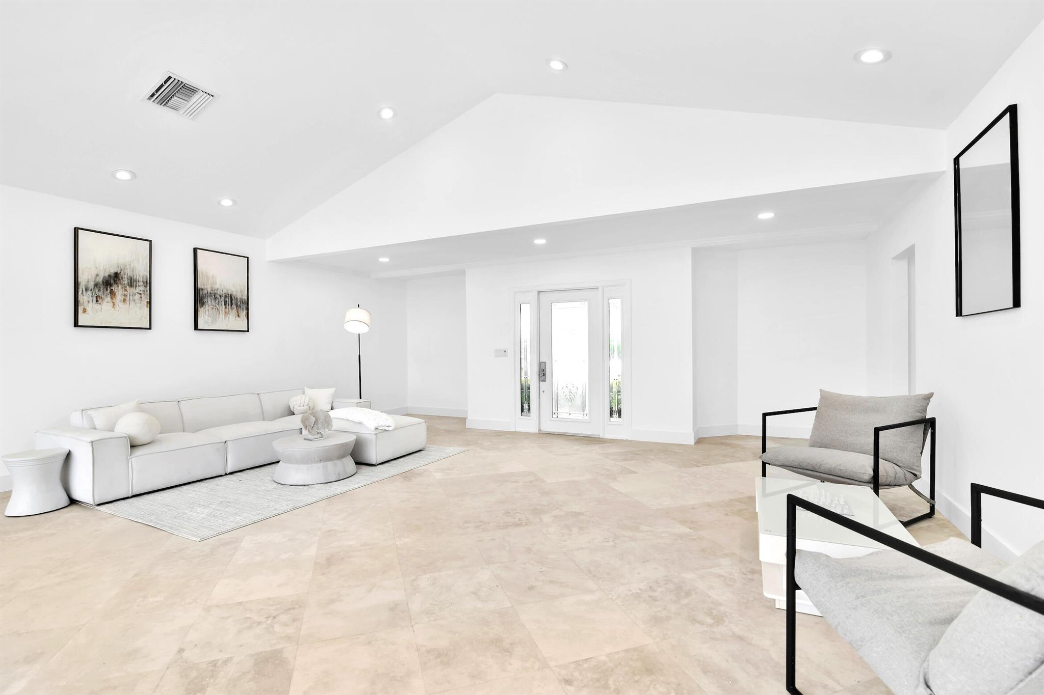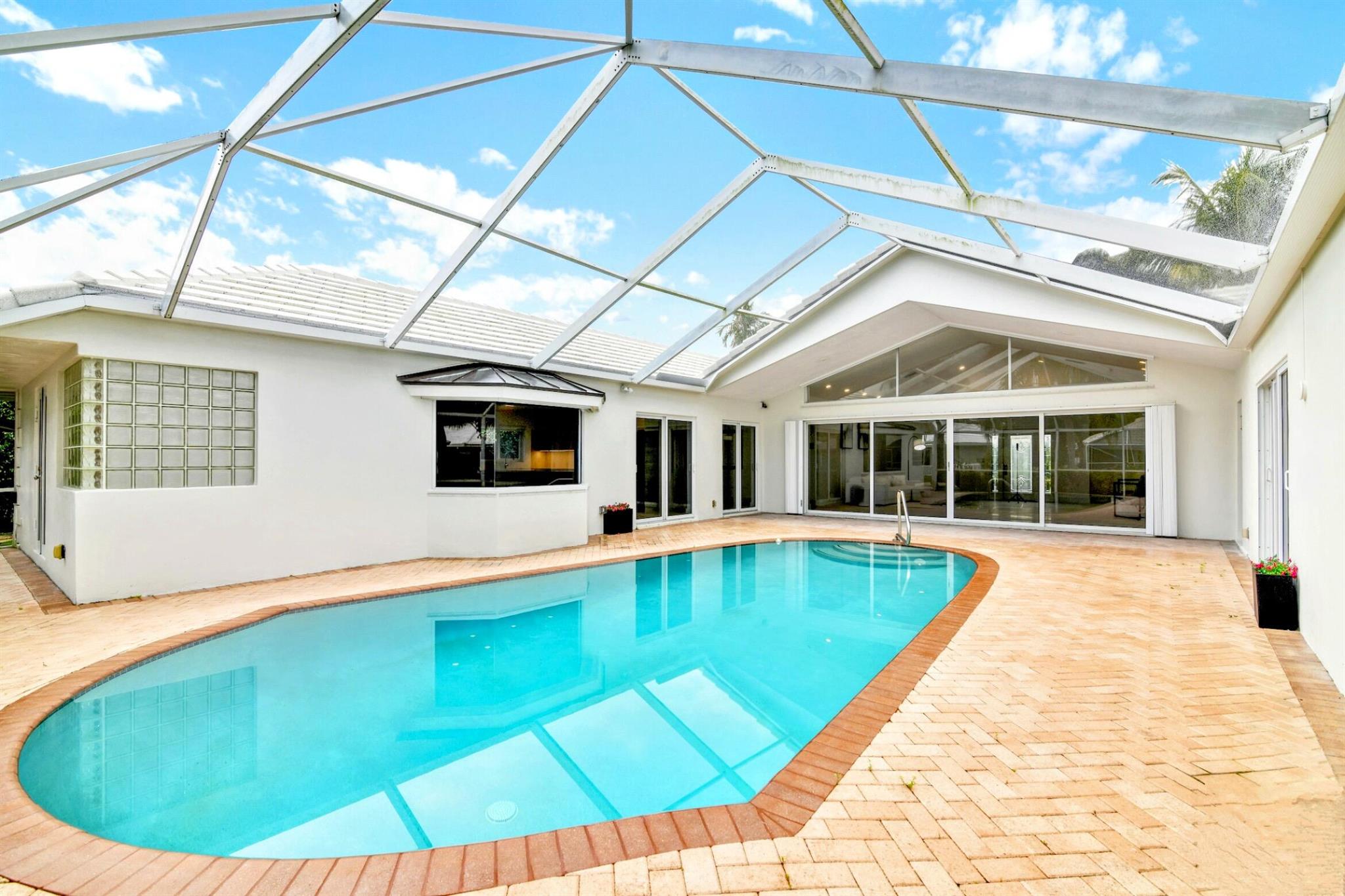 A rare, newly renovated Camino Gardens waterfront residence with 85+/- ft of frontage and ocean access. Features include a new kitchen and baths, sleek marble floors, vaulted-ceiling living room, contemporary chef's kitchen with island and casual dining, plus a versatile office/guest suite/gym. The primary suite offers pool access, a spa bath with freestanding tub, curbless shower, and custom closet. Two guest bedrooms have walk-ins. Outdoor living shines with a screened lanai, saltwater pool, and dock with lift and dual ramps. Additional perks: Wi-Fi irrigation, 2-bay garage with EV charger, and newer roof. Ideally close to Mizner Park, dining, beaches, and A-rated schools.