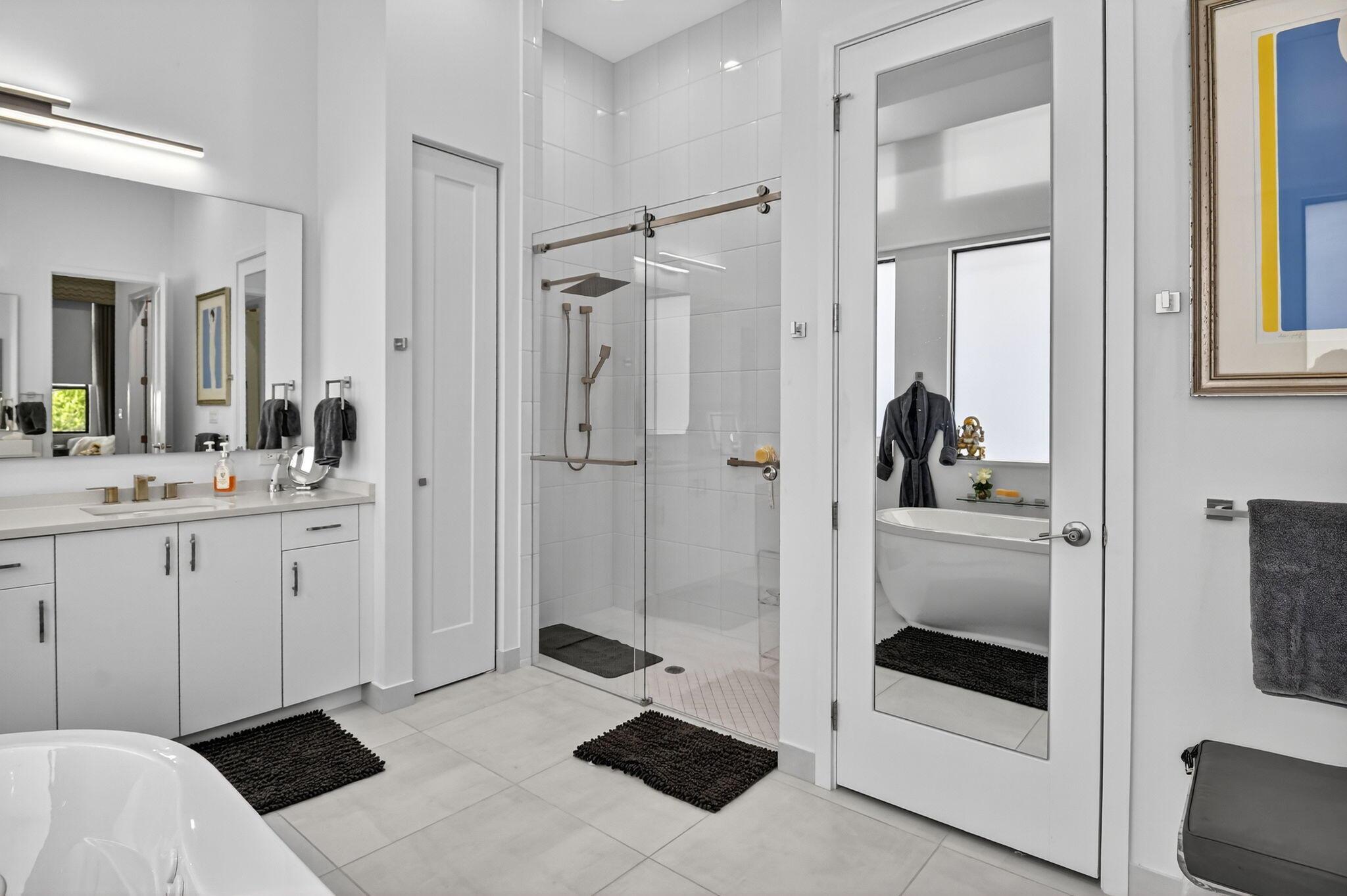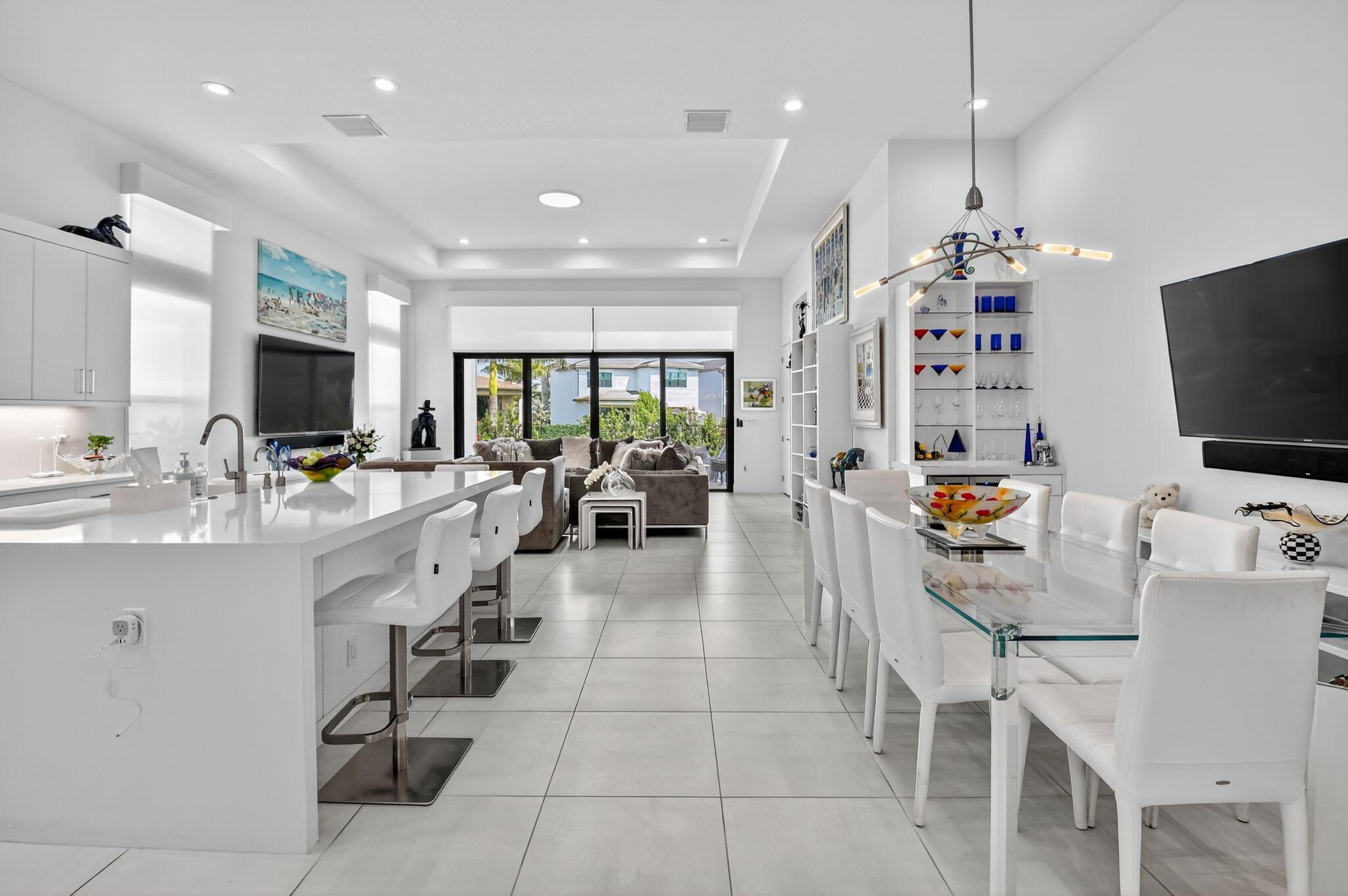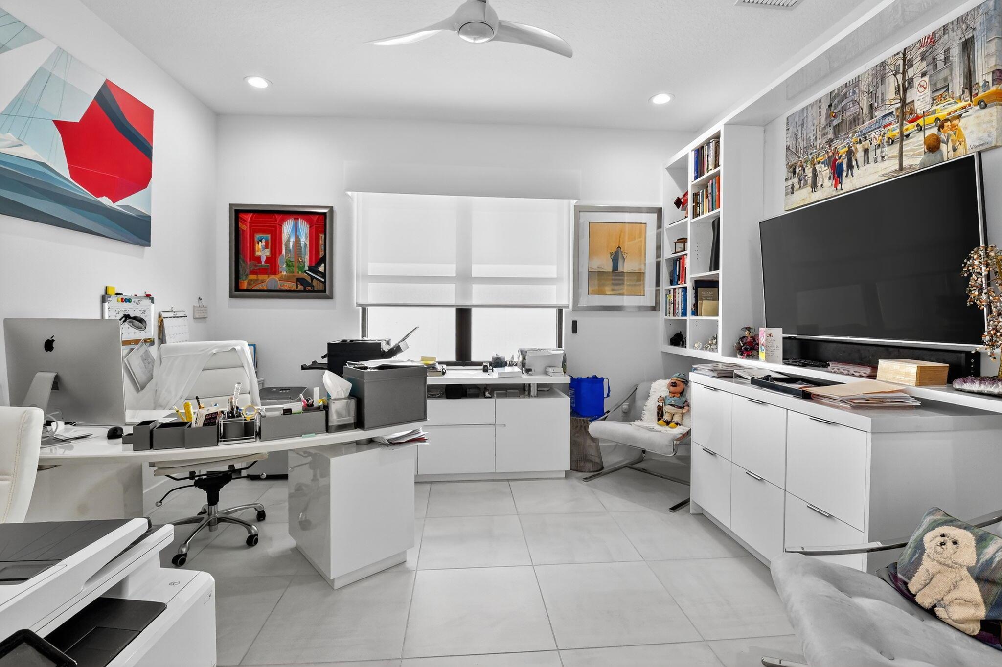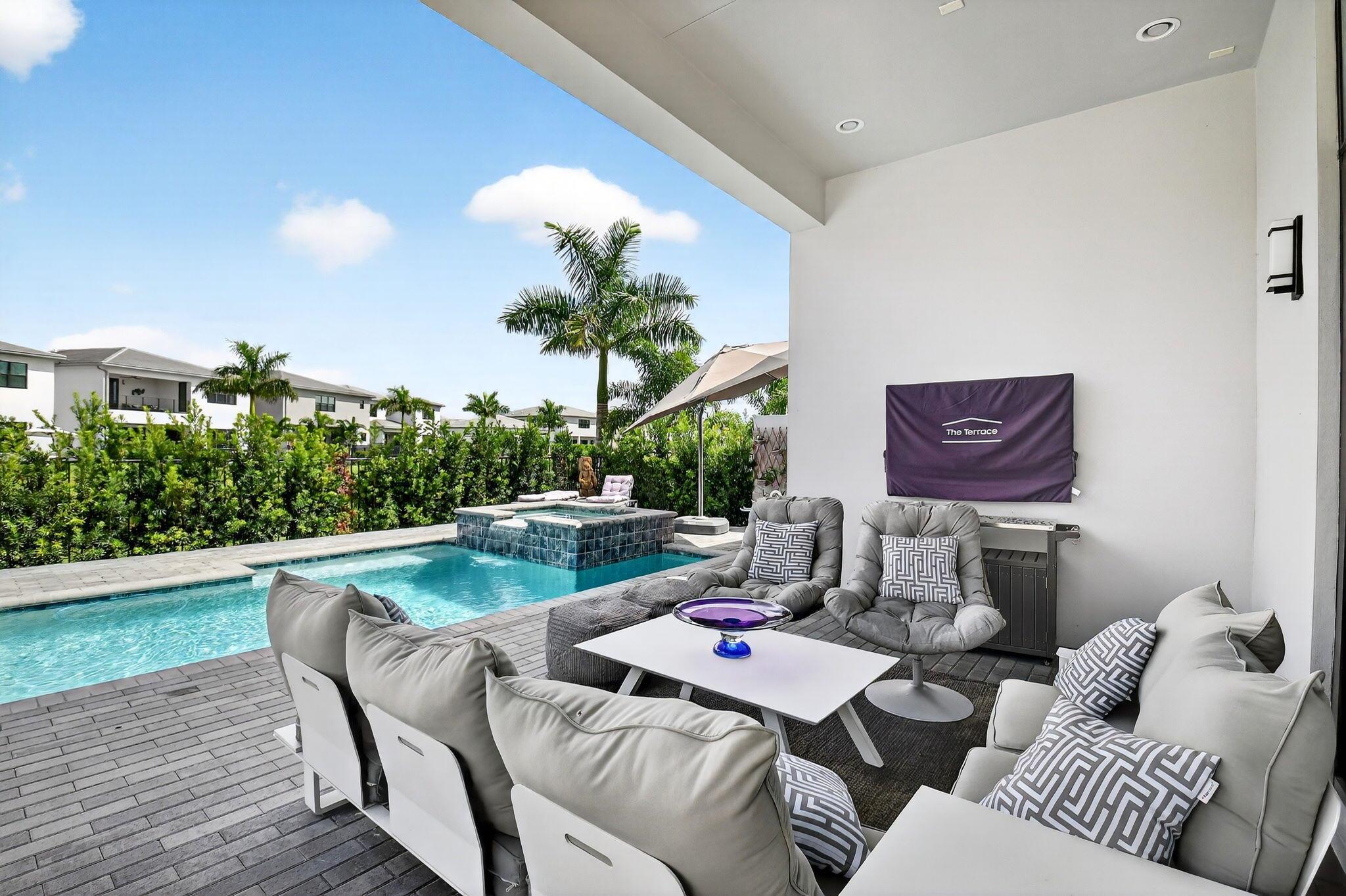 Beautifully decorated one-story, 3-bedroom + office home with quiet lake views in Lotus Palm! Barely lived-in Bermuda model complete with designer window treatments, electric shades throughout, and full-house generator. The interior is light, bright, and open. Eat-in kitchen features an extended waterfall island, built-in coffee bar, and stainless steel appliances, including a gas cooktop and double ovens. Master suite has 2 large custom walk-in closets, and a master bath with 2 sinks, large shower, custom stand-alone tub, and touchless commode. All guest bedrooms are ensuite with built-out closets. Outside, the backyard features a pool with spa, entertainment area, and stunning lake views. Furniture is negotiable.