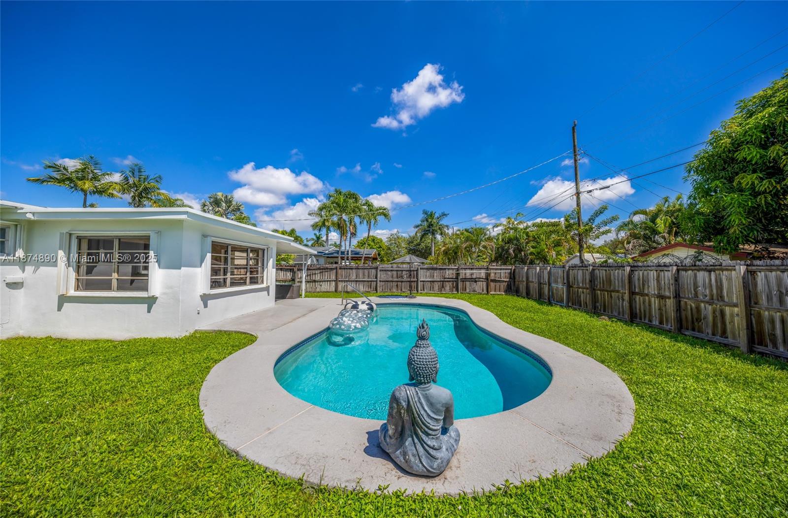 Highly sought-after Hollywood location! Recently updated 3BR/1BA home with a new roof (2023), 2024 electrical panel with whole-home surge protection, 2024 water heater, and New AC (new handler 2020, new compressor 2025). All major systems are covered and under warranty! This move-in ready home features a brand-new modern kitchen with white quartz countertops, backsplash, large pantry with custom cabinetry & laundry room. The open floor plan flows into a bright Florida room overlooking the sparkling pool and covered patio—perfect for entertaining and outdoor dining. Accordion shutters throughout. The 3rd bedroom is currently used as a home office, offering flexibility for your lifestyle. Prime location—minutes to beaches, airport, major highways, hospitals, and local markets.