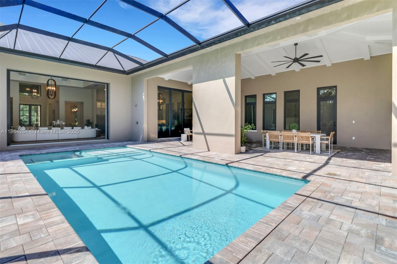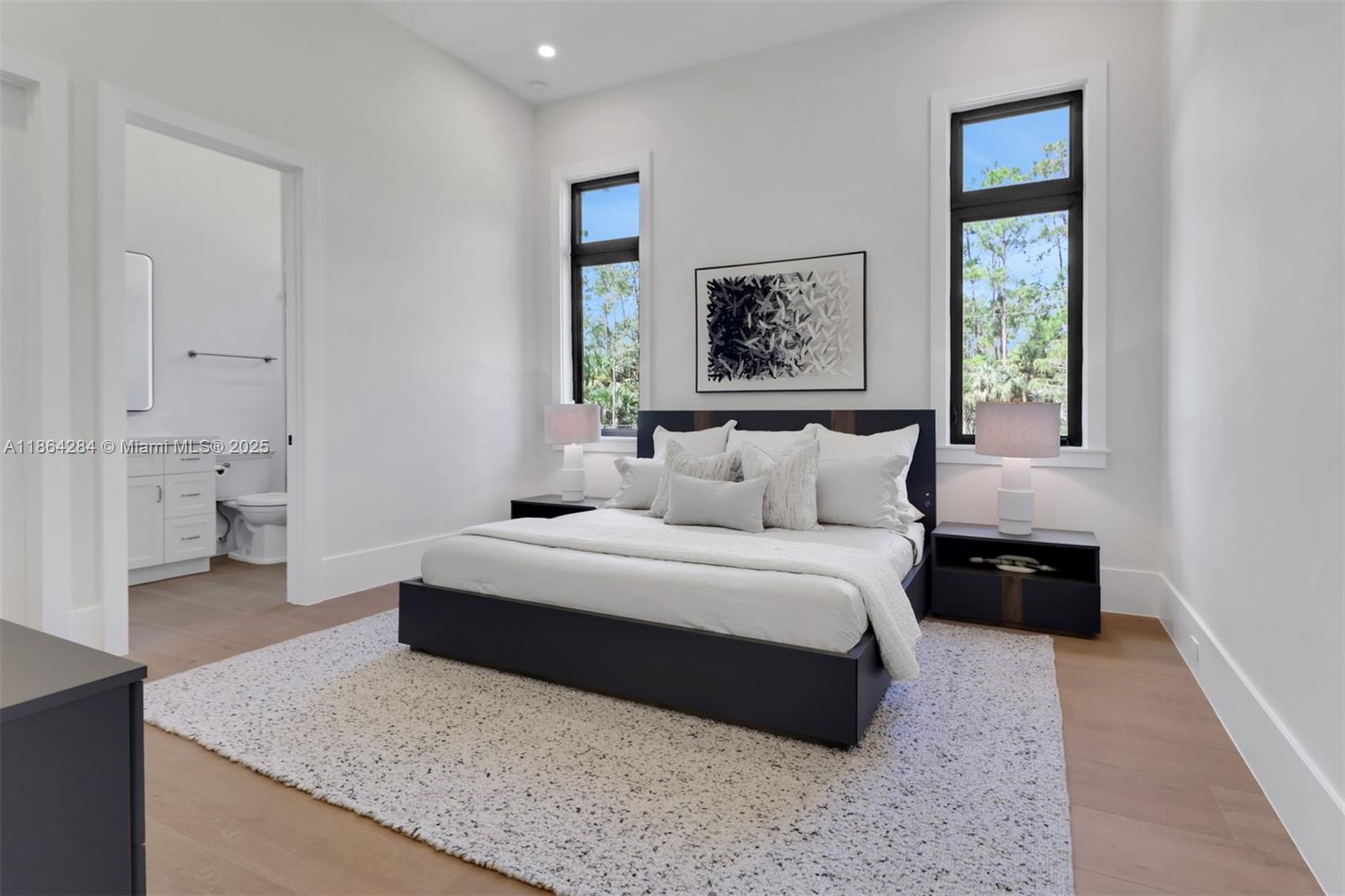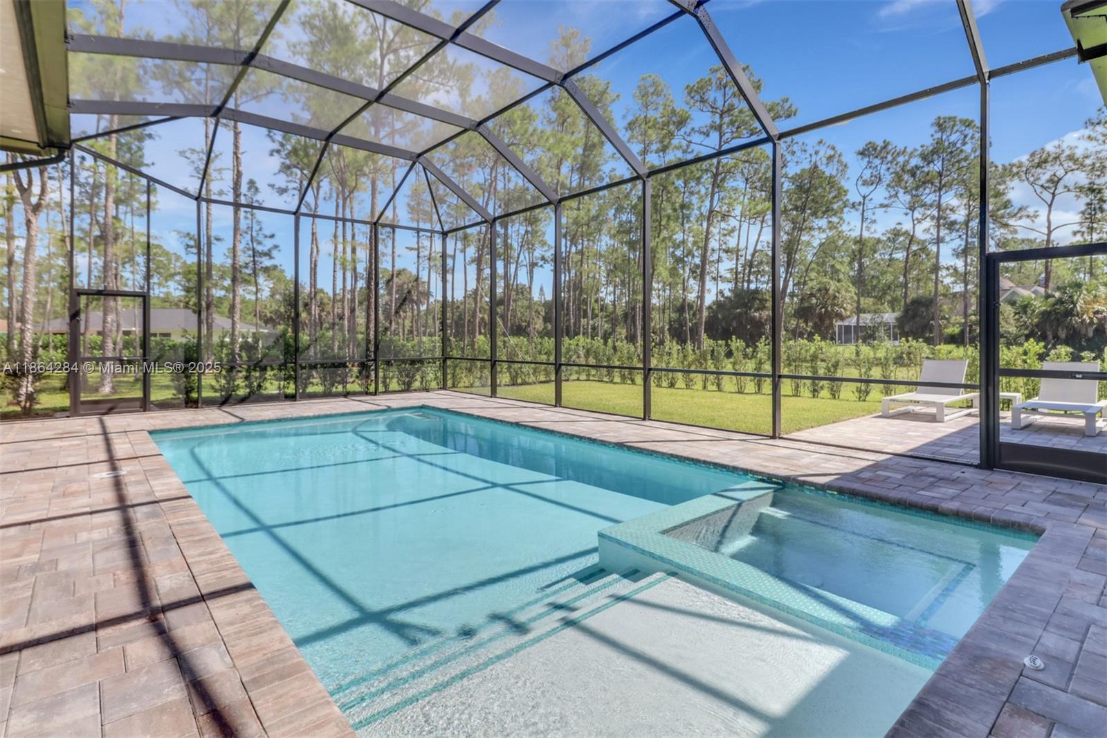 Discover your private retreat in Logan Woods. This new estate sits on nearly 3 acres, offering space, privacy, and a refined Naples lifestyle minutes from beaches, dining, and shopping. The open layout features wood-look porcelain tile, soaring ceilings, and a chef’s kitchen with custom cabinetry, premium appliances, gas stove, walk-in pantry, and spacious island with brass accents. A wet bar with wine fridge adds convenience. The primary suite includes a spa-style bath with soaking tub, dual vanities, double shower, and outdoor shower, while all bedrooms have walk-in closets and en-suites. Outdoors, enjoy a screened living area with summer kitchen, fireplace, and sparkling pool.
