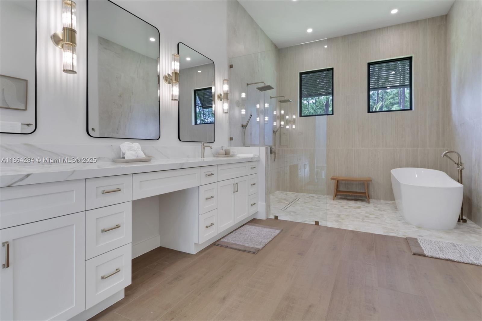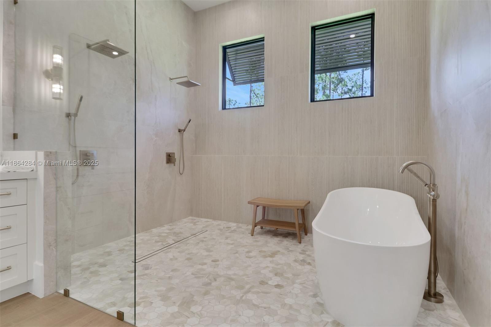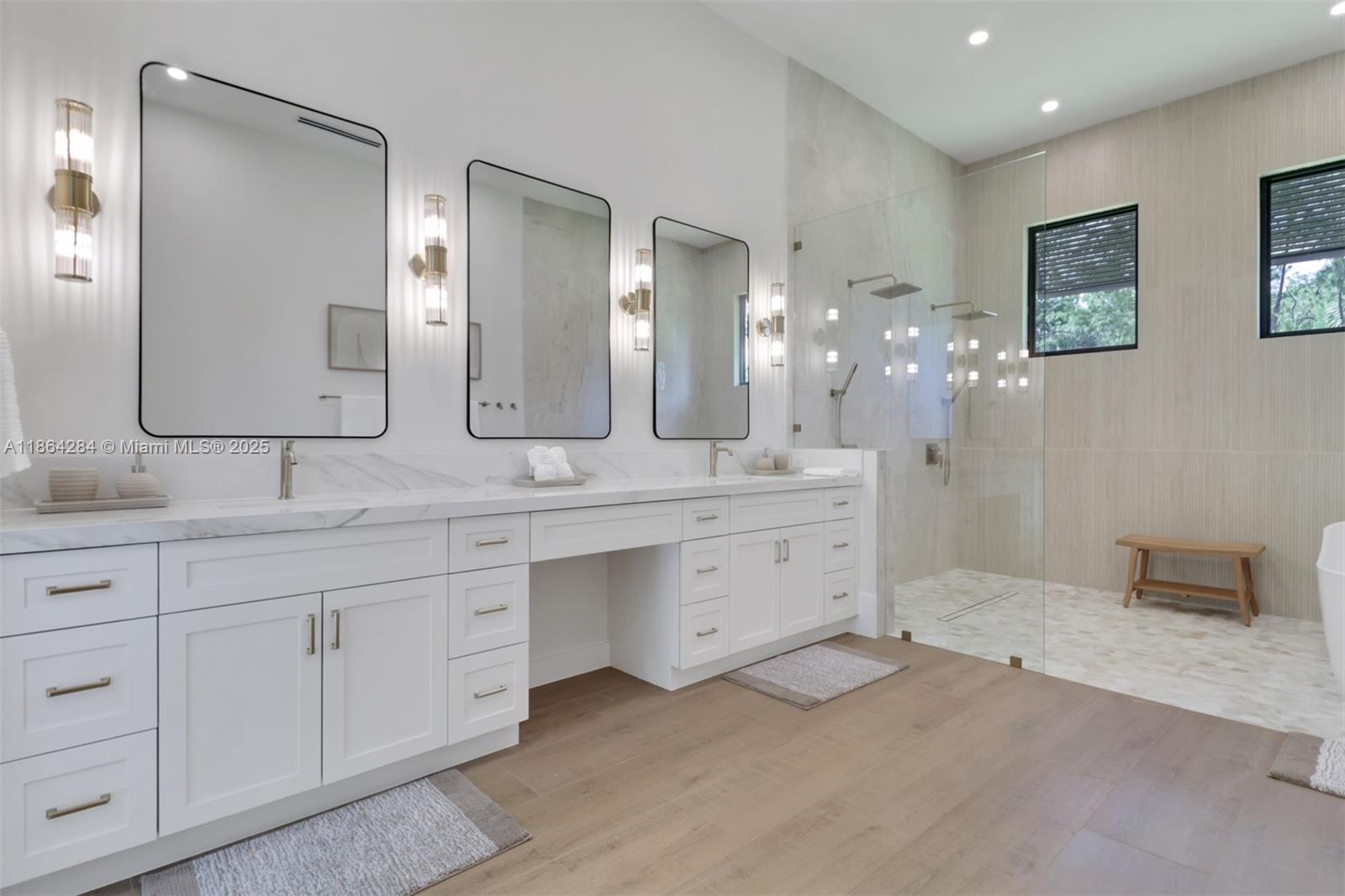 Discover your private retreat in Logan Woods. This new estate sits on nearly 3 acres, offering space, privacy, and a refined Naples lifestyle minutes from beaches, dining, and shopping. The open layout features wood-look porcelain tile, soaring ceilings, and a chef’s kitchen with custom cabinetry, premium appliances, gas stove, walk-in pantry, and spacious island with brass accents. A wet bar with wine fridge adds convenience. The primary suite includes a spa-style bath with soaking tub, dual vanities, double shower, and outdoor shower, while all bedrooms have walk-in closets and en-suites. Outdoors, enjoy a screened living area with summer kitchen, fireplace, and sparkling pool.