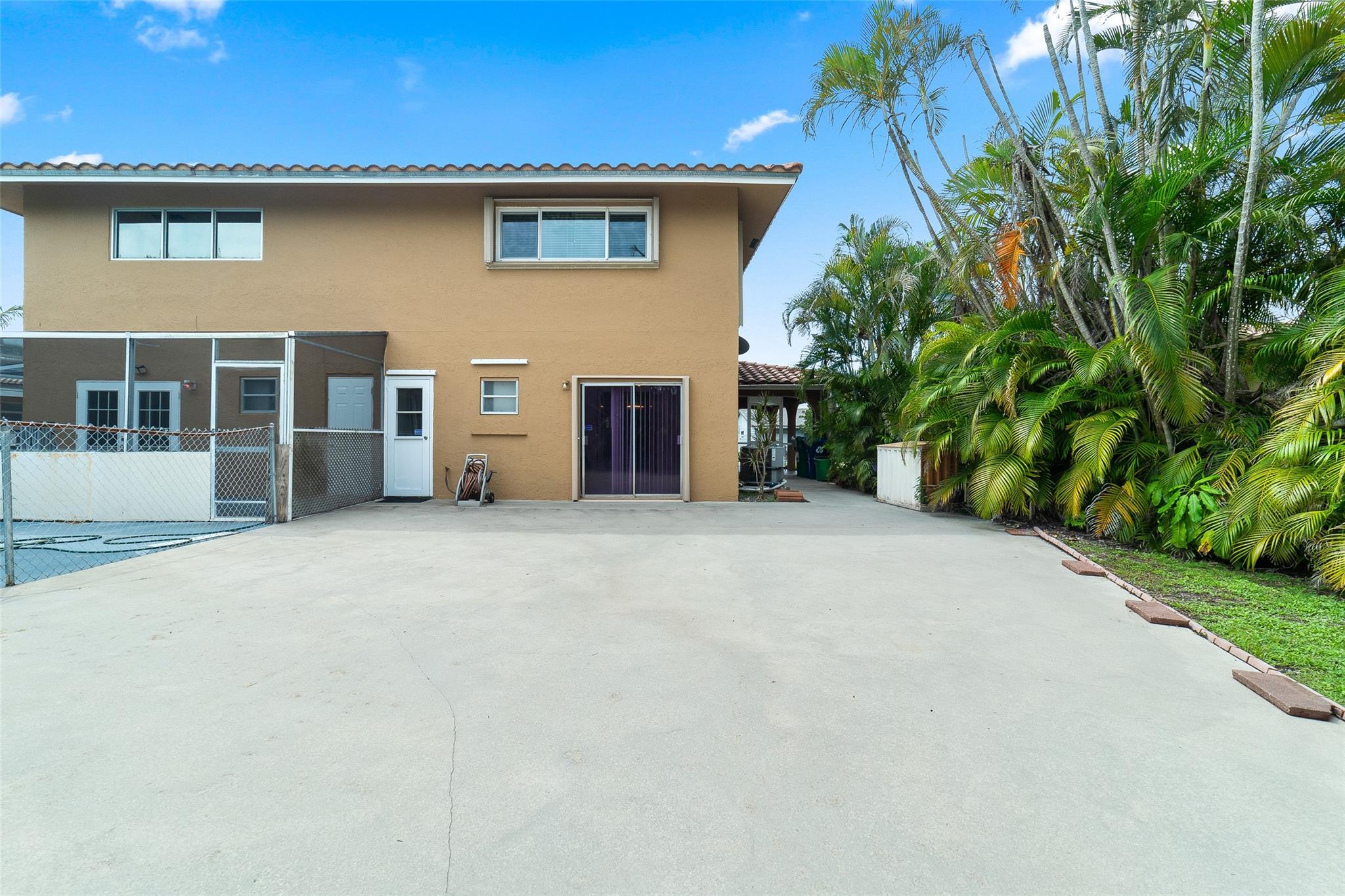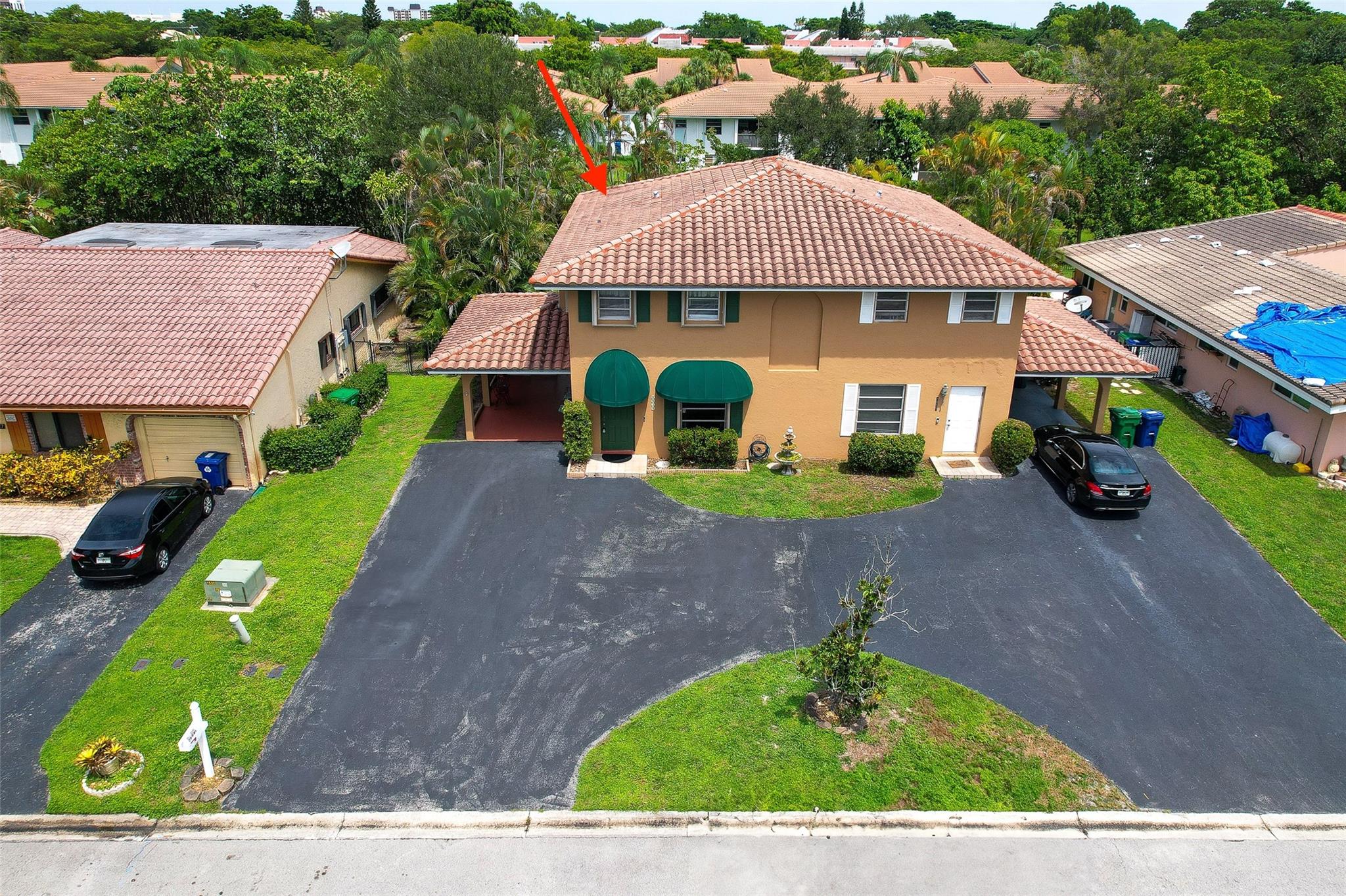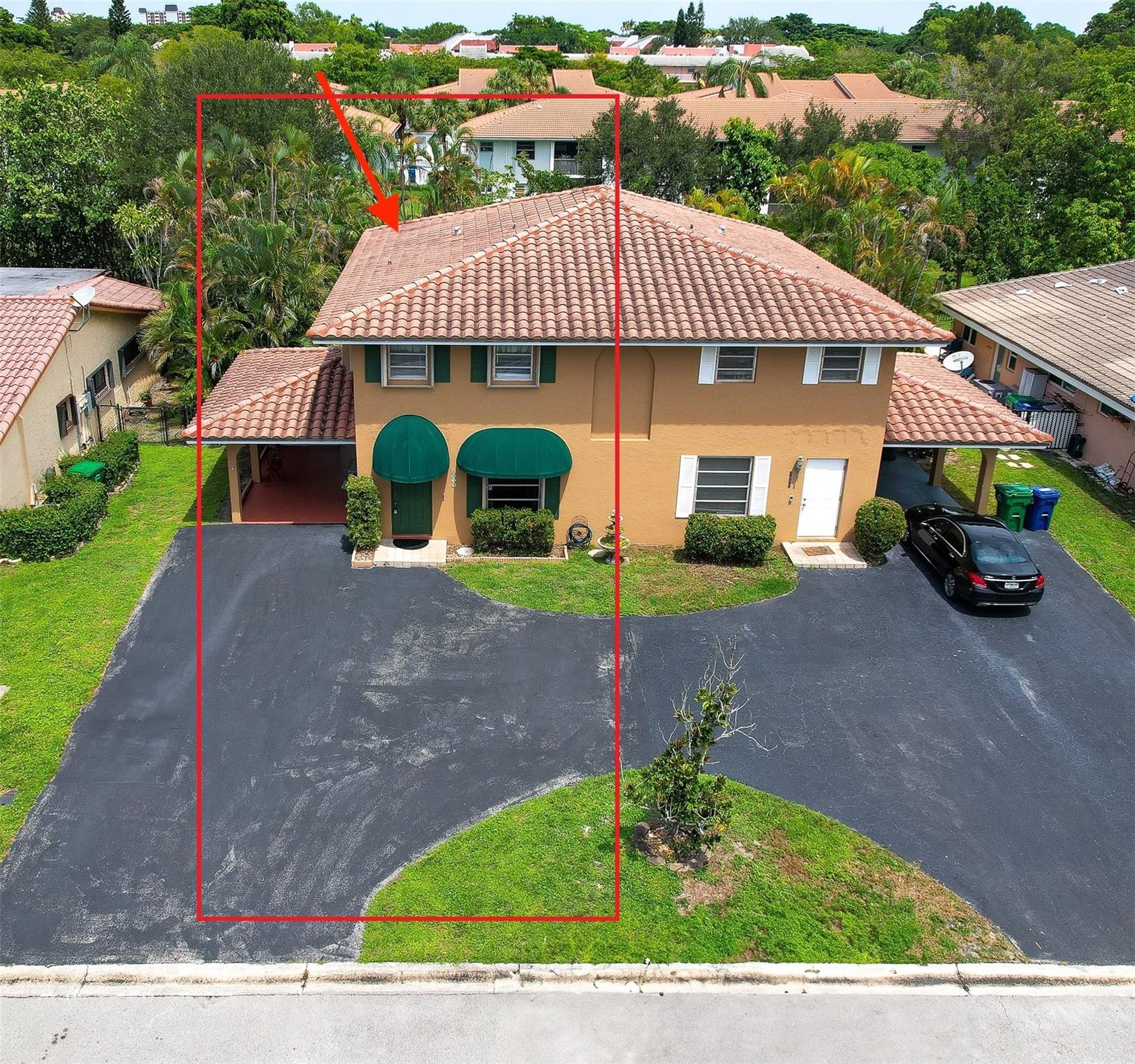 Old-world charmer offering 3 bedrooms and 3 bathrooms with inviting spaces throughout. The kitchen provides abundant storage, tile flooring, and easy access to a spacious dining area. A long driveway allows for extra parking or use of the attached carport, currently serving as a covered patio. The main floor bedroom features private access, while the upstairs primary and secondary bedrooms each include their own ensuite for comfort and privacy. Additional highlights include in-unit laundry, full hurricane coverage with impact windows and accordion shutters, plus a fenced backyard large enough for a pool or perfect for relaxing and entertaining. No HOA/Shared wall agreement. Mortgage savings may be available for buyers of this listing.