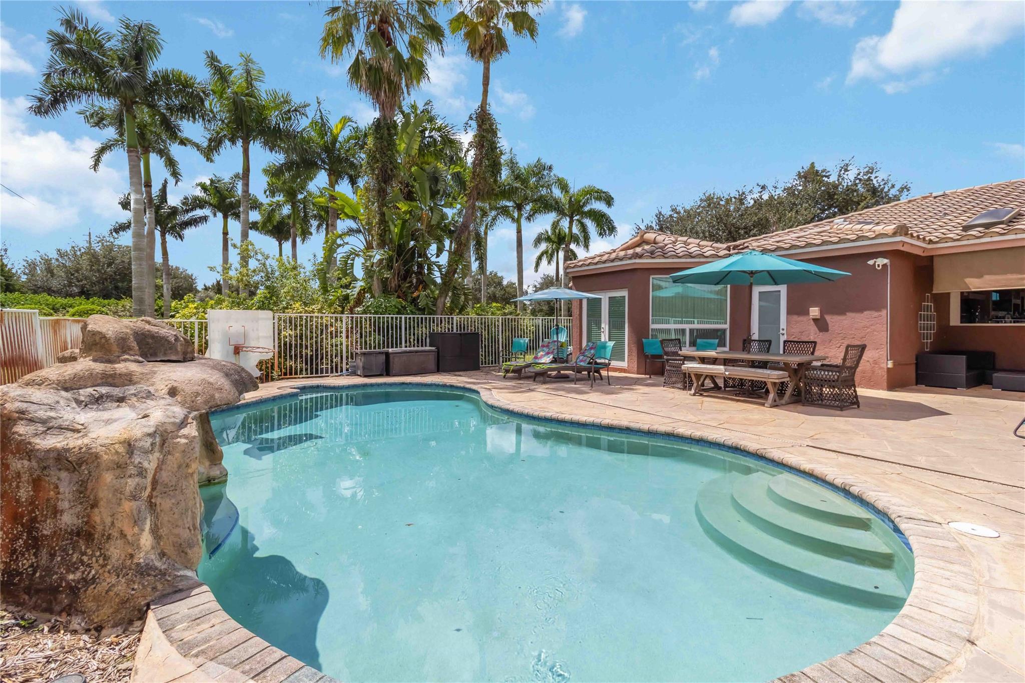 Nestled in a picturesque community of just 99 custom built homes and lined with oak trees, this spacious 4 bed 3.5 bath corner builders acre lot pool home is the perfect blend of comfort, charm & location. Enjoy an open floor plan designed for both everyday living and entertaining. The home features impact windows & doors, wet shower w/ soaking tub, updated kitchen shaker cabinets with quartz counters, Kitchen Aid appliances, large pantry with coffee bar, entertainment area with wet bar, surround sound inside and out, ring cameras and alarm, dual AC, rachio sprinkler, vaulted ceilings, covered patio & cabana bath, ideal for Florida’s indoor-outdoor lifestyle. Located near everything just minutes from beaches, Sawgrass Mall, Hard Rock & more.