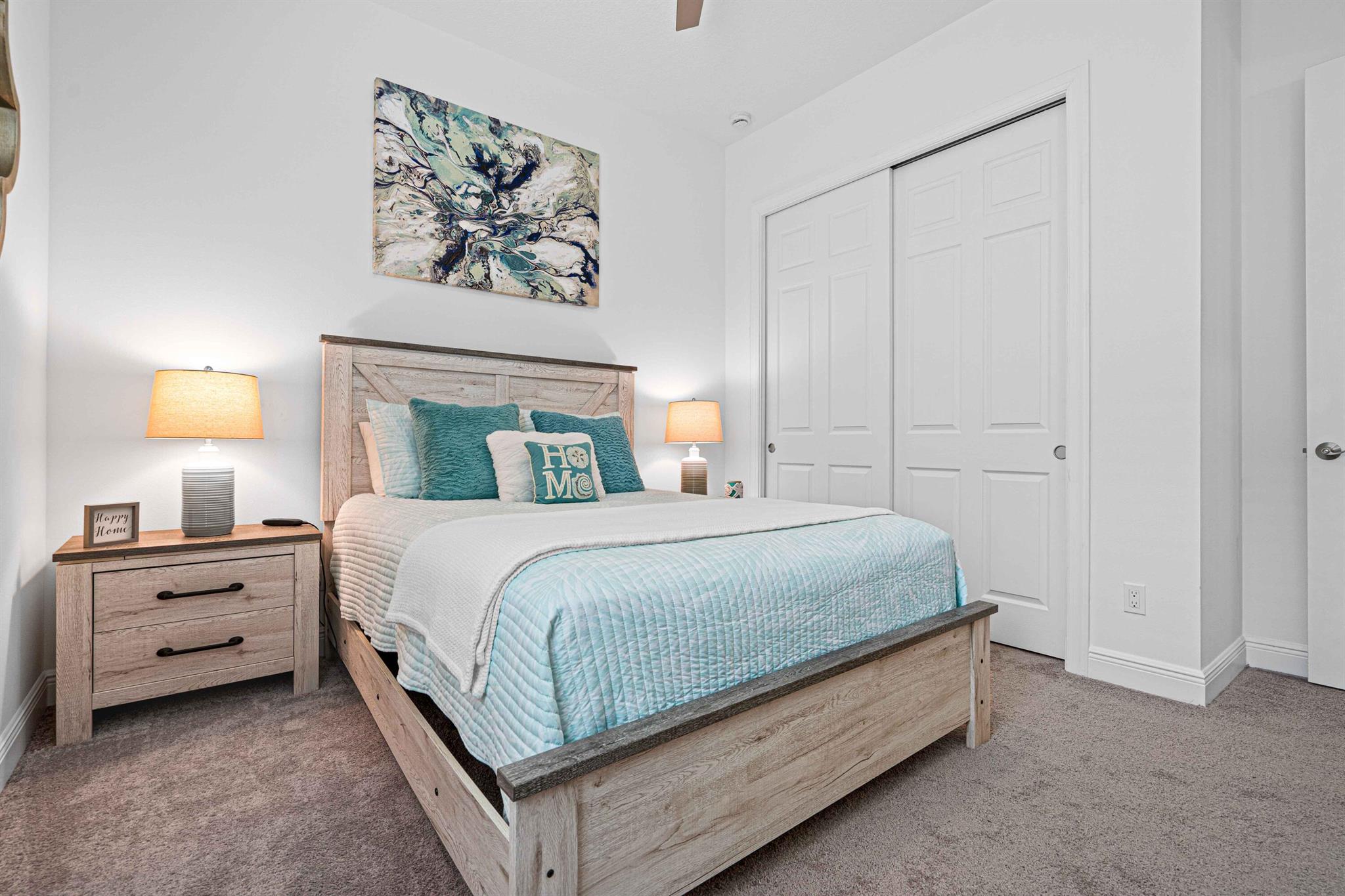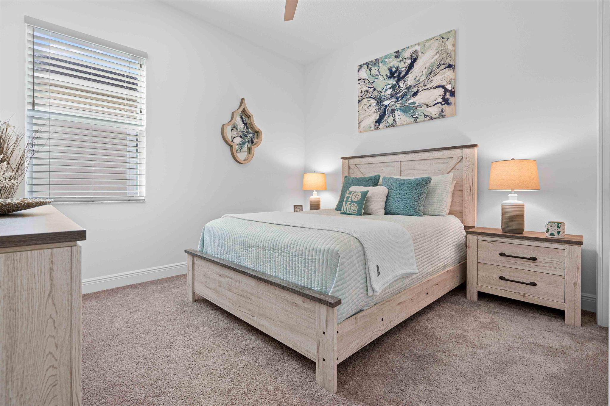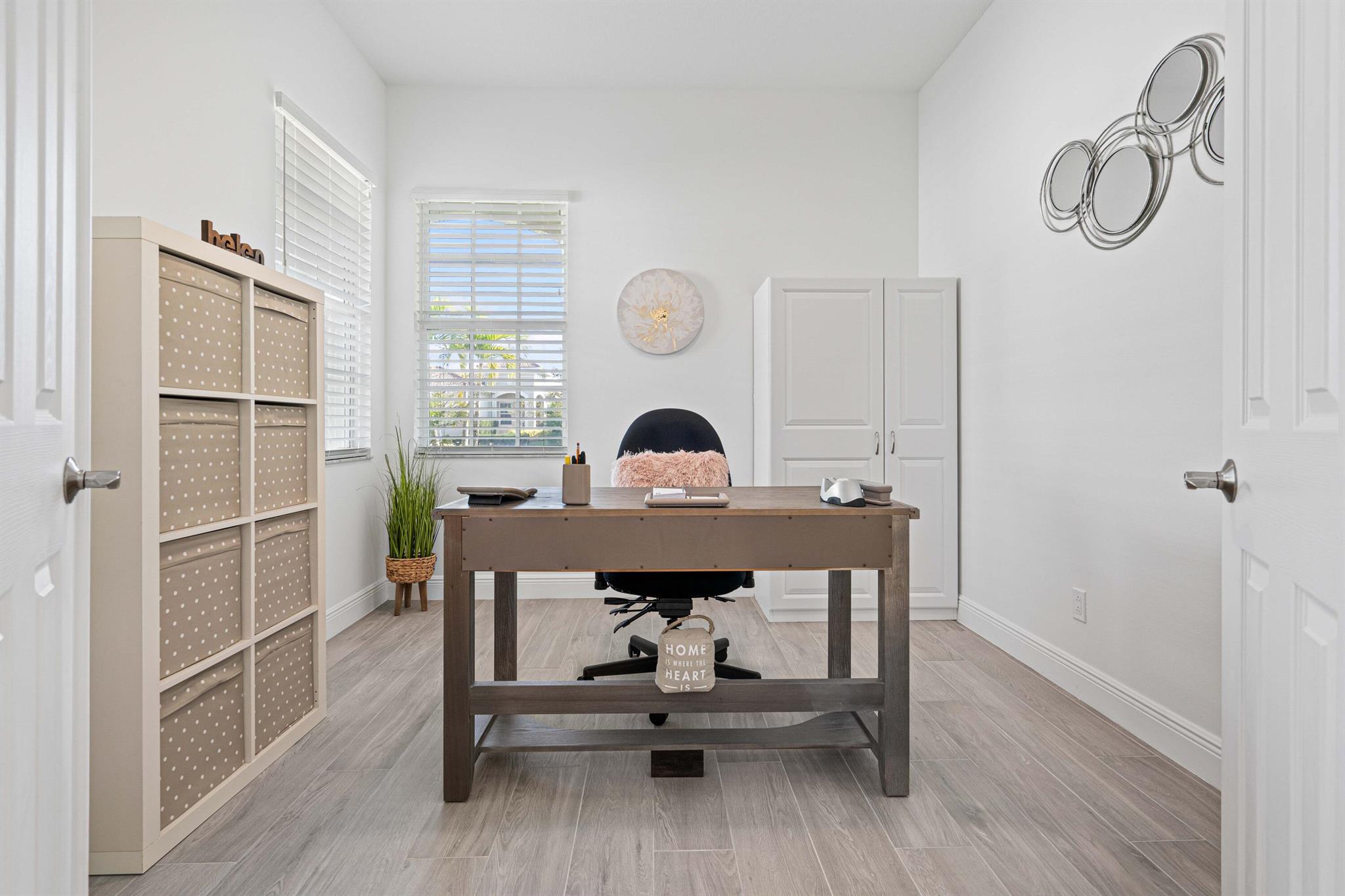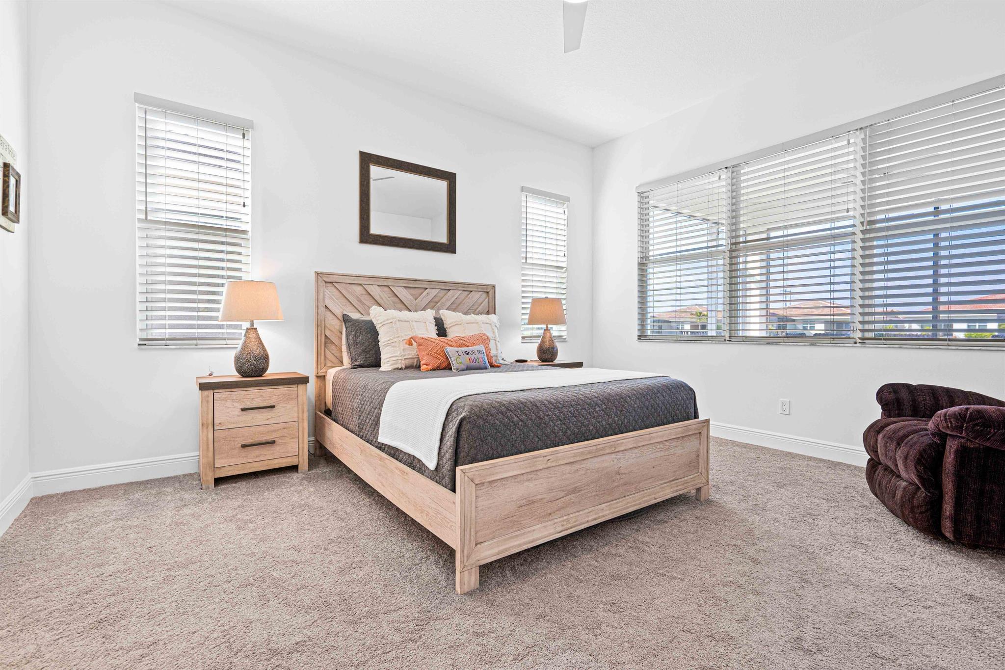 Waterfront 'Casita' Model in Verano PGA Village. Discover lakefront living in this well maintained 2 BR's, 2 BA's, plus large den/office & 2 car garage with epoxy flooring. Laundry room featuring cabinets and utility sink. Built with CBS construction, Barrel tile roof, hurricane impact windows and doors. Volume ceilings & tile in main areas. The open kitchen is a chef's dream, showcasing quartz countertops, a glass backsplash, stainless steel appliances (new refrigerator), 42'' soft-close cabinets, a breakfast bar, island & pantry. The spacious master suite includes a walk-in closet, dual sinks and a seamless glass shower, while the split floor plan ensures privacy. Beautiful Tranquil lake views includes screen enclosed lanai & spacious fenced backyard. ONE YEAR HOME WARRANTY INCLUDED!!