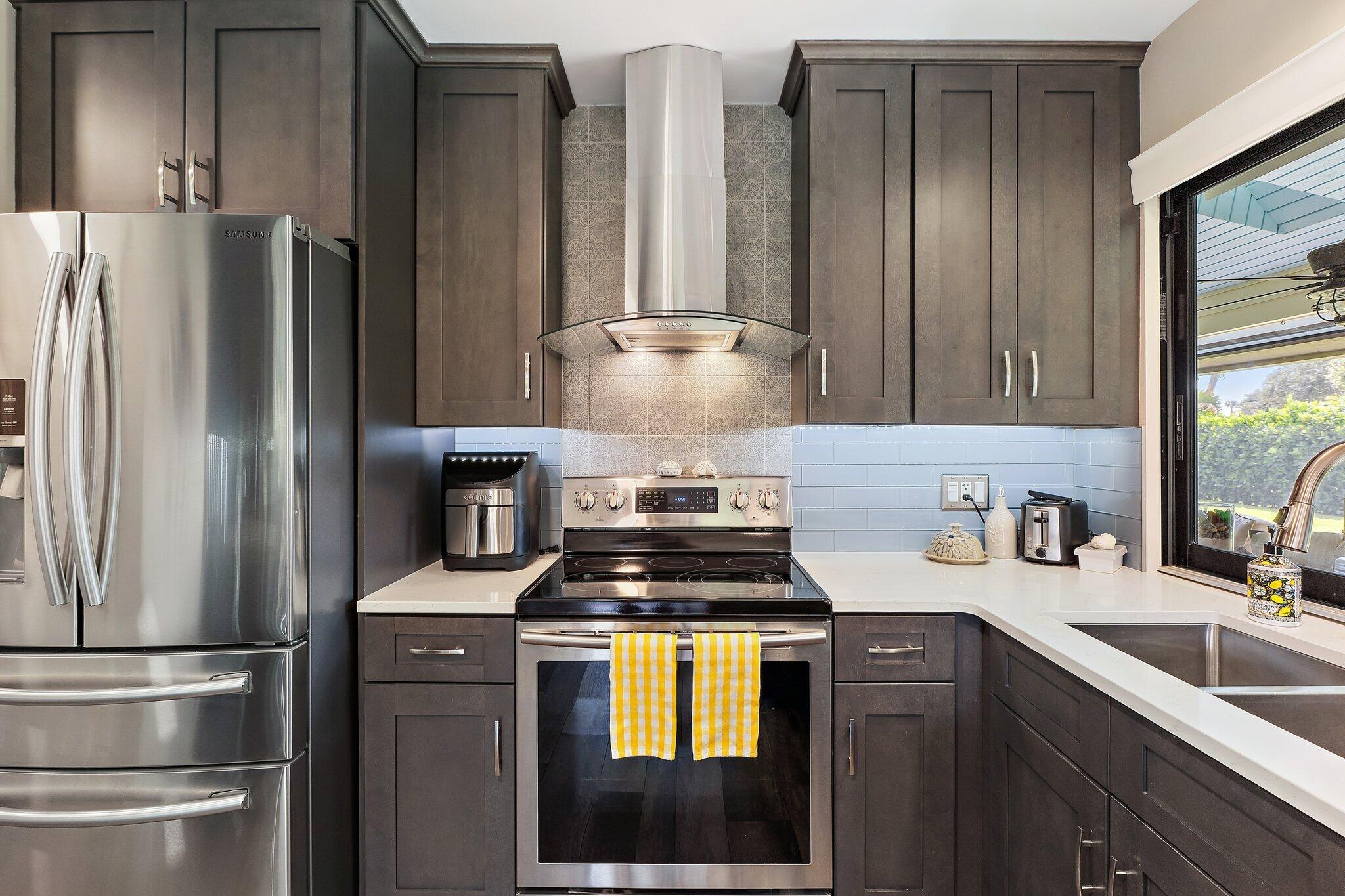 This charming Key West-style residence features three bedrooms, two bathrooms, and a spacious two-car garage. Nestled in a tranquil neighborhood surrounded by natural beauty, it's the ideal retreat for those who enjoy an active, outdoor lifestyle.Inside, the open-concept design creates a welcoming atmosphere, with the living, dining, and kitchen areas flowing seamlessly together. Expansive windows and sliding glass doors invite in abundant natural light. The newly renovated kitchen boasts sleek stainless-steel appliances, an abundance of high-end cabinetry, and expansive counter space. Designed with both style and function in mind, it's perfect for everyday meals as well as entertaining. A modern fume hood and thoughtful finishes complete the space.