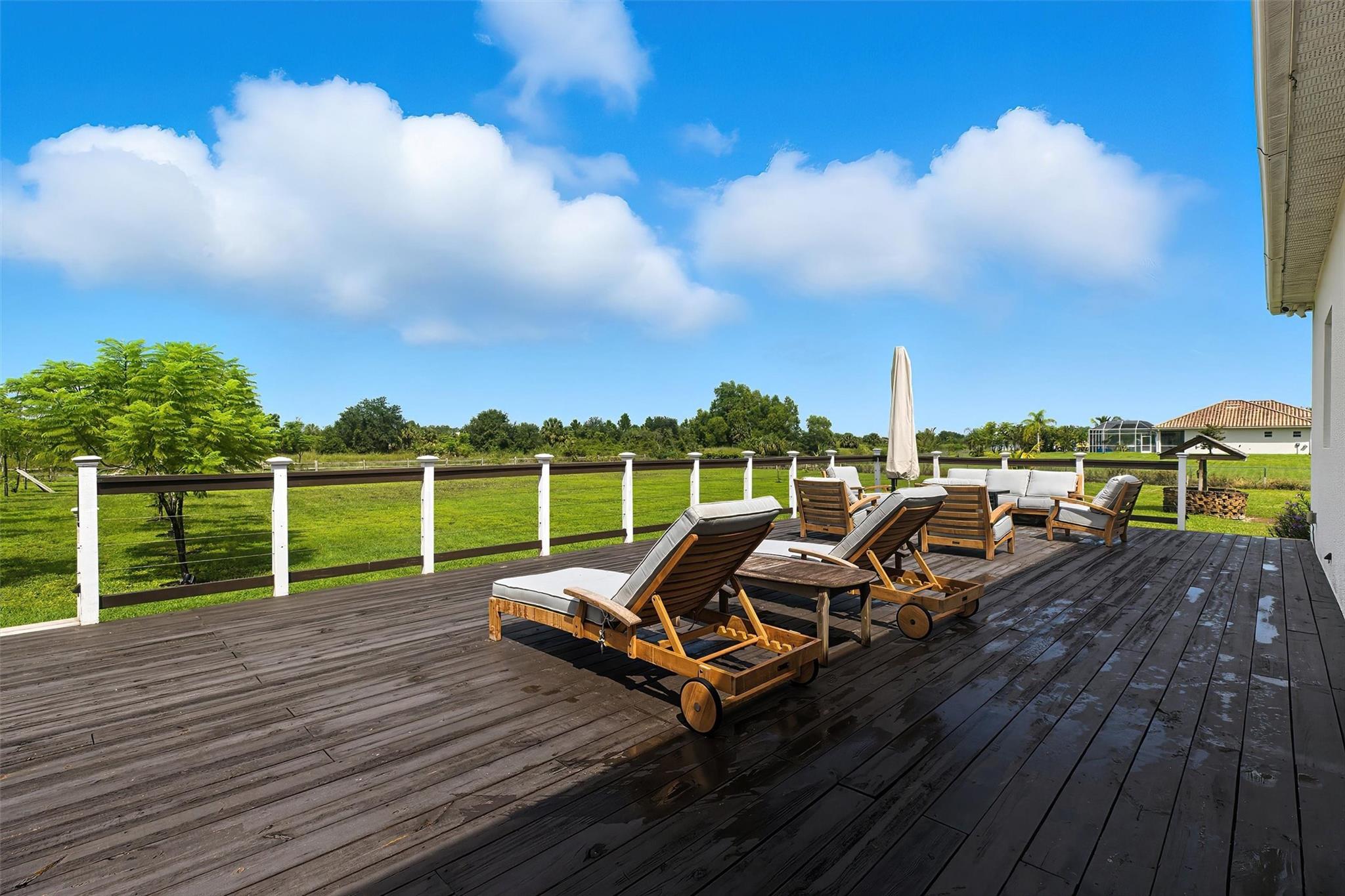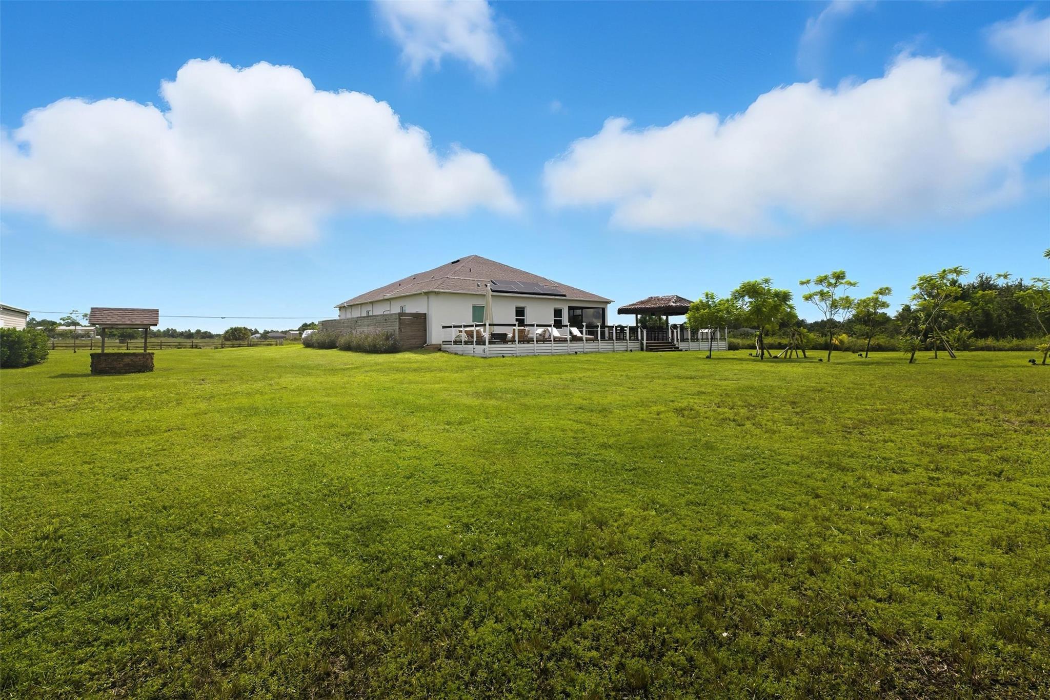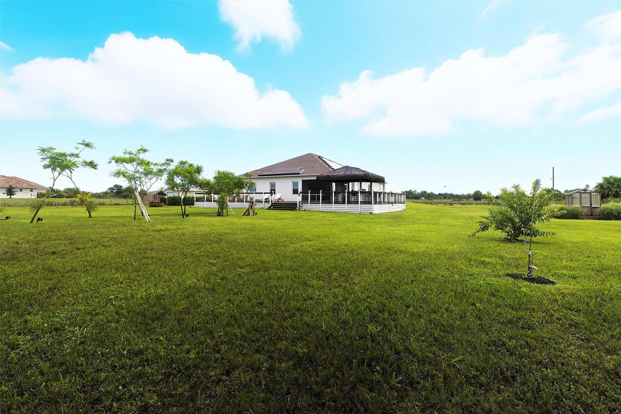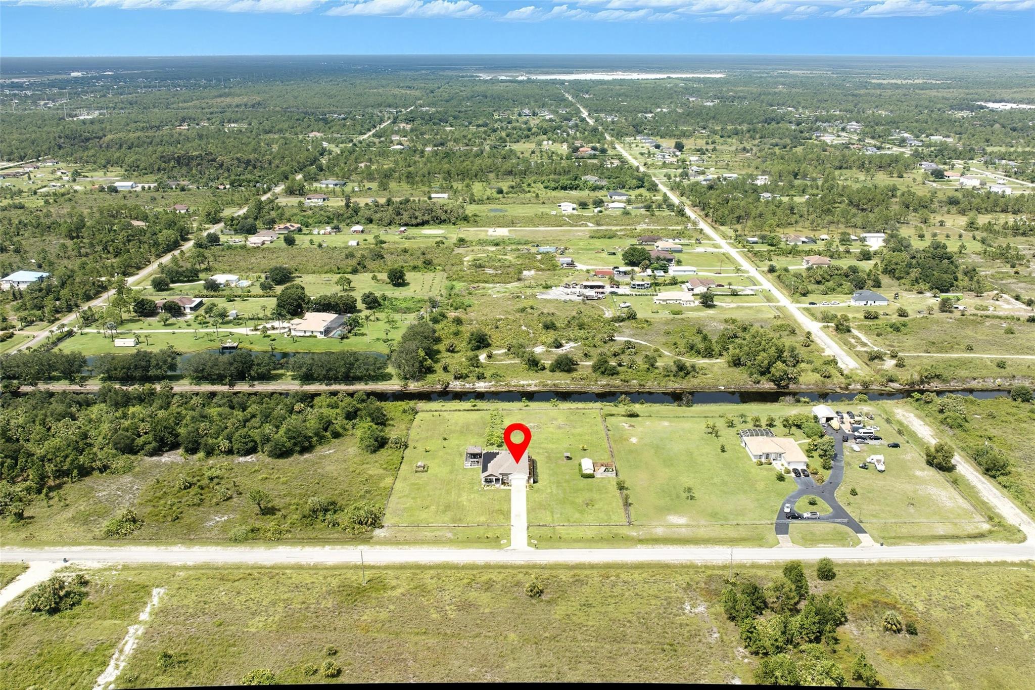 Gorgeous, 3 bed 2 bath + office/den canal front home on over 2 1/4 acres. Impact windows & doors Wood look tile throughout w/ modern farmhouse design. Kitchen boasts designer walk-in pantry & large island w/ storage. Great room has a stunning wood accent wall to match the oven hood in the kitchen. Master bedroom w/ huge walk-in closet w/built ins. Master bathroom has double vanity & walk-in power tub. Enjoy the 1800 sq ft deck w/ bar & outdoor kitchen featuring 2 grills, griddle, 2 mini fridges, wine fridge & two TVs. Organic insect misting system. Full solar power w/ 2 Tesla Power Cell Battery back ups. Aquasana water purifying system. Tankless water heater. Halo in-duct air purifier. Garage has AC split, insulated door & ceiling, storage racks & cabinets. Gigantic shed w/tons of storage.