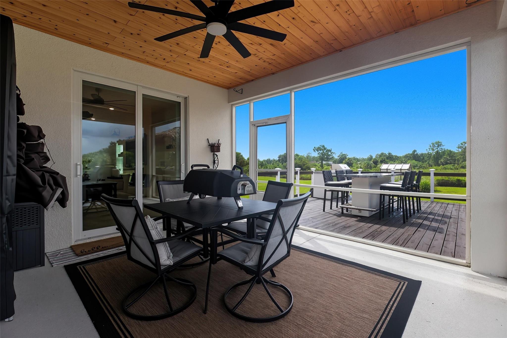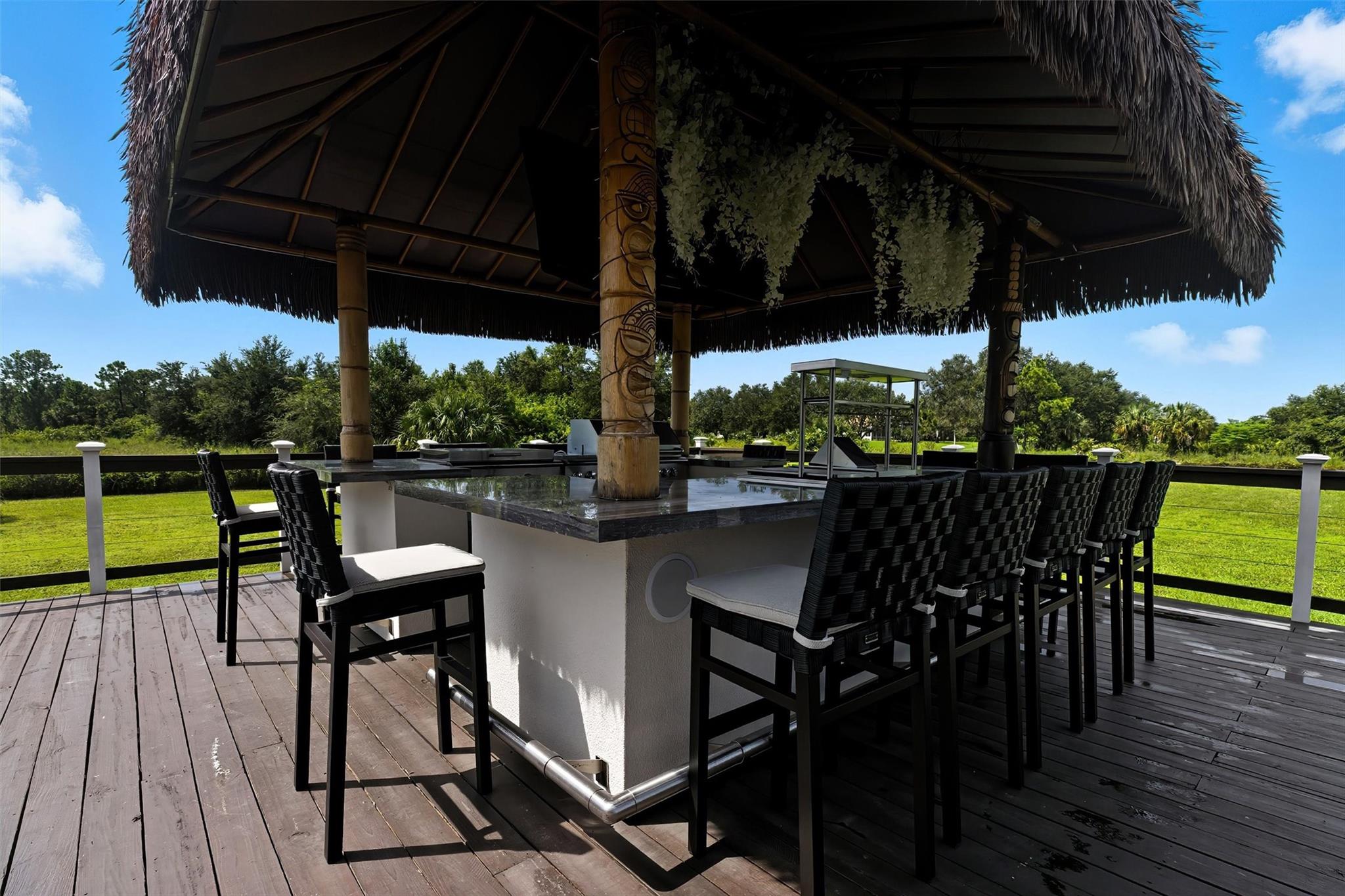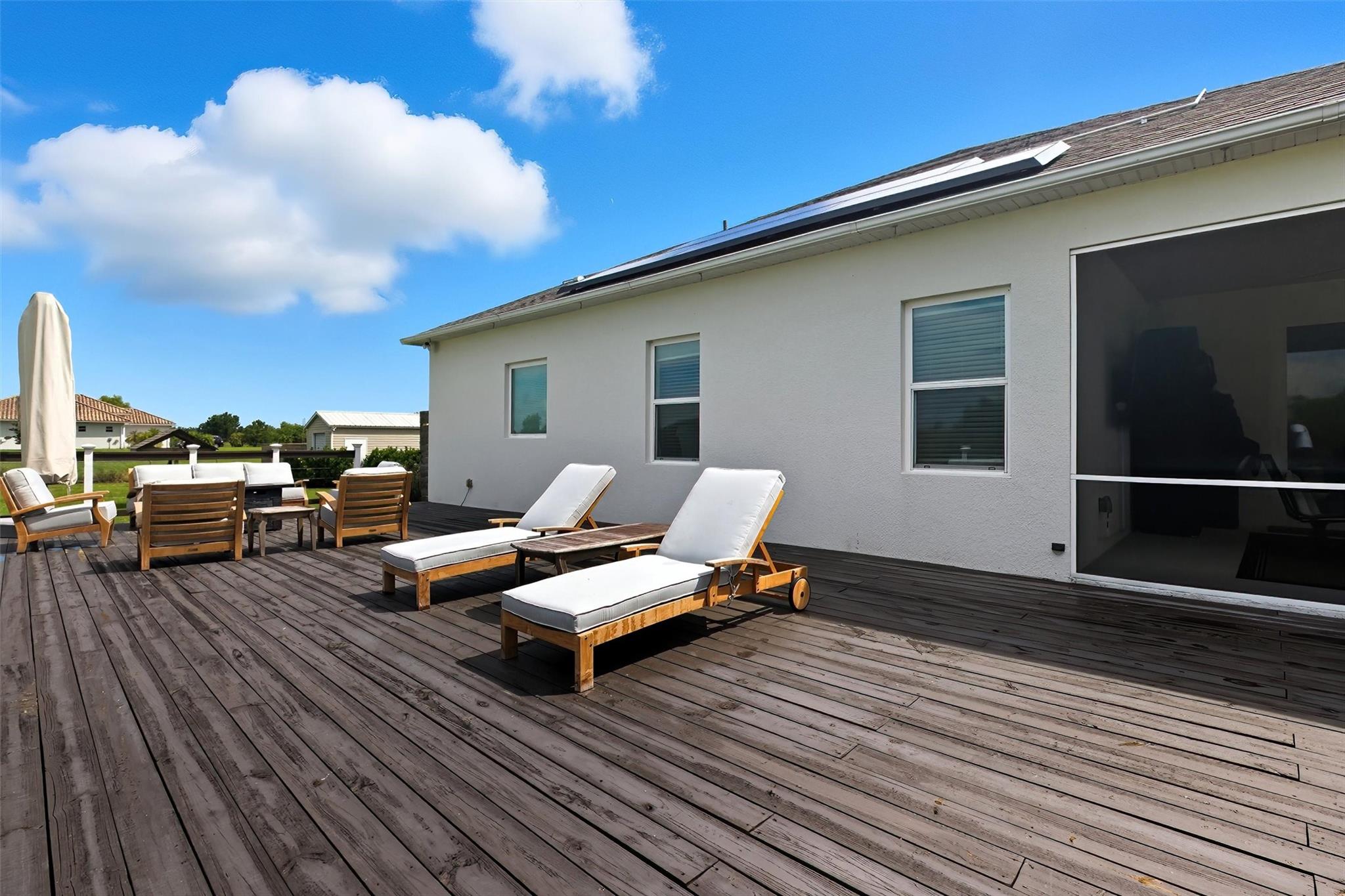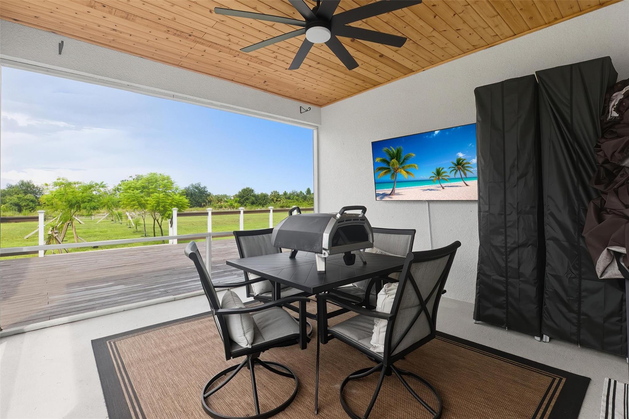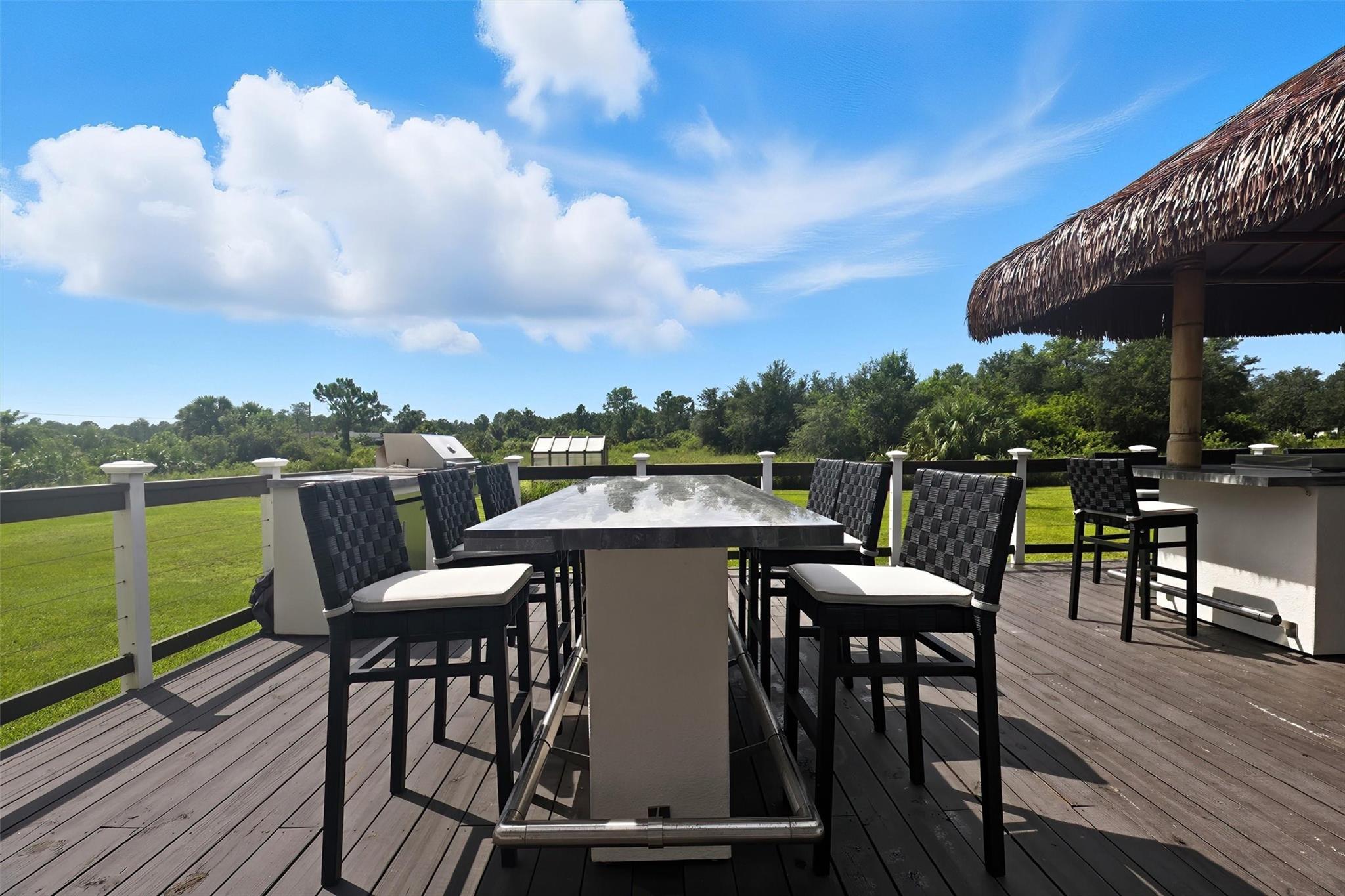 Gorgeous, 3 bed 2 bath + office/den canal front home on over 2 1/4 acres. Impact windows & doors Wood look tile throughout w/ modern farmhouse design. Kitchen boasts designer walk-in pantry & large island w/ storage. Great room has a stunning wood accent wall to match the oven hood in the kitchen. Master bedroom w/ huge walk-in closet w/built ins. Master bathroom has double vanity & walk-in power tub. Enjoy the 1800 sq ft deck w/ bar & outdoor kitchen featuring 2 grills, griddle, 2 mini fridges, wine fridge & two TVs. Organic insect misting system. Full solar power w/ 2 Tesla Power Cell Battery back ups. Aquasana water purifying system. Tankless water heater. Halo in-duct air purifier. Garage has AC split, insulated door & ceiling, storage racks & cabinets. Gigantic shed w/tons of storage.