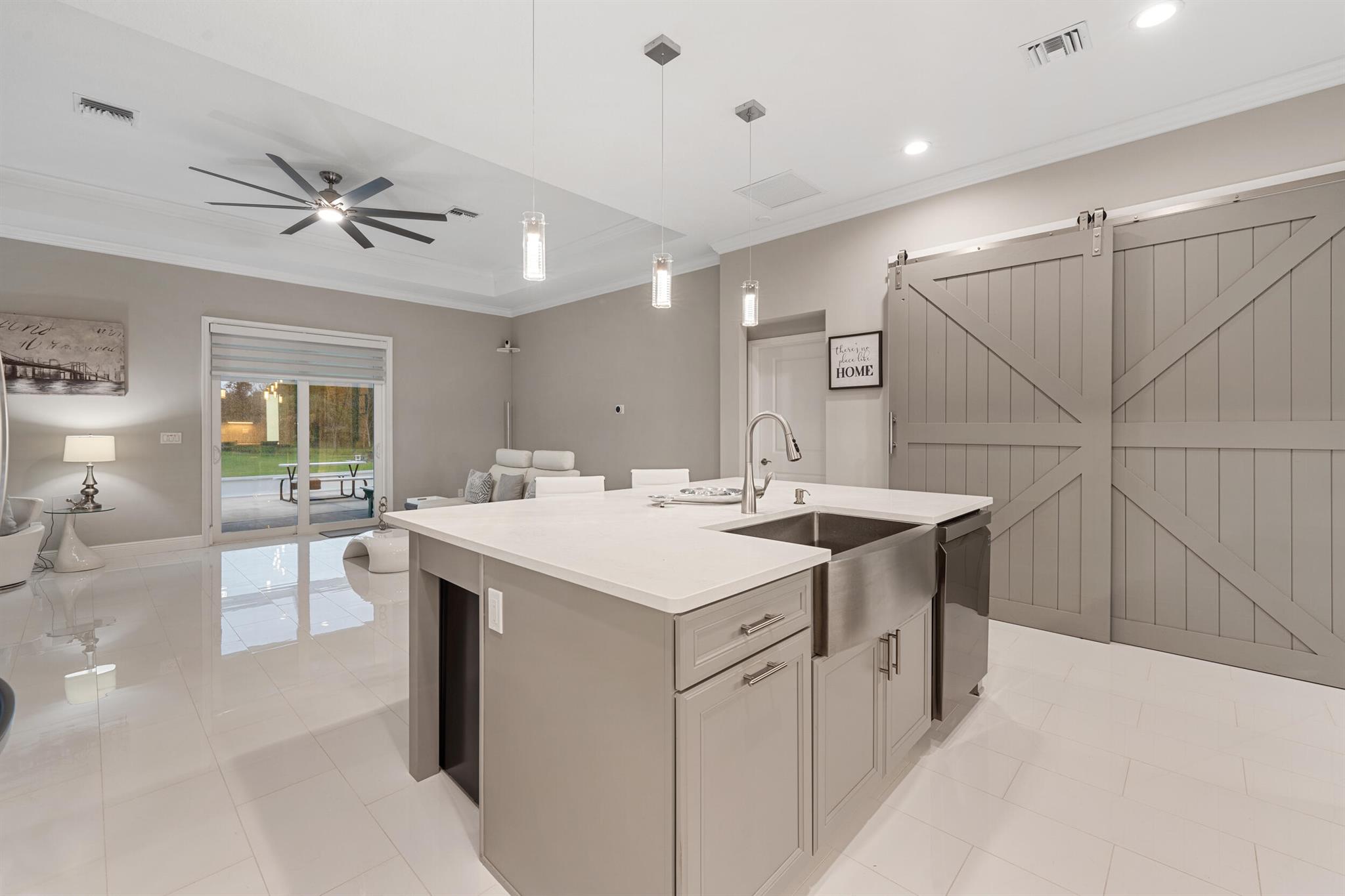Here is a pristine 2022 custom CBS home situated on 5 acres in the upscale ranchette community of Bridlewood Ranches. This 3-bedroom, 2.5-bath residence spans over 2300sqft under air, boasting marble floors throughout, a formal dining room and a quartzite-finished open kitchen with island just off the home's formal living area. The expansive master suite, approximately 700sqft, features a walk-in closet, dual vanities, a soaking tub, and a marble stone shower. On the guest side of the home, you'll find the 2nd and 3rd oversized bedrooms, 1 & 1/2 bath and laundry room. Enjoy the peaceful country sunsets and wildlife viewing, including deer and turkey, from your new screened porch. Also a separate RV parking area with hookups and garden shed is included.
