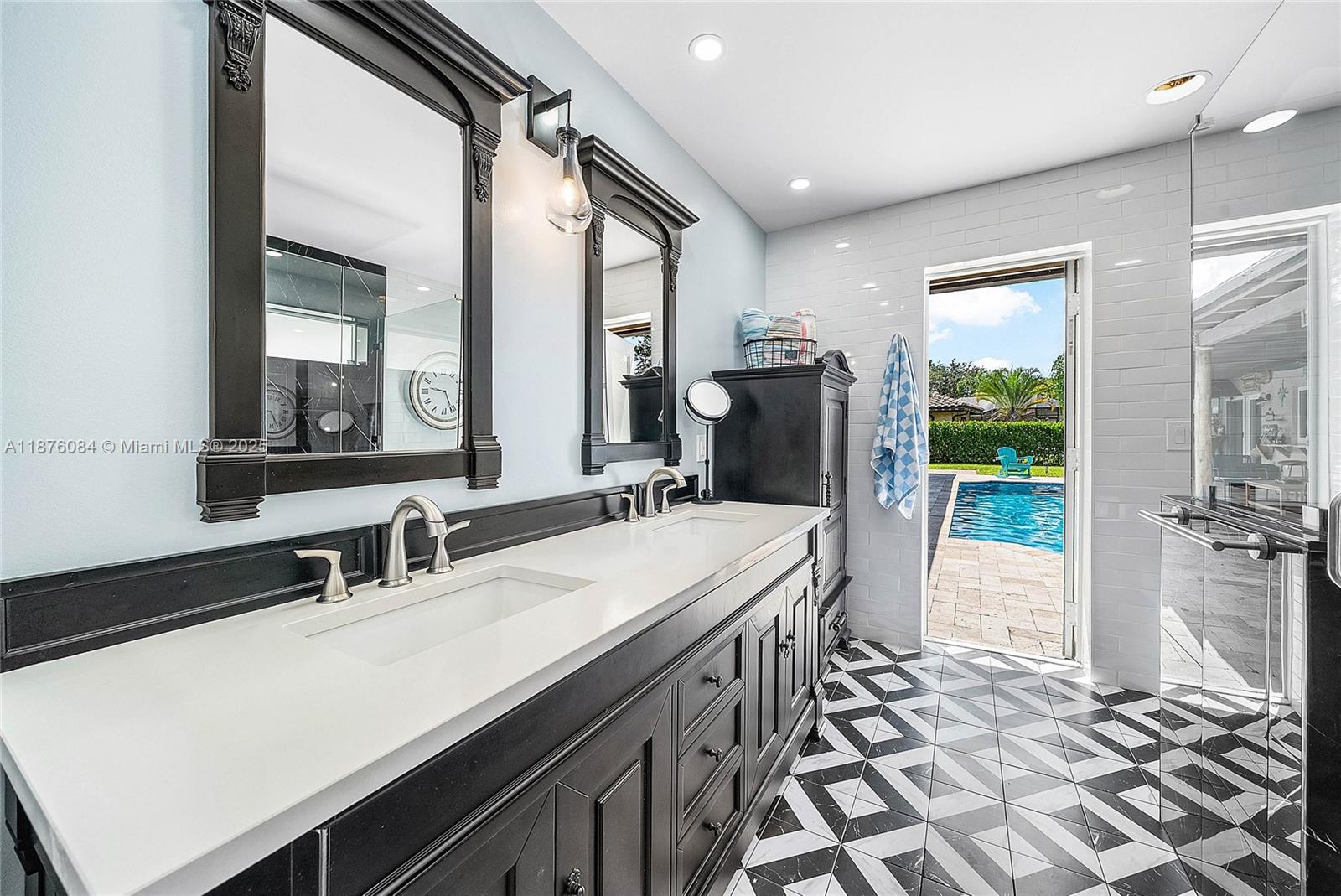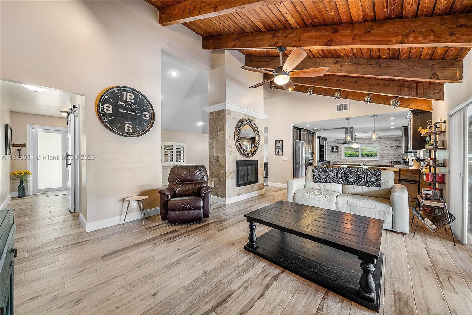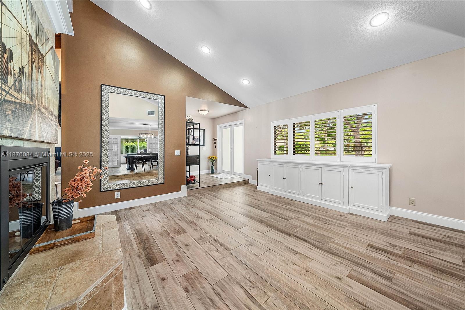 Imagine having everything you ever wished for in a house, and then seeing that house available to you right now. Come up the circular driveway and notice the brickwork, the tile roof, the granite along the front porch, the Euro front door, and you feel like you’re somewhere in the Mediterranean. Inside, the family room features porcelain tile flooring, pitched ceilings, and the grandiose travertine-lined double-sided fireplace as a focal point. Next, arrive in the updated kitchen and nook with well-appointed 42” cabinetry “all the way up”, stainless appliances, and an island with electric cooktop, hood vent and custom triple pencil edge granite. The house features 4 full bedrooms + office, with every detail having been updated! But then, the best part awaits you when you step out back...