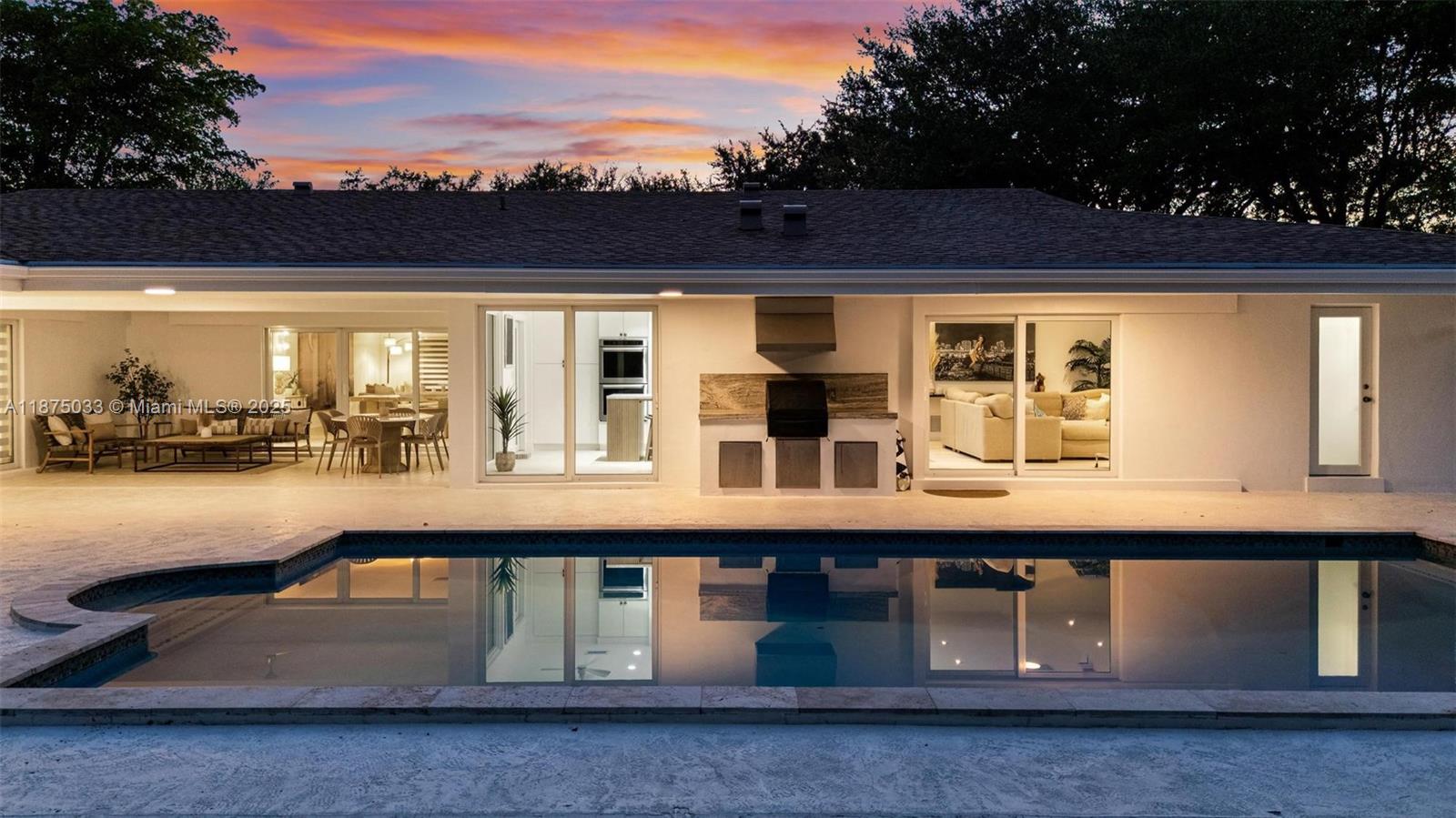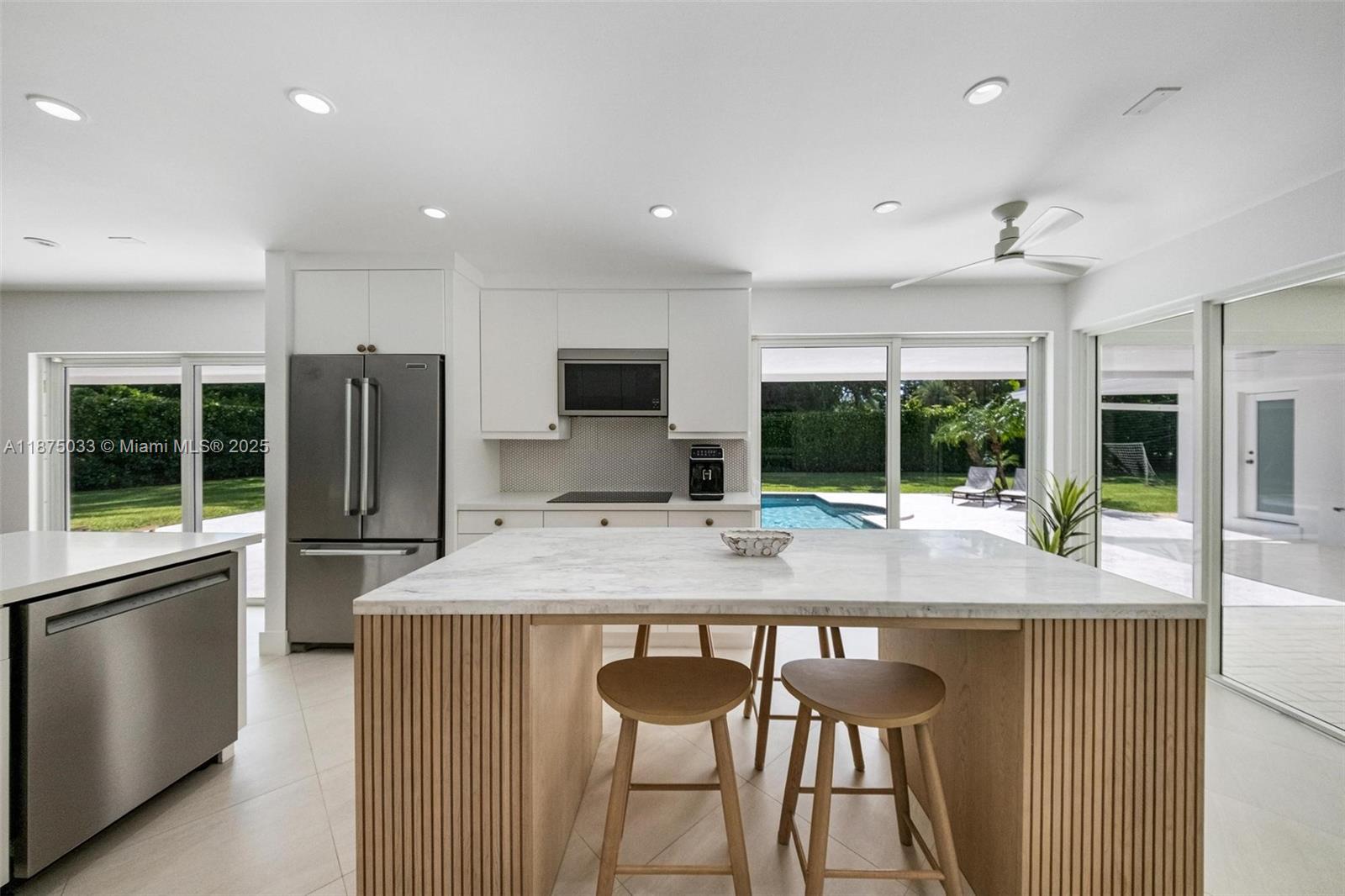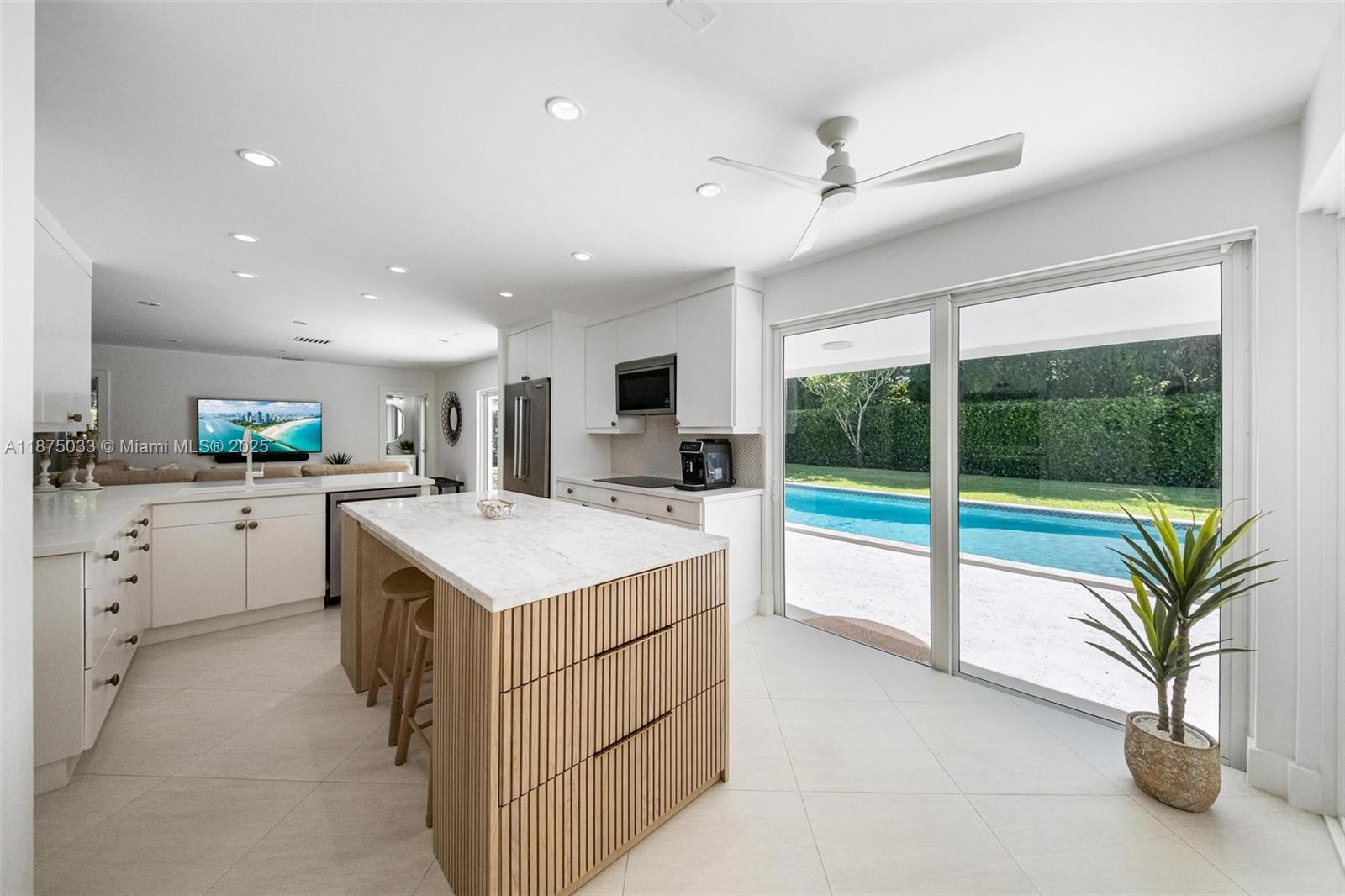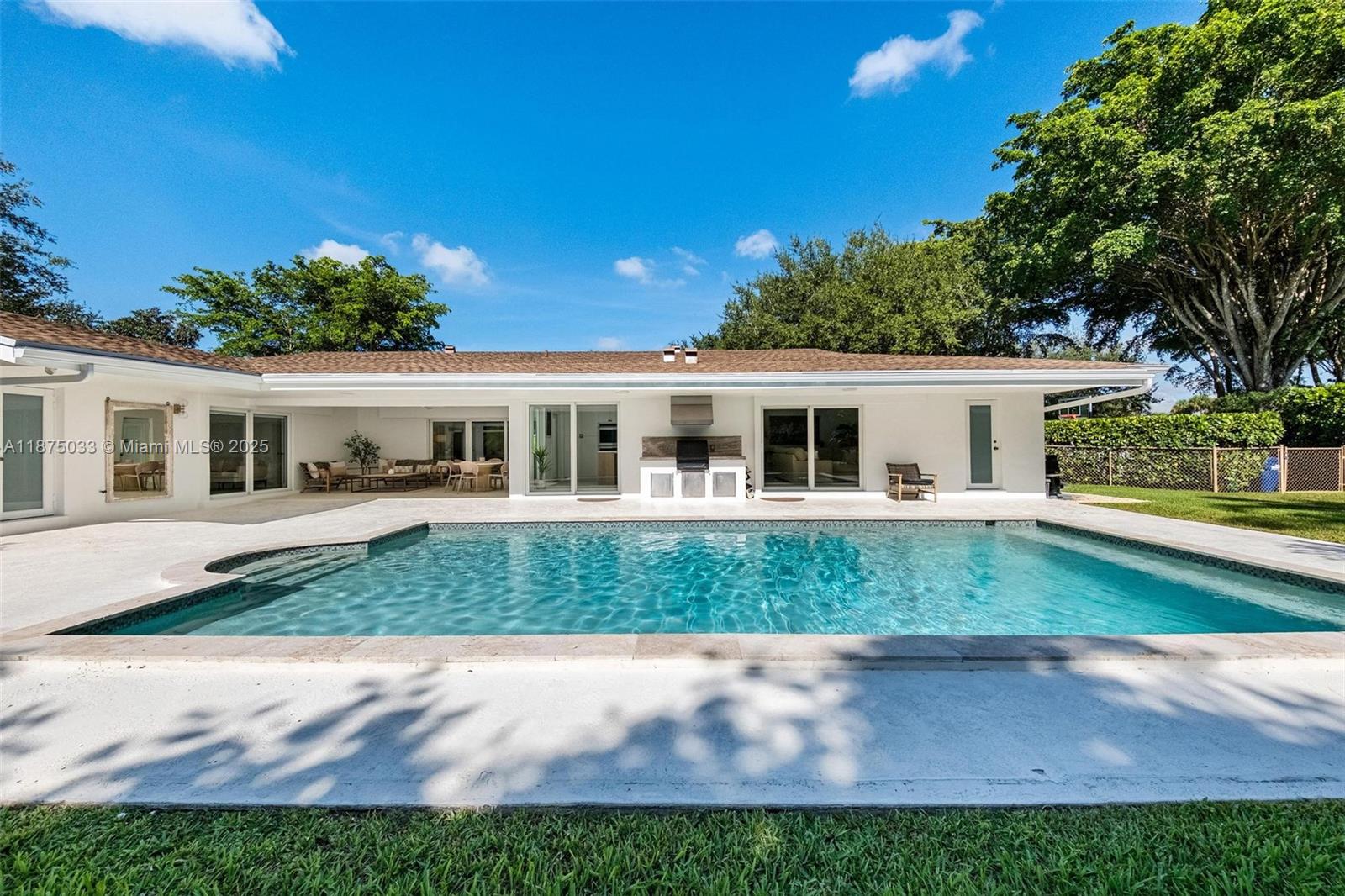 Recently renovated 4-bed, 3-bath estate on a lush half-acre in the heart of Pinecrest. Bright, open living spaces feature refined finishes and a versatile home office/den. A brand-new roof, impact-resistant windows, and fully lined plumbing provide lasting peace of mind. Natural light flows through spacious interiors designed for effortless indoor-outdoor living. Step outside to a resort-style pool, expansive patio, and manicured gardens ideal for entertaining. A stately circular driveway and attached two-car garage complete this turnkey retreat where timeless design meets modern comfort.