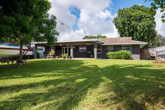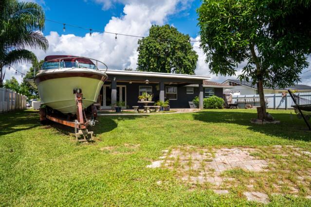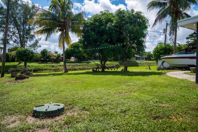 Gorgeous home on one of the largest lots in the community! This suburban oasis features a circular driveway, 2-car garage with work area, and inviting curb appeal with mature trees and a front-yard swing. The serene backyard offers a covered lanai (easily screened), large grassy area with room for a pool, and peaceful canal views. NO HOA--bring your boat or RV! This well-maintained property features an updated kitchen, tiled floors throughout, a versatile flex room The AC was replaced in 2013 and the roof is 2010. Home is on septic. Conveniently located near shopping, dining, beaches, parks, and the vibrant Downtown West Palm Beach, this home offers both comfort and convenience living and entertaining. Don't miss out!!!