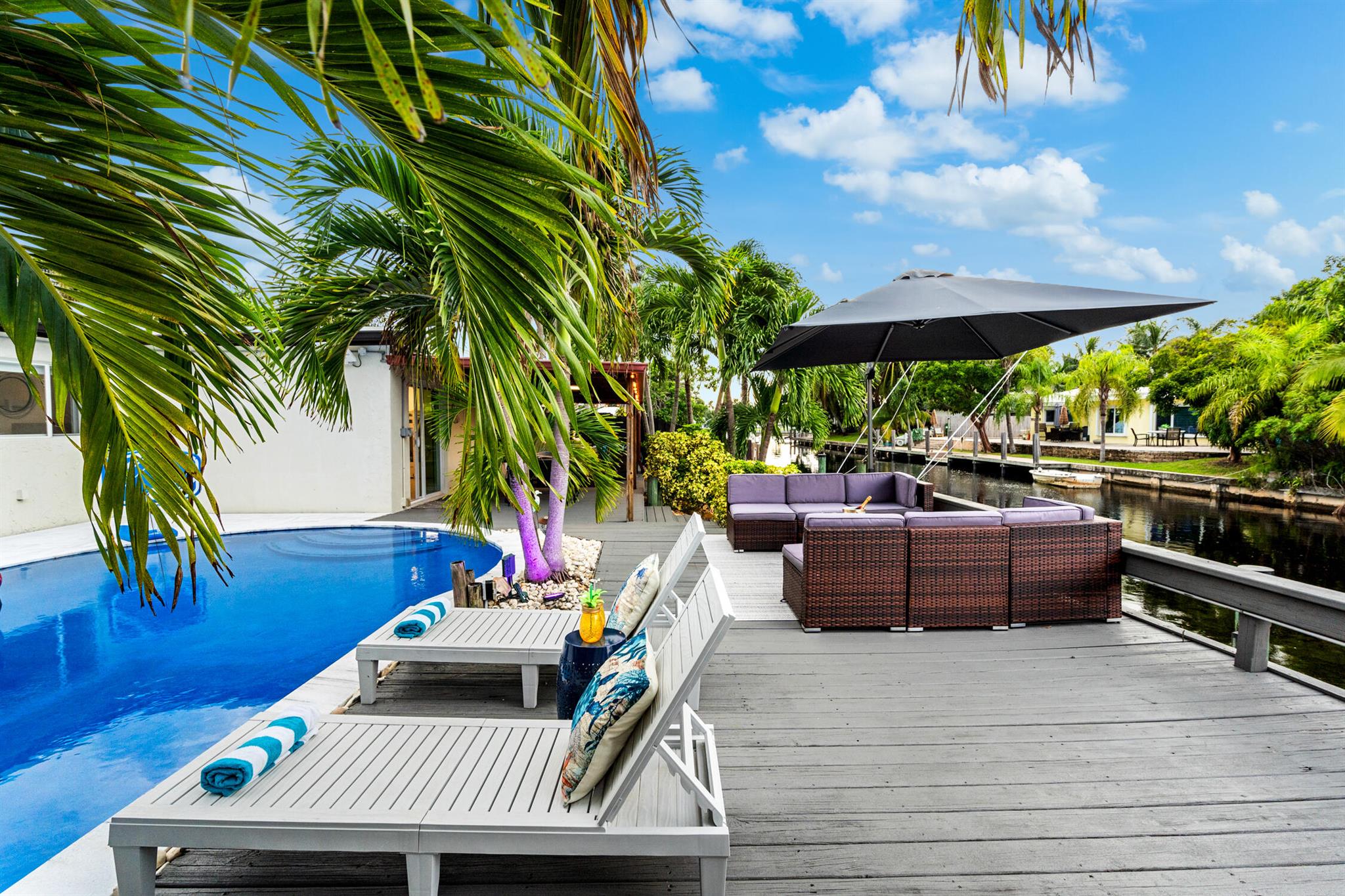 Welcome to your Island escape, a beautifully updated 4-bed/ 2-bath waterfront pool home designed for the ultimate South Florida lifestyle. Interior features include:Impact windows, porcelain tile flooring, and a gourmet chef's kitchen with custom cabinetry, premium stainless steel appliances, a center island, and wine cooler, & 2 fully remodeled bathrooms, Step outside to your private outdoor paradise, featuring a heated pool, fire pit, BBQ area, and plenty of space for entertaining. Enjoy kayaking or paddleboarding from your backyard canal, unwind in the game room, or simply watch the fish jump and manatees swim by.Located just minutes from beautiful Fort Lauderdale & Pompano Beaches.