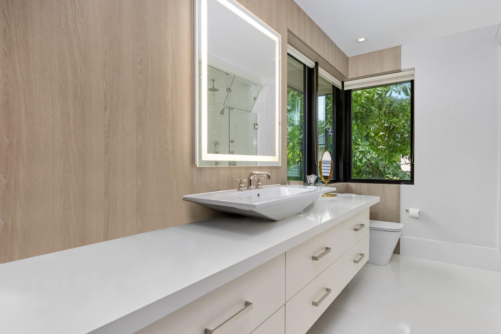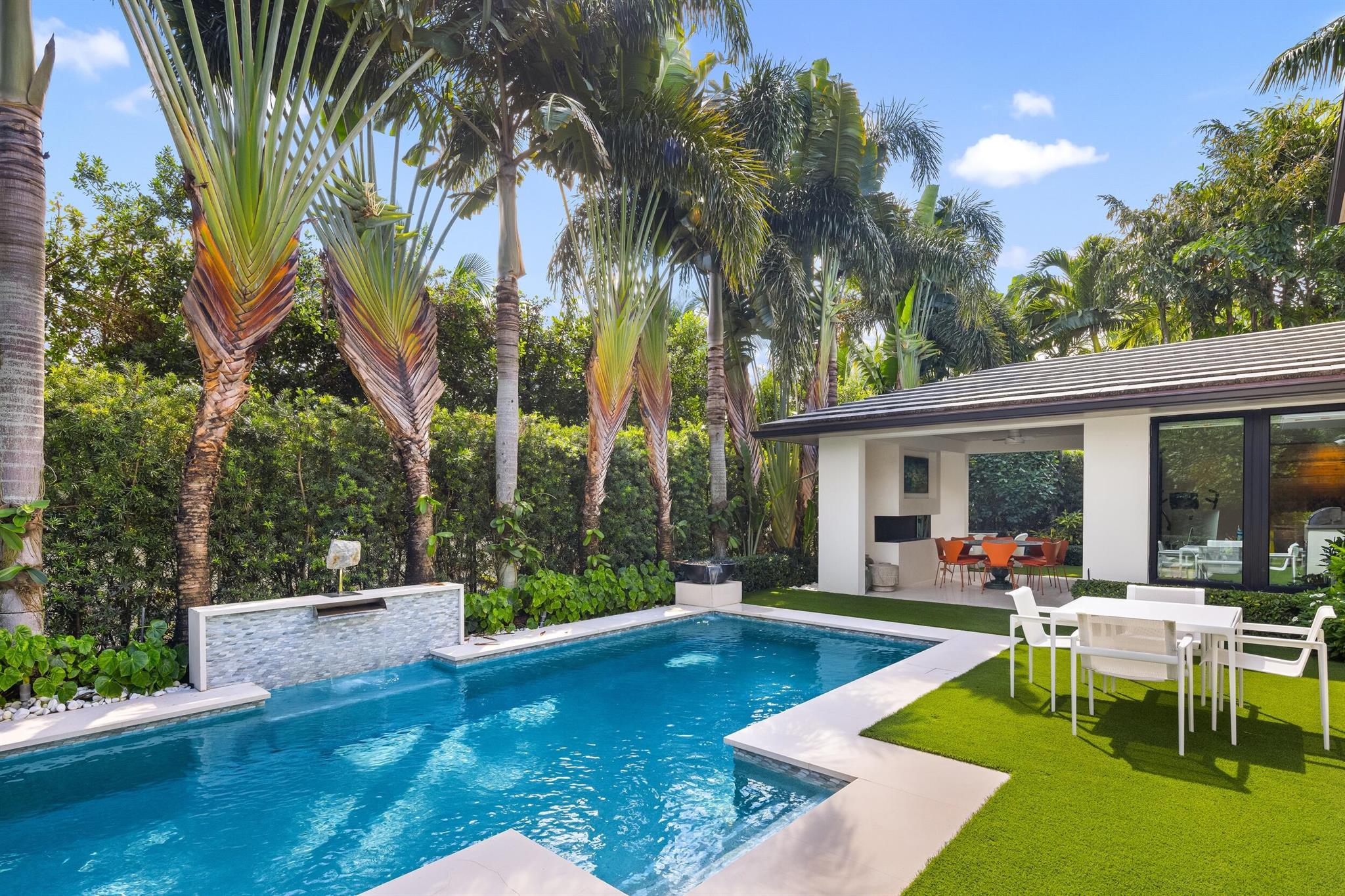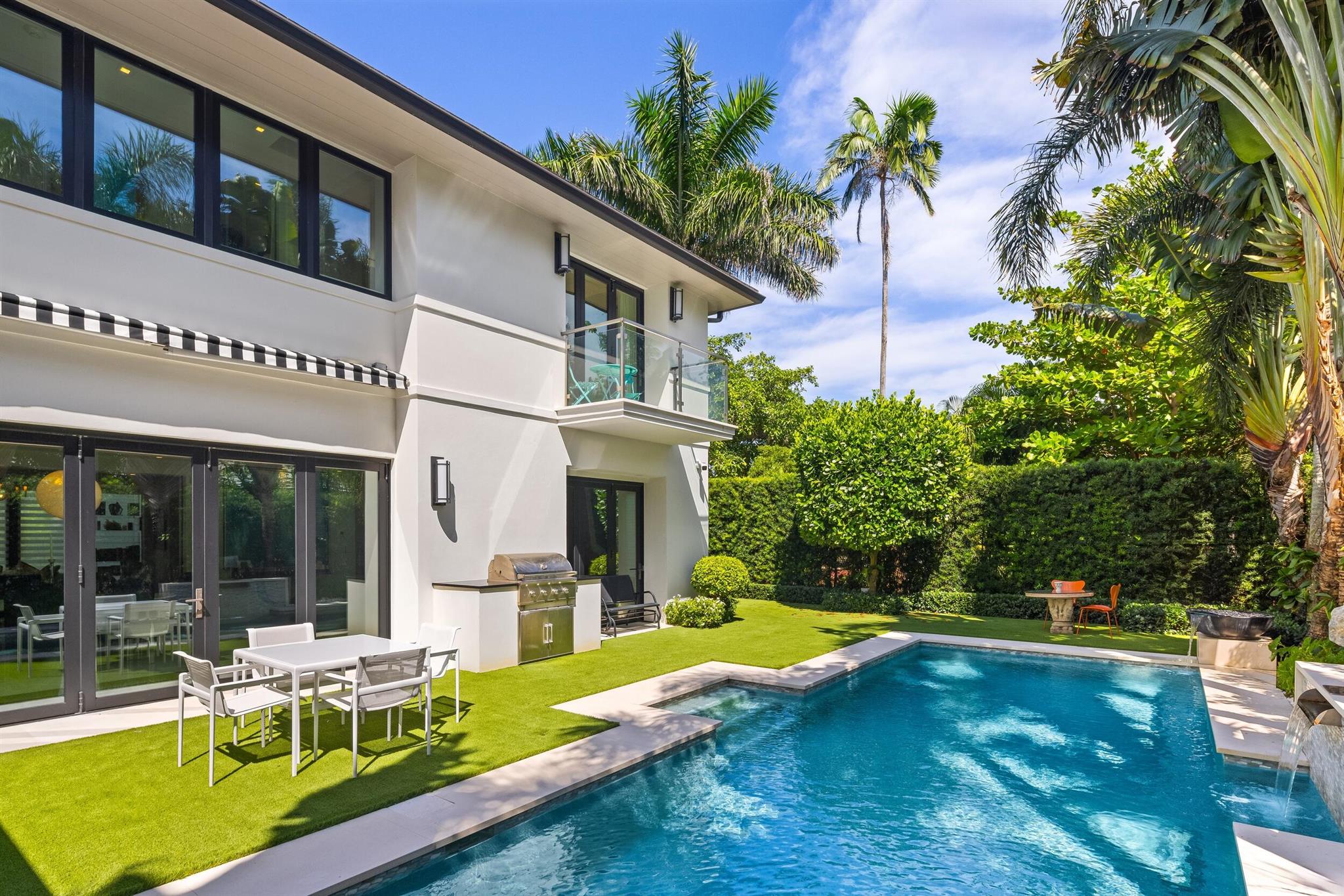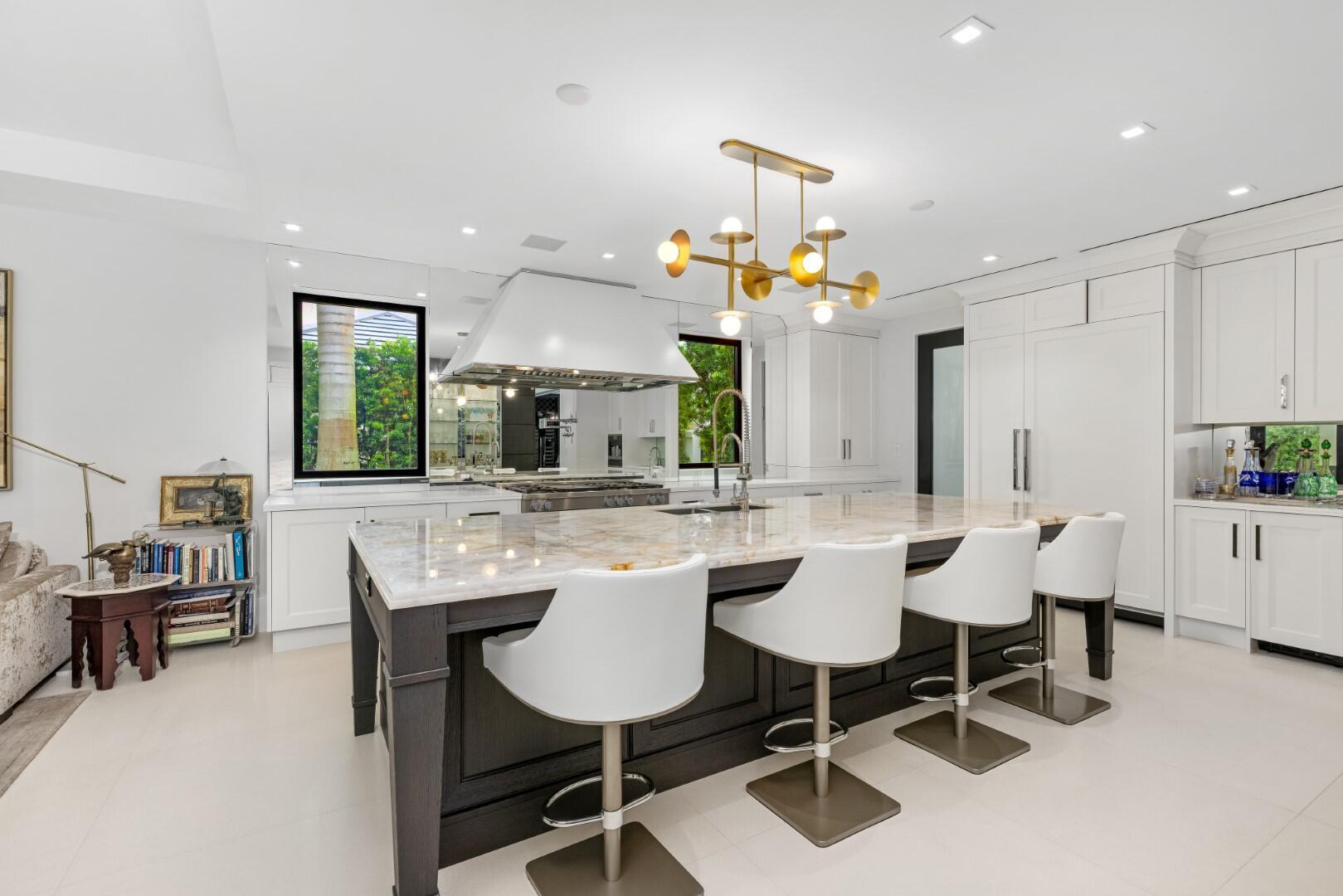 Gorgeous contemporary 4BR/5.1BA home built in 2020. Stunning marble and hardwood detailing. Formal foyer leads to living room and dining room. Beautiful kitchen with enormous chef's island, top-of-the-line appliances, and gorgeous detailing. Large Primary Suite features balcony and dual baths and closets. Additional highlights include elevator, wine storage, and 2 car garage. Tropical landscaping surrounding resort-style backyard with pool, BBQ, and loggia with fireplace.