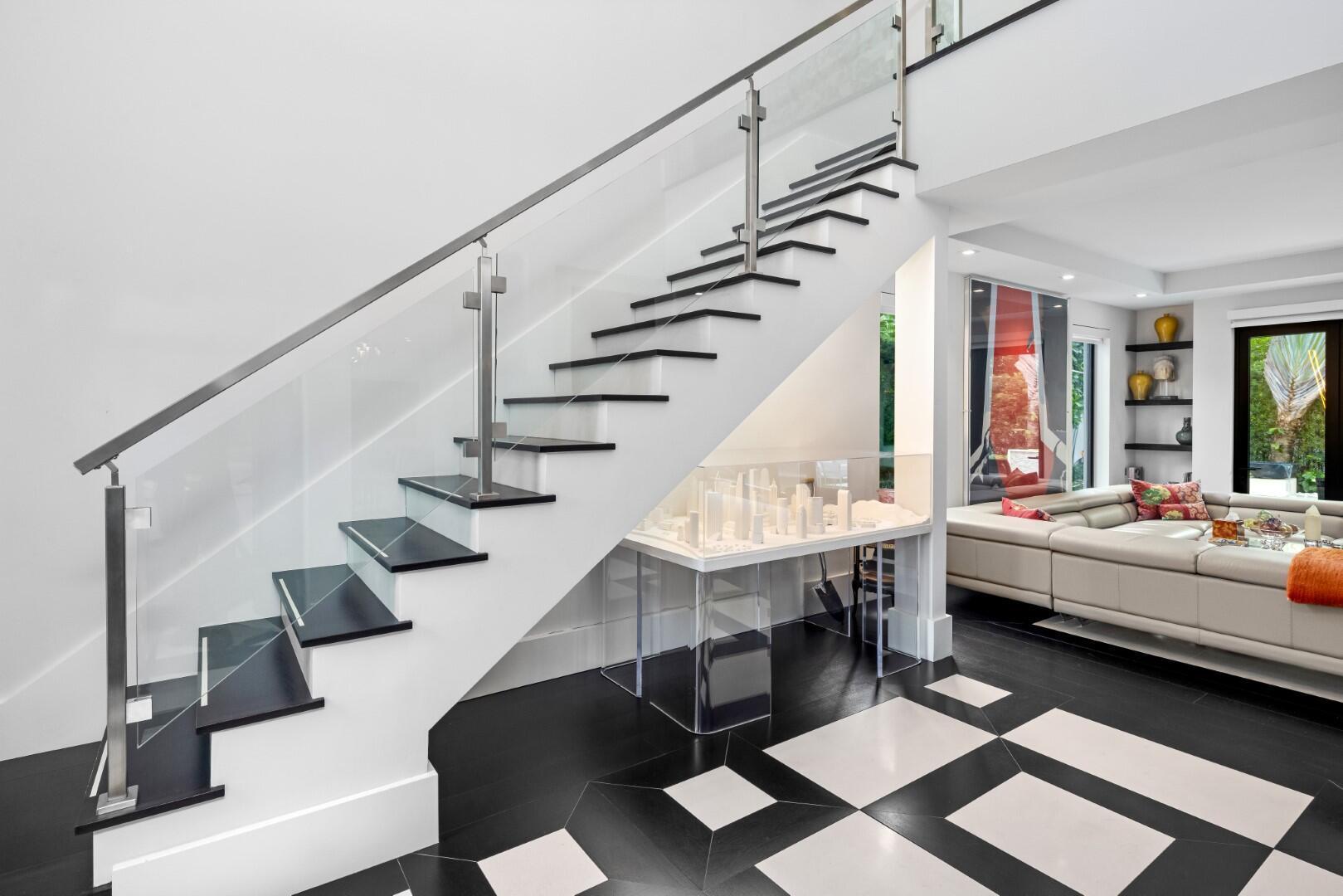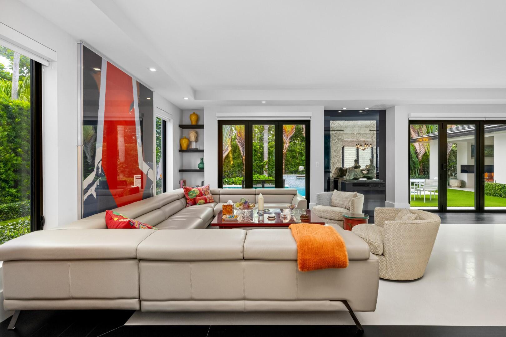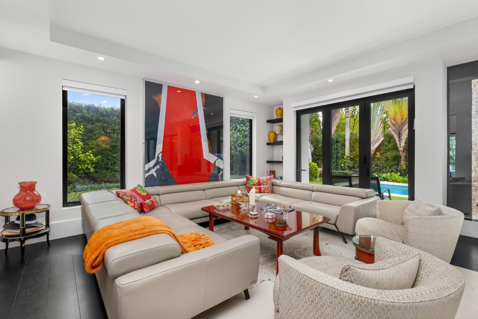 Gorgeous contemporary 4BR/5.1BA home built in 2020. Stunning marble and hardwood detailing. Formal foyer leads to living room and dining room. Beautiful kitchen with enormous chef's island, top-of-the-line appliances, and gorgeous detailing. Large Primary Suite features balcony and dual baths and closets. Additional highlights include elevator, wine storage, and 2 car garage. Tropical landscaping surrounding resort-style backyard with pool, BBQ, and loggia with fireplace.