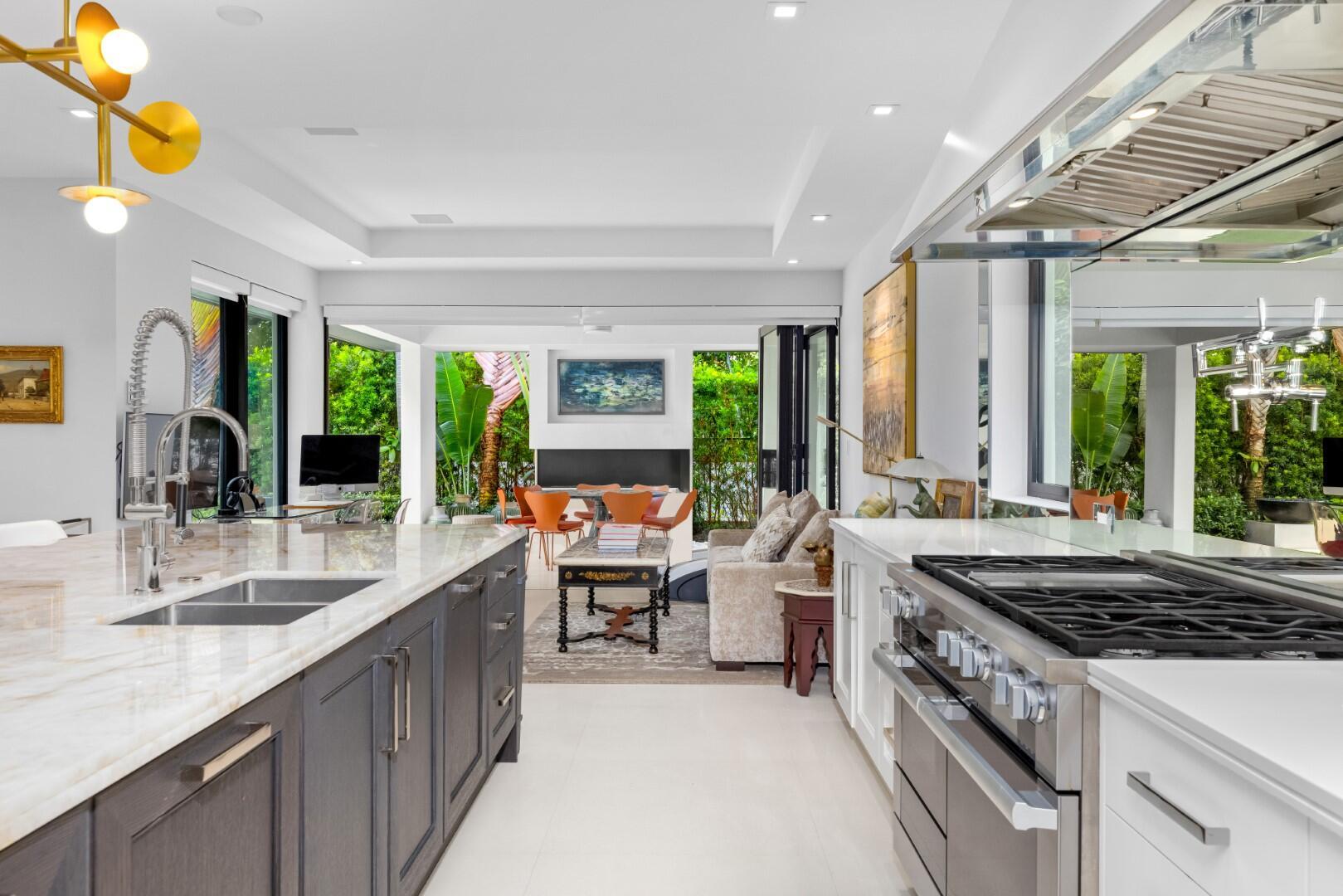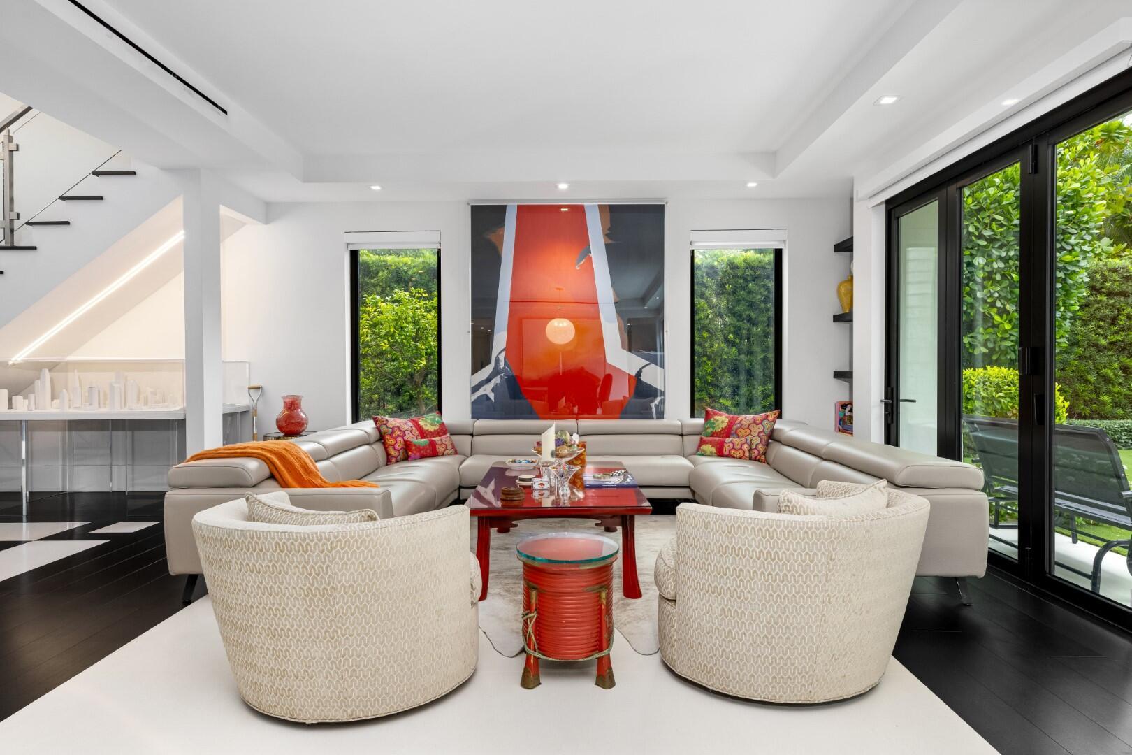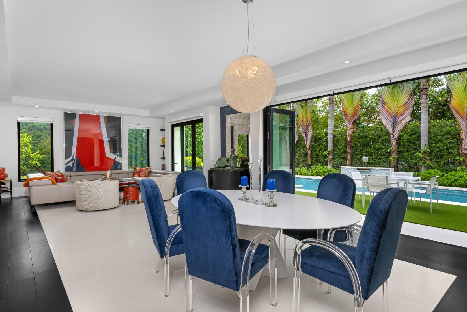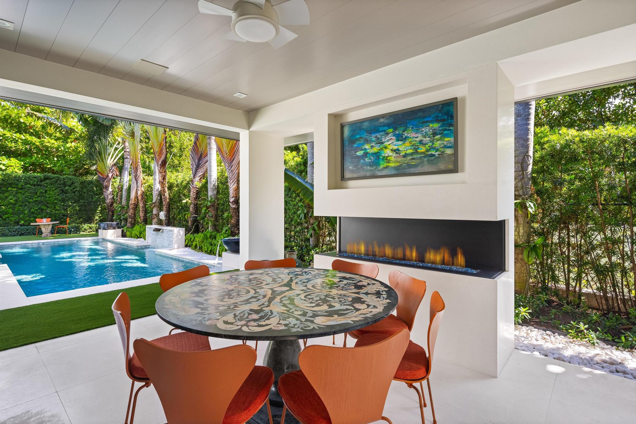 Gorgeous contemporary 4BR/5.1BA home built in 2020. Stunning marble and hardwood detailing. Formal foyer leads to living room and dining room. Beautiful kitchen with enormous chef's island, top-of-the-line appliances, and gorgeous detailing. Large Primary Suite features balcony and dual baths and closets. Additional highlights include elevator, wine storage, and 2 car garage. Tropical landscaping surrounding resort-style backyard with pool, BBQ, and loggia with fireplace.