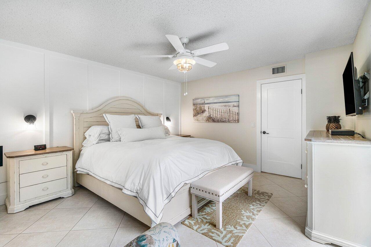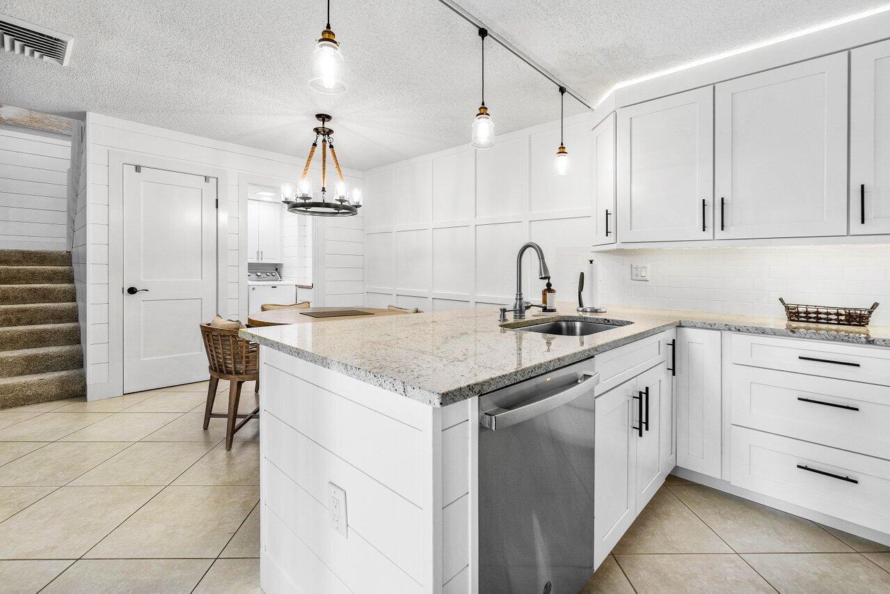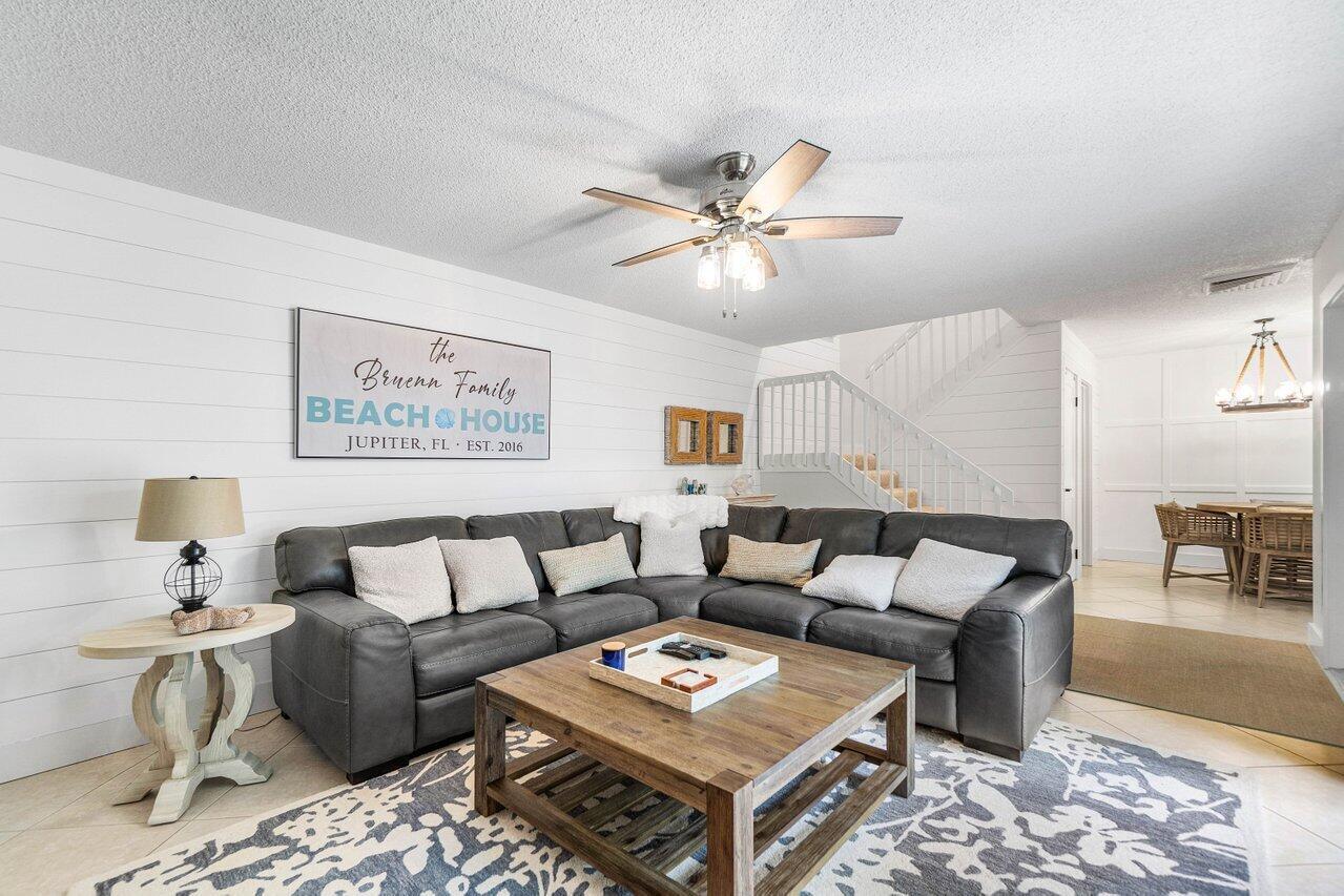 This beautifully renovated home, ideally located between the Intracoastal and Jupiter Beach/Juno Pier, offers luxurious coastal living just steps from resort-style amenities like a pool, tennis, pickle ball, and basketball courts. Inside, you'll find fresh paint, new baseboards, shiplap and box wall accents, and a modern kitchen with granite countertops, white shaker cabinets, custom lighting, and newer stainless steel appliances. All three bathrooms have been fully remodeled, with added upgrades including new closet doors, ceiling fans, and light fixtures. Hurricane impact sliders and a new front door ensure peace of mind, while the private courtyard--with professional grade landscape lamps that double as tiki torches--offers an inviting space to relax or entertain. This is a ONE OF A KIN