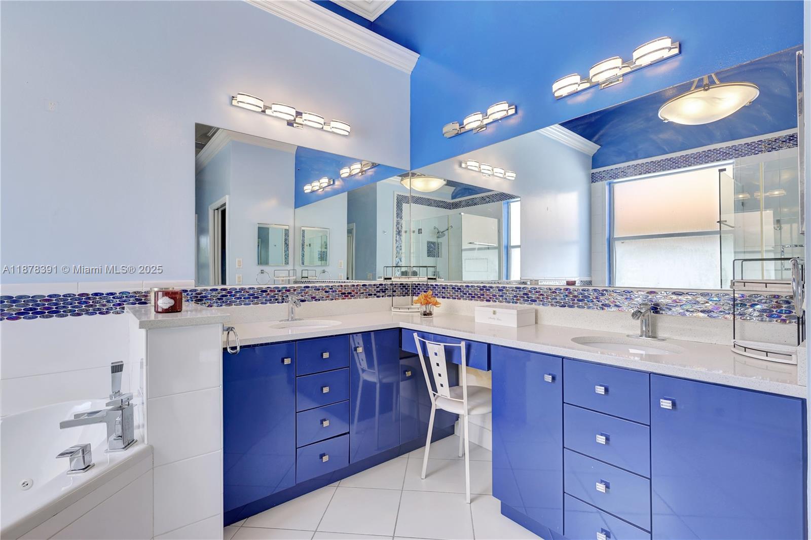 Absolutely gorgeous one-story home! This 4-bedroom, 2.5-bath residence offers breathtaking lake views and a spacious open-concept layout. Roof replaced in 2019. Features include tile flooring throughout, crown molding, accordion shutters, Bahama shutters, and a brand-new roof with a high-efficiency A/C. The gourmet island kitchen boasts granite countertops, perfect for entertaining. The oversized master suite includes a luxurious bath with a Jacuzzi tub. Additional highlights: sprinkler system, garage faucet with exit door, attic access, and a fully fenced yard. Enjoy the spectacular and serene views of the magical lake right from your backyard. Chandeliers and furniture are negotiable.