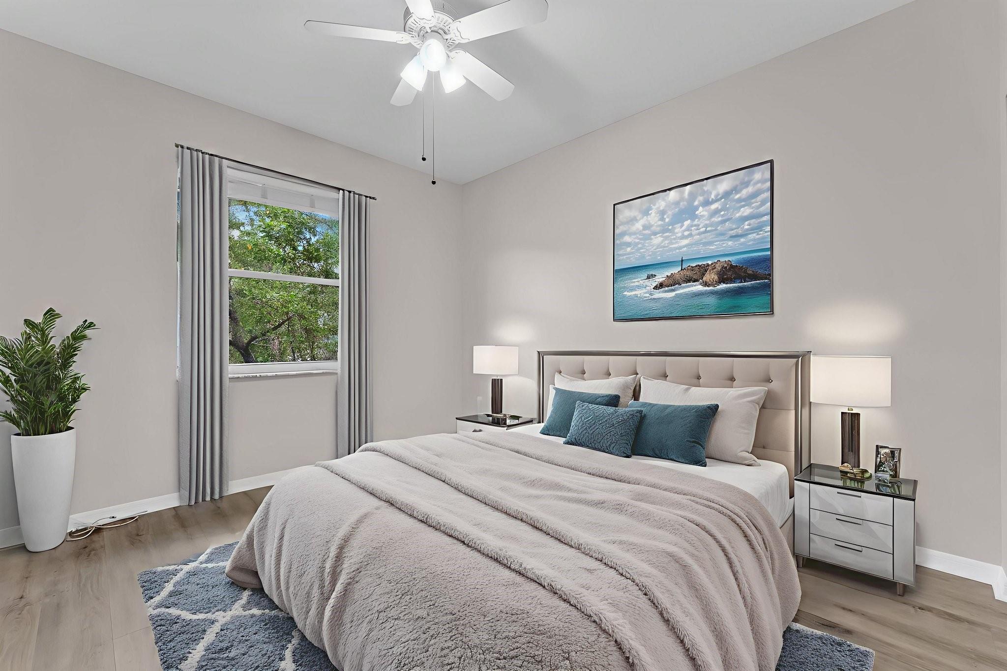 Outstanding corner townhome, feels like a single family home. Very spacious & bright, 2 sliding doors lead to a large fenced yard, perfect for a family. 3 bedrooms/2 bath & laundry upstairs. Guest half bathroom downstairs. Waterproof laminate on stairs and upstairs, no carpet. 1 car garage with long double driveway. Lovely gated community, well kept with many amenities to enjoy.