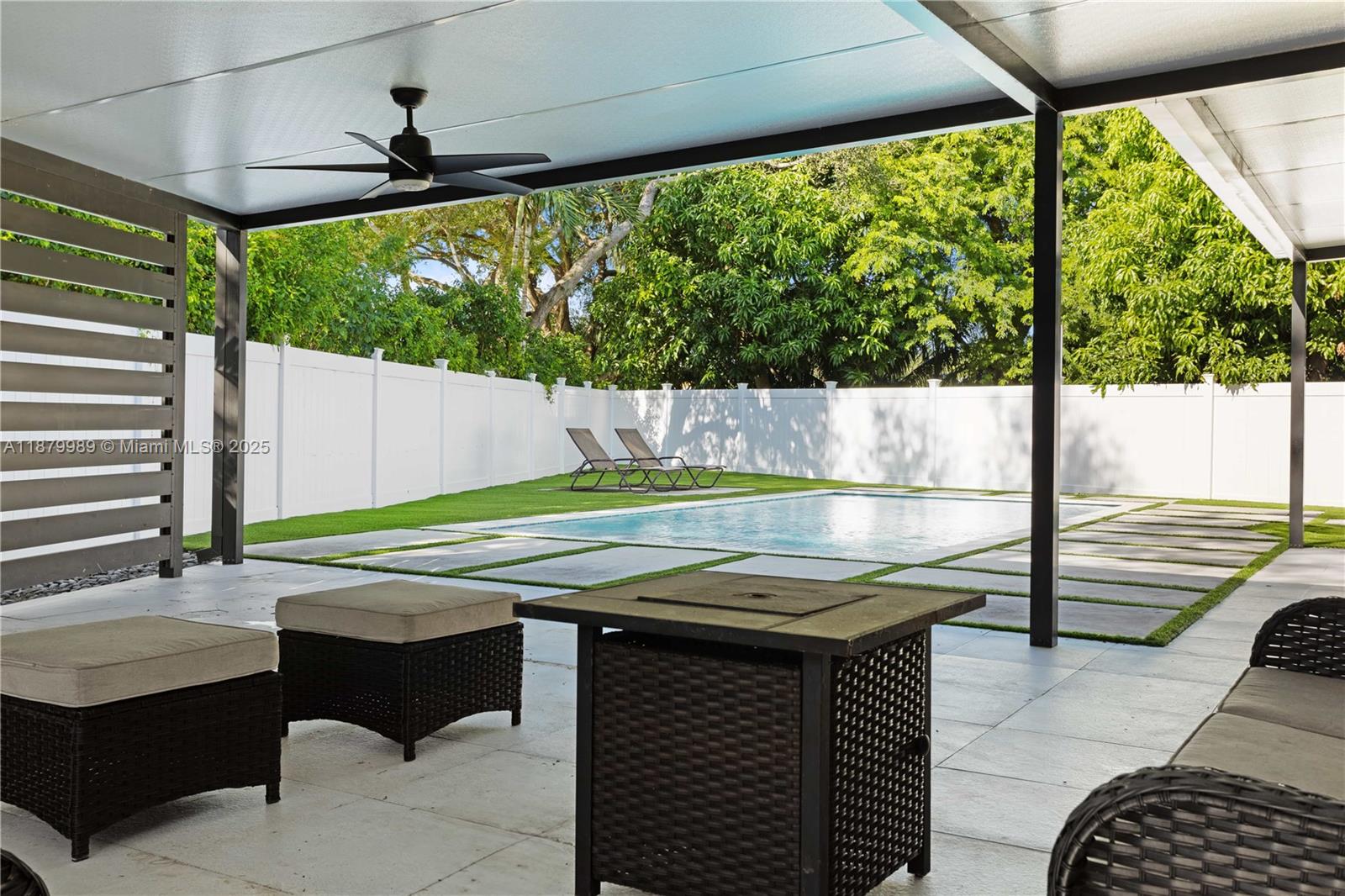Welcome to Avalon, a secure, gated, family-friendly lakeside community in Miramar. This beautifully upgraded 3BR/2BA pool home offers the perfect blend of comfort and style. Enjoy a bright open layout with a custom kitchen featuring quartz waterfall countertops and stainless steel appliances. Step outside to your private backyard oasis with an oversized pool, artificial turf, and a pergola with built-in TV—ideal for family gatherings and weekend fun. The spacious primary suite includes dual sinks, Roman tub, glass shower, and walk-in closet. Also features a laundry room, 2-car garage, and extended driveway. Community offers 24/7 security, pool, playground, sports courts, and walking trails. Near A-rated schools, parks, shopping, and highways.