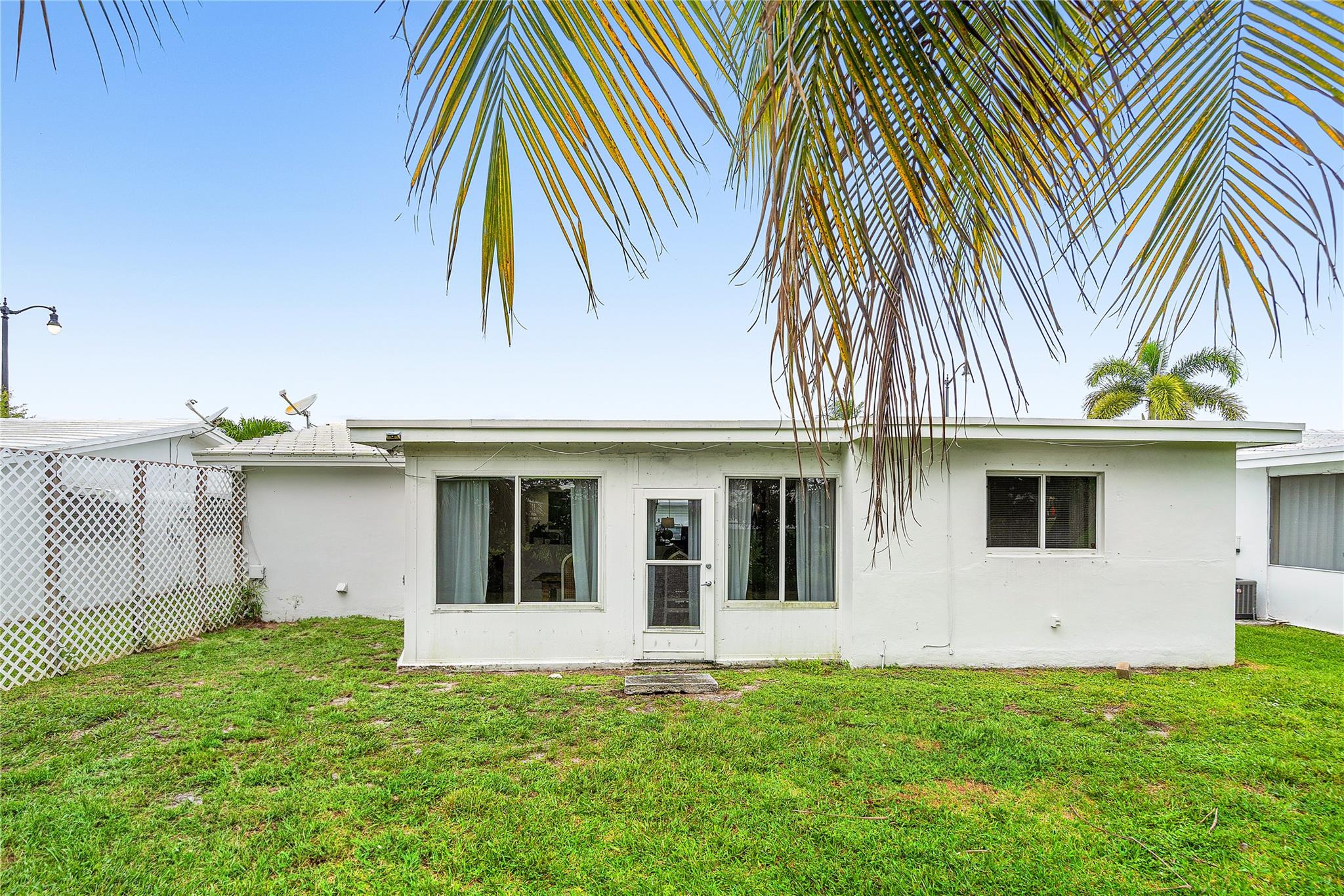 Stunning and airy two bedrooms. One bath-one car garage home. Backyard open to lots of greenery and one of the very few homes in this community without a house located behind property. Roof replaced in 2015. No land lease. Located in Leisureville just3 miles from the beach with easy access to shopping, dining,and I-95. Verfied 55+ community east of 95 featuring free golf, on a 9 hole par, 3 course. Maintenance fee includes exterior house painting, water, lawn card, and shuttle service. Two pools, two clubhouses, walking and biking trails. This is a well maintained pet friendly community. Please take note that this listing can have incorrections and it is important for agent/buyer to verify everything.