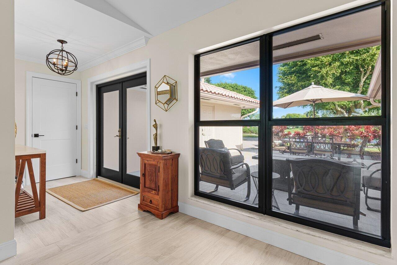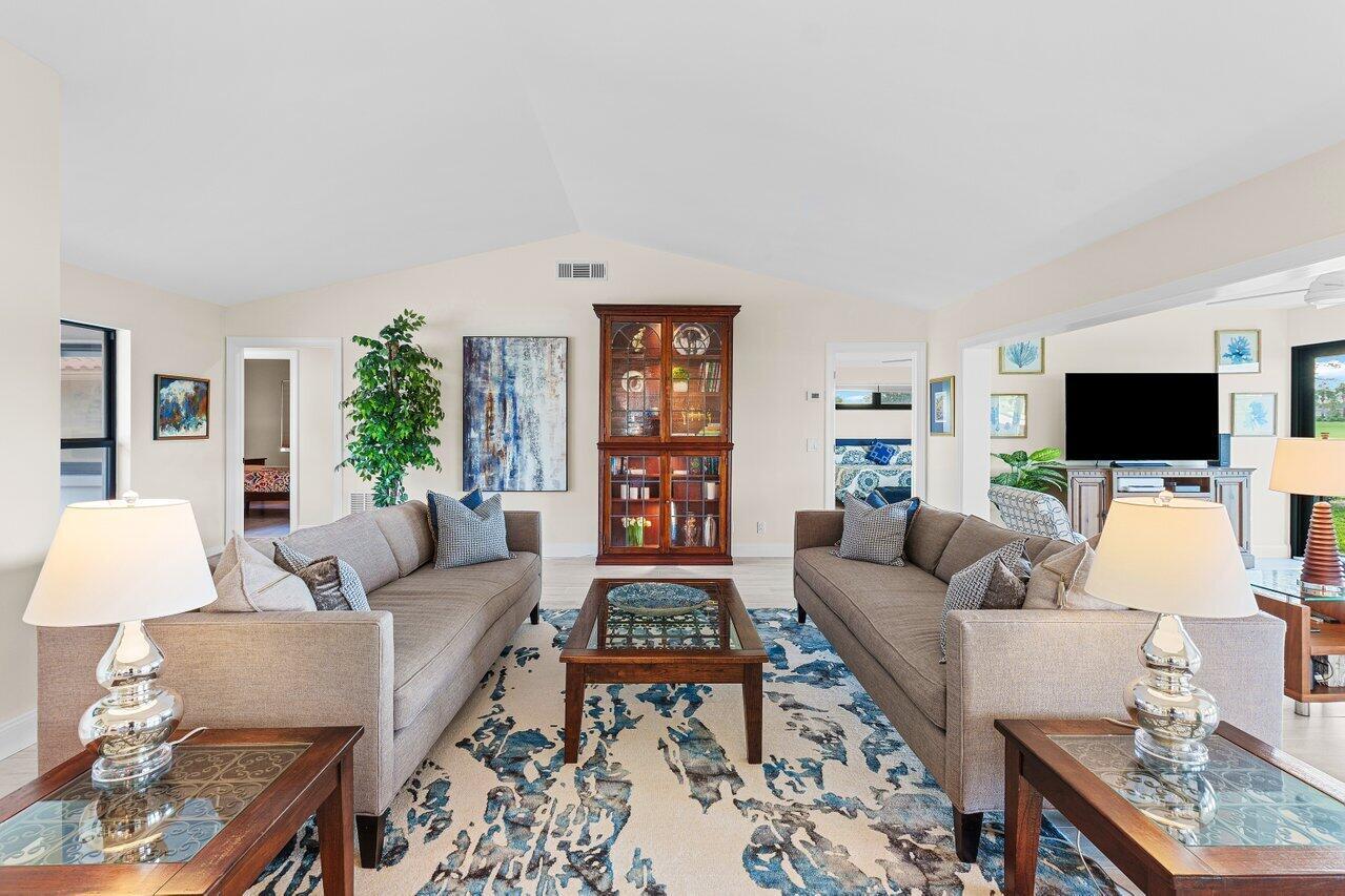Exceptional lake & golf views on the newly designed North course from this beautifully updated villa, offering a perfect blend of comfort and style. Step inside to find wood-look tile flooring throughout. The open-concept kitchen is ideal for entertaining, providing ample space for gathering with family and friends .Enjoy peace of mind with new ductwork and impact glass windows, ensuring energy efficiency & security. Step outside to a private courtyard patio, a perfect retreat for relaxation or dining under the stars. The home also features a spacious garage (with EV connection) for added convenience. Best of all, take in stunning sunset views right from your own home. Quail Ridge is a mandatory membership community, offering golf, tennis, pickleball, spa & fitness and beautiful clubhouse
