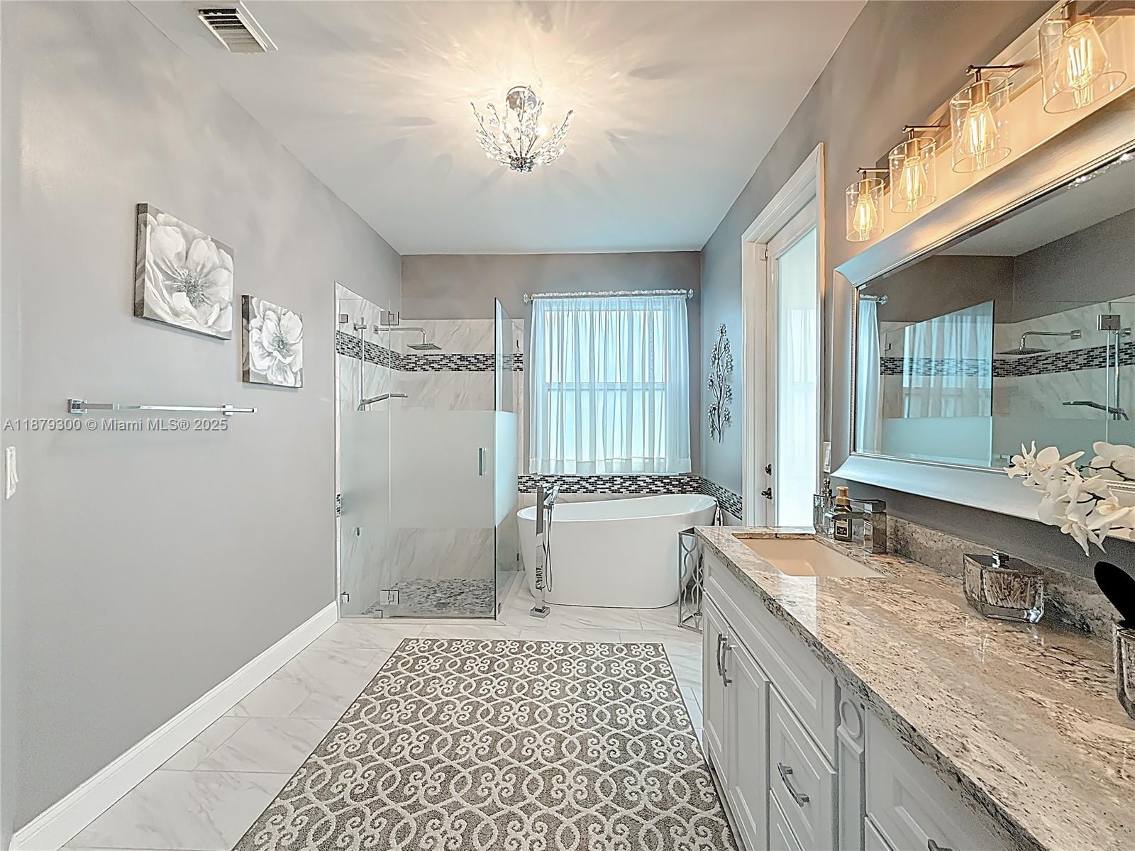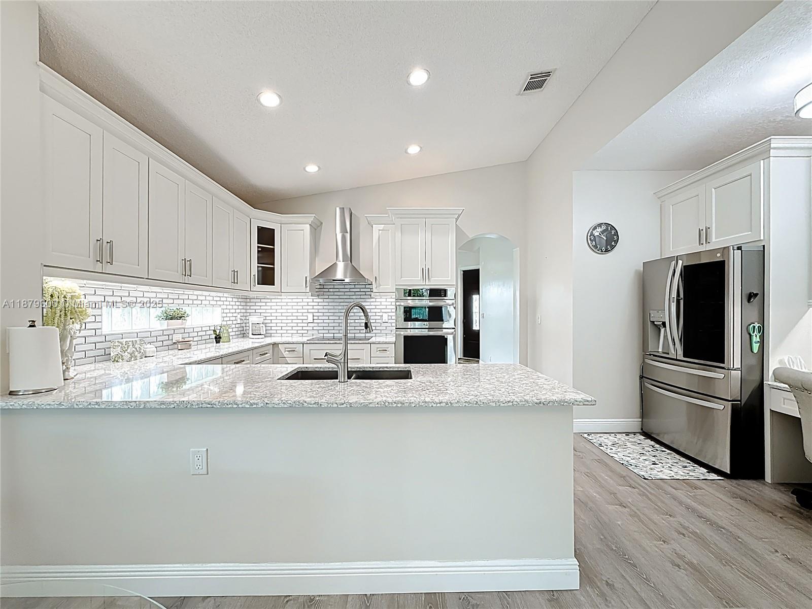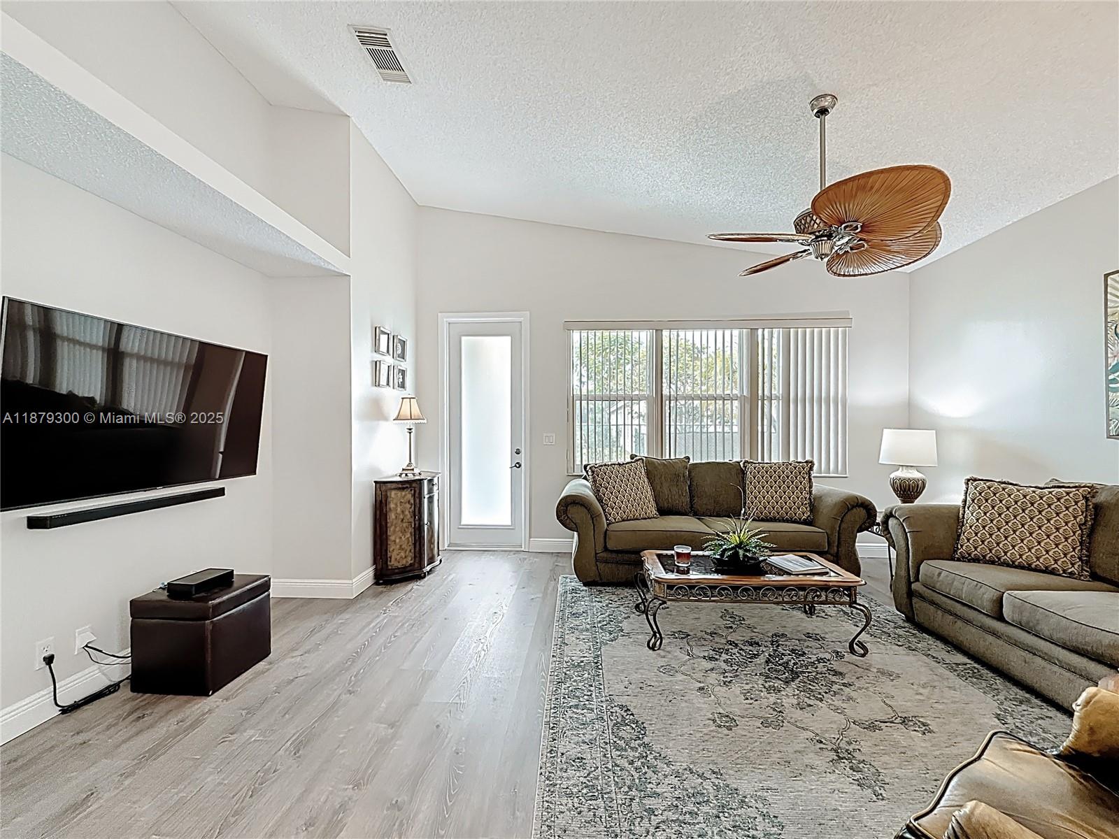 Located in the gated community of Pembroke Shores, this 4-bedroom, 2-bath home offers 2,532 sq ft of living space that is move-in ready. The beautifully remodeled kitchen within the past two years, featuring a spacious quartz countertop, tile backsplash & energy efficient appliances, overlooks the family room. The entrance of the home boasts a combined formal living and formal dining area. The master suite features a very tasteful renovated bathroom with a deep, inviting soaking tub and a spacious separate shower with modern hardware. A private backyard, a separate laundry room, and a convenient location near schools, shopping, and dining are ready for a new family. House has impact windows and doors and vinyl flooring in the living areas. Put this one on your list to visit