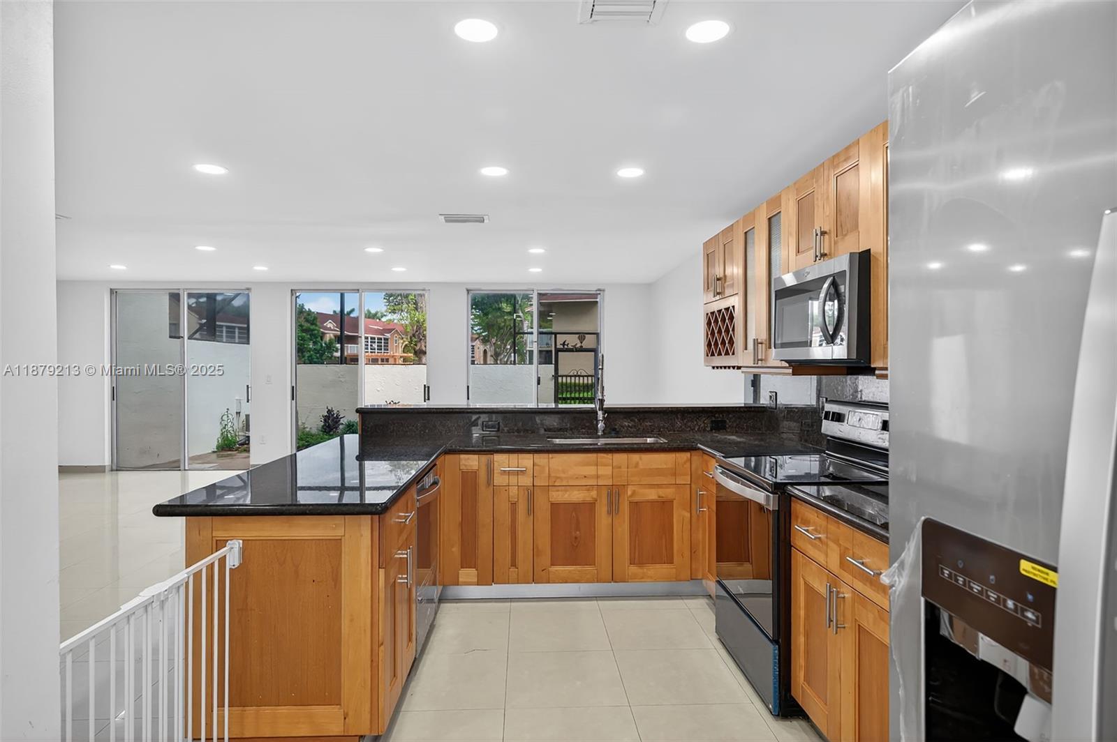 Introducing a STUNNING, fully remodeled two-story home in the heart of Doral! This residence offers 3 spacious bedrooms, 1 office room, 2 and a half resort-style bathrooms, and a thoughtfully designed open- kitchen layout with stainless steel appliances and granite countertops. It features a generously sized patio, perfect for outdoor dining and entertainment. Additionally, the home offers a large laundry room with a full-sized washer and dryer and storage space. Doral Place is a highly exclusive gated community, with 24/7 security and resort-style amenities. The community is near top-rated schools, shops, major expressways and minutes from Downtown Doral & City Place Doral. The home is move-in ready with every detail upgraded for style and comfort.