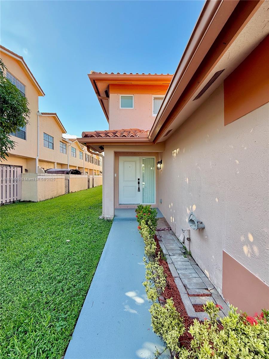 Beautifully updated 3-bedroom, 2.5-bathroom, 1 car garage, Corner townhome in a gated community. Townhome offers both style & peace of mind with FULL IMPACT windows throughout—providing energy efficiency & storm protection, Attic, 2019 tankless water heater & 2023 A/C. Kitchen features Quartz countertops & S.S appliances. The 1st floor has porcelain tile & the 2nd floor offers waterproof, scratch-resistant vinyl flooring for low-maintenance living. Enjoy the convenience of an in-unit washer/dryer, and relax outdoors on your private patio + fenced backyard—perfect for entertaining. Enough space to park 5 cars. Amenities includes a lakeside pool & ample guest parking. Close to Aventura Mall & major highways for easy commuting.