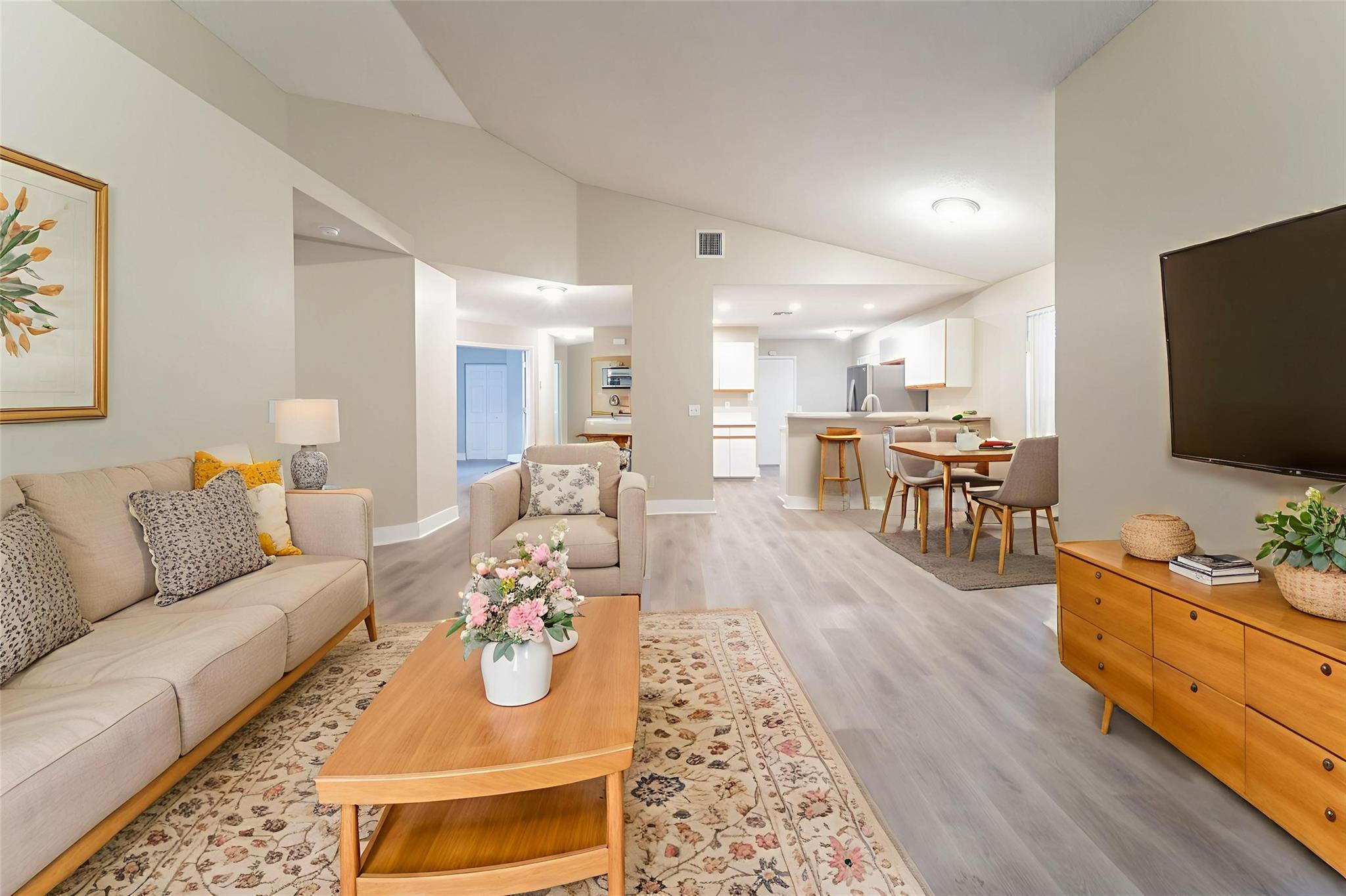 Beautiful single-story home featuring 3 bedrooms and 2 bathrooms with a bright open layout. The kitchen offers a convenient bar and breakfast area, accented by stylish lighting. French doors lead to a fenced backyard, perfect for outdoor enjoyment. The 2-car garage provides ample parking and storage. One or more photos have been virtually staged. Schedule a showing today!