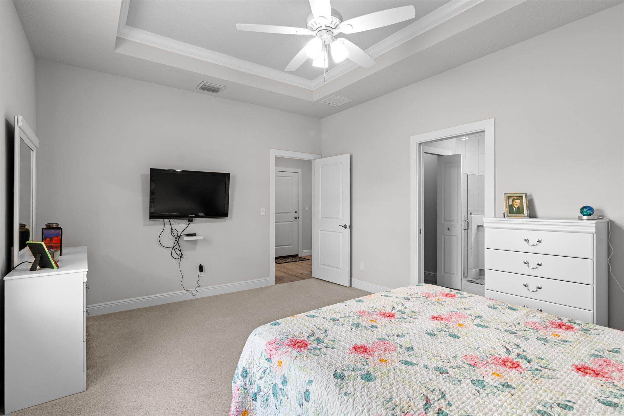 Better than new! This barely lived in, custom built, Hampton Homes Tiffany model is packed with upgrades. A paver driveway, full roof gutters, and stucco trim sets a modern tone. Inside you find wood-look tile through out the living area and bathrooms. The vaulted ceilings with LED recessed lighting makes the inside welcoming & bright. The custom kitchen features 42'', quiet close white cabinets with crown moldings, tile back splash, coordinating granite countertops, and white GE appliances. The island/ snack bar cabinets are a soft gray. The same quality cabinets are in each bathroom with Moen Faucets. The main shower is oversized, has frameless glass, is full tile, and has a soap niche. The garage floor got the ''Superior Flooring'' treatment for lasting protection. Don't miss this one!