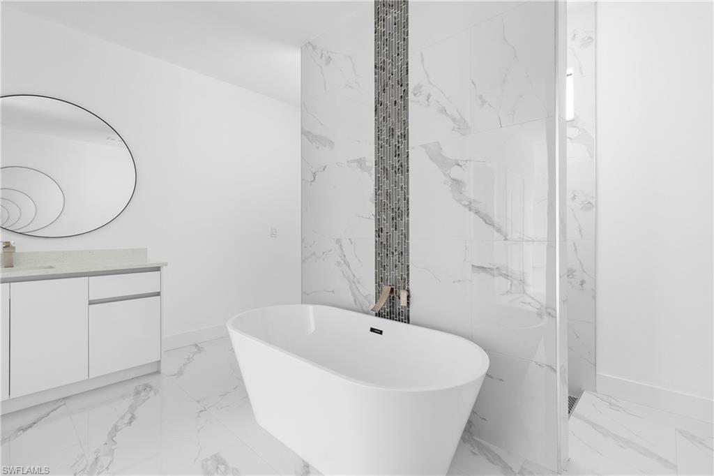 Now It's the Perfect Time to Buy! This gorgeous new construction on a freshwater canal could be the one! With an open concept floor plan and a sleek modern design, this home has everything you need and more. Here's what makes it stand out: 3 spacious bedrooms + Den 2 stylish baths 2-car garage Gorgeous Italian tile throughout the home A kitchen that's chef-approved with quartz countertops, stainless steel appliances, and a French door refrigerator Remote control ceiling fans in every room for your comfort The master suite is a dream! It features his & hers custom-designed closets, a self-standing tub, and a double-entry walk-in shower with multiple showerheads and separate sinks. Plus, the under-truss lanai offers a spacious area for entertaining, and the home is built with hurricane im